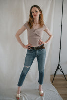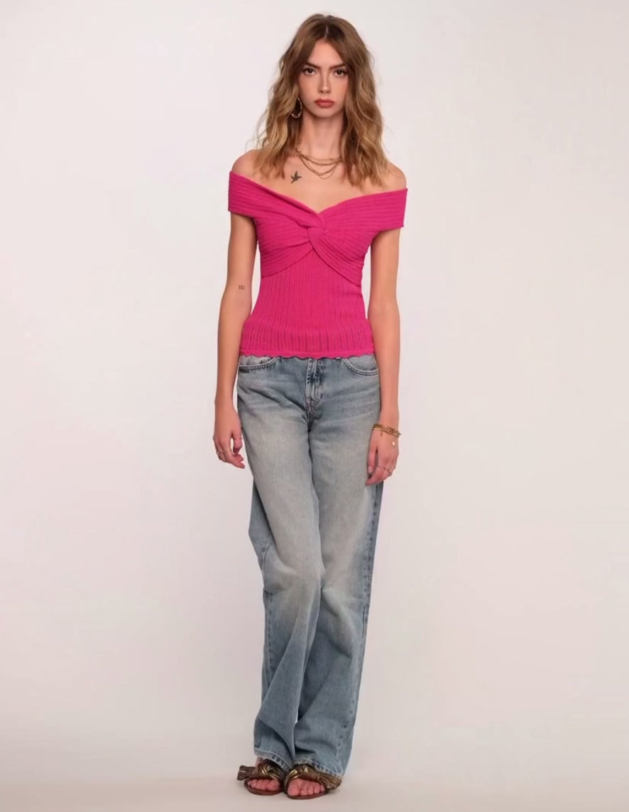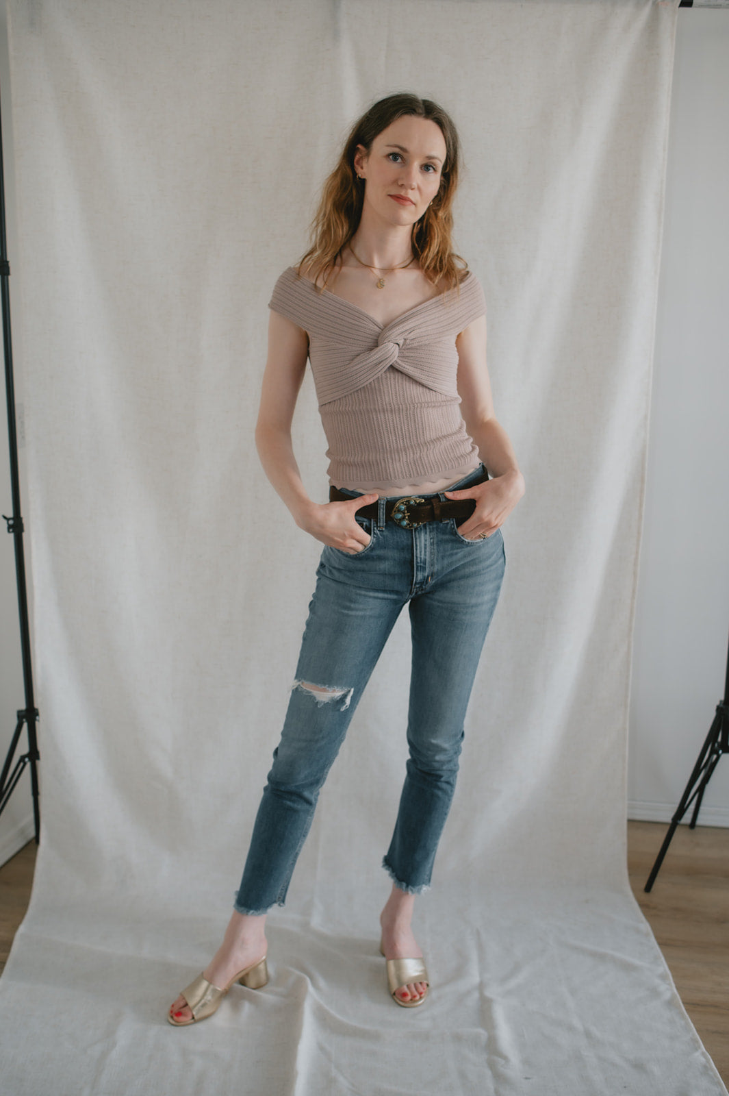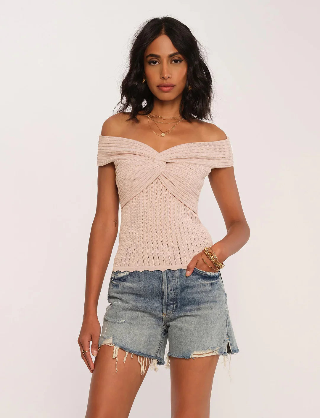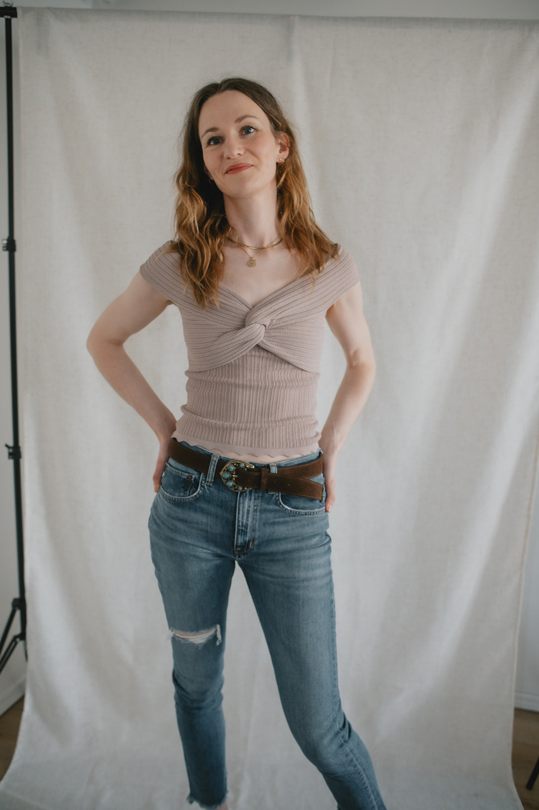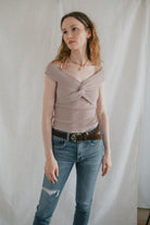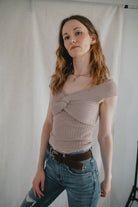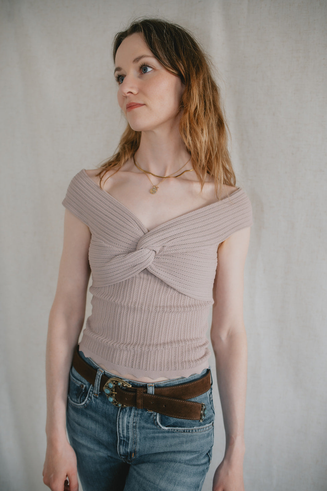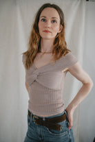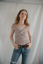 Our Tina Top is dreamy soft and stretchy to hug all your curves. With its chic twist front and slim fit, this ribbed knit tank perfectly highlights the neckline. Versatile and easy, tuck it into a skirt, or pair it with jeans.