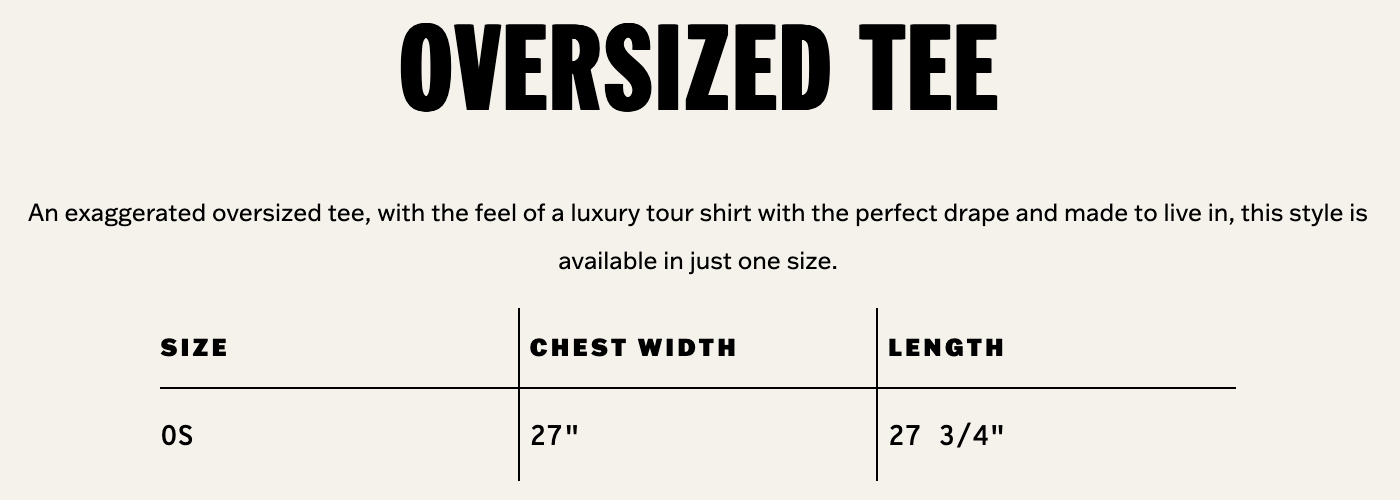 Exaggerated oversized tee that can be worn baggy with denim or perfect with a pair of bike shorts