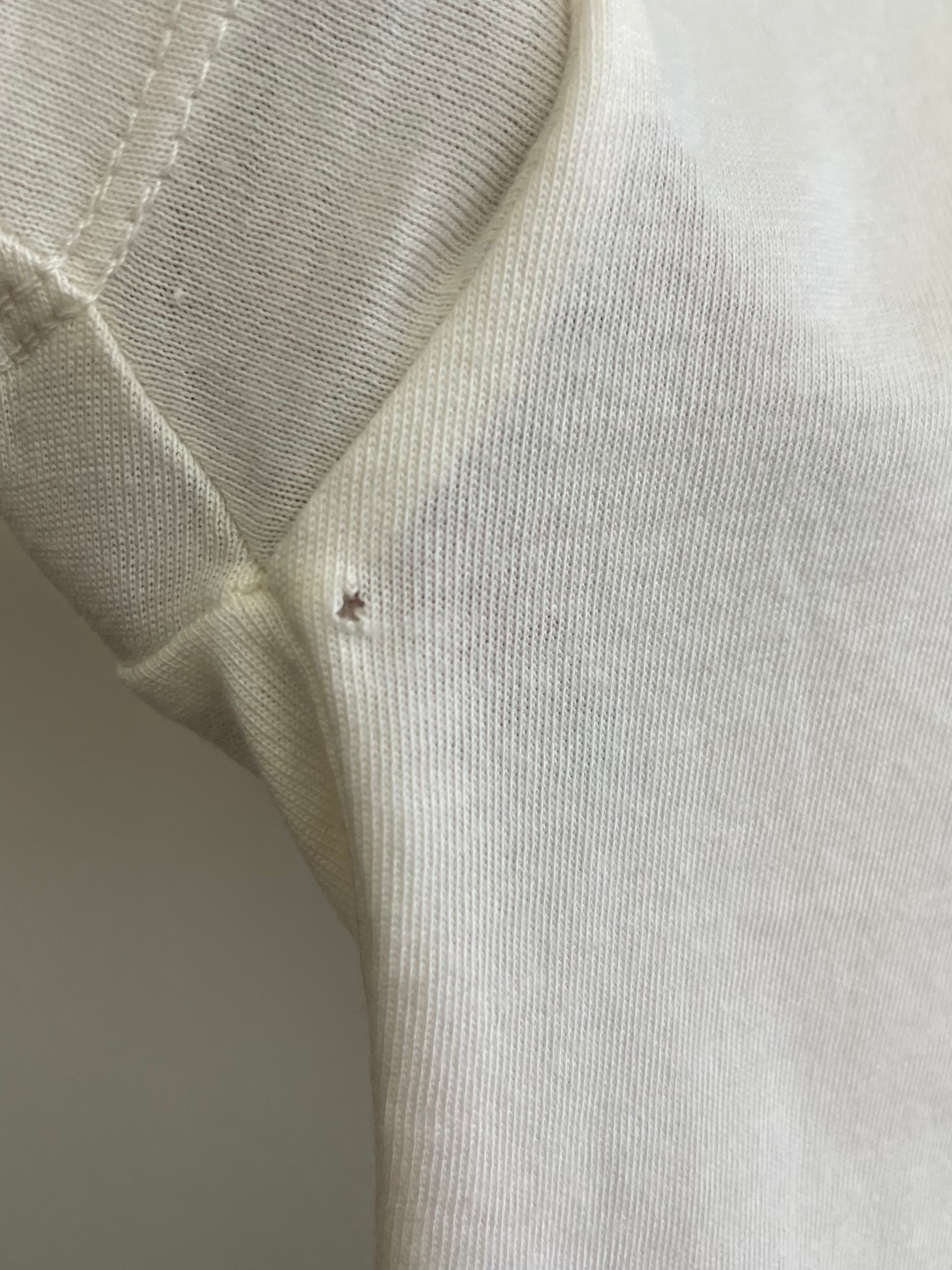 6-12 Months: Small hole under left armpit. Pictured.
