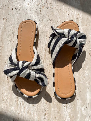 The Rachael Striped Knot Slides are our newest summer sandal! The flat sole is perfect for everyday wear. We love these paired with denim and your favourite graphic tee, or try them dressed up slightly with a flowy maxi dress. You can't go wrong with these puppies!