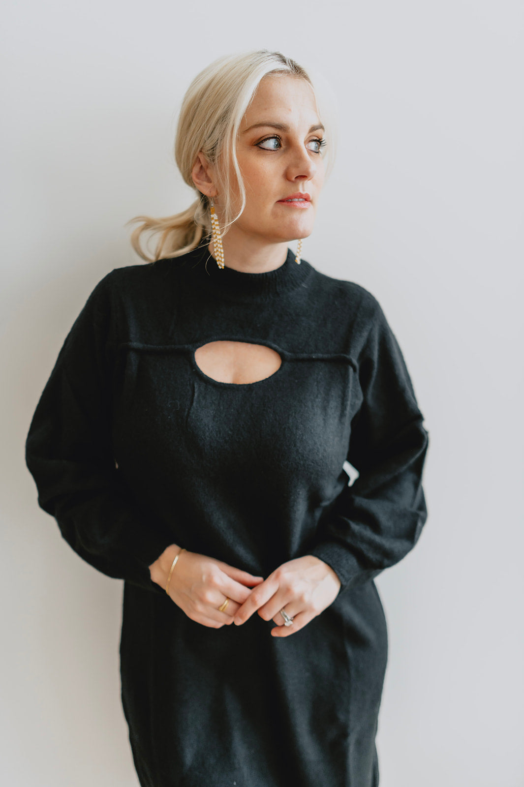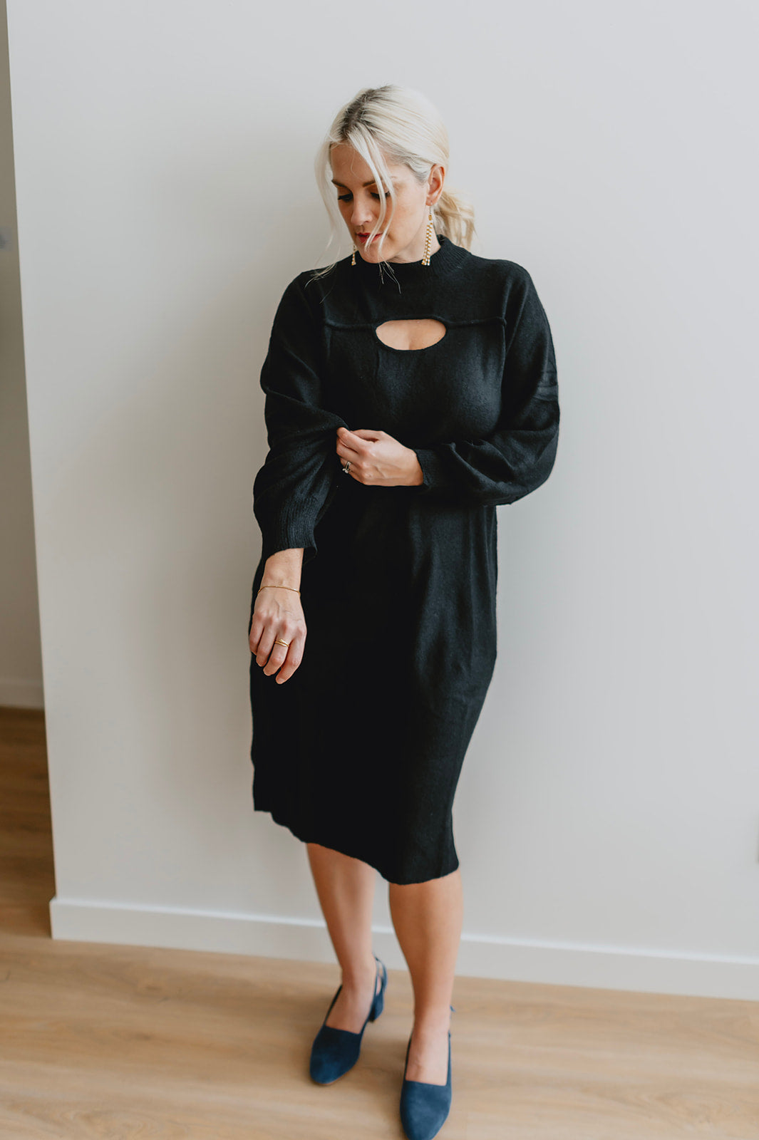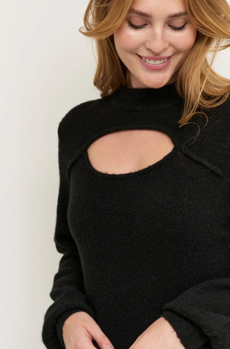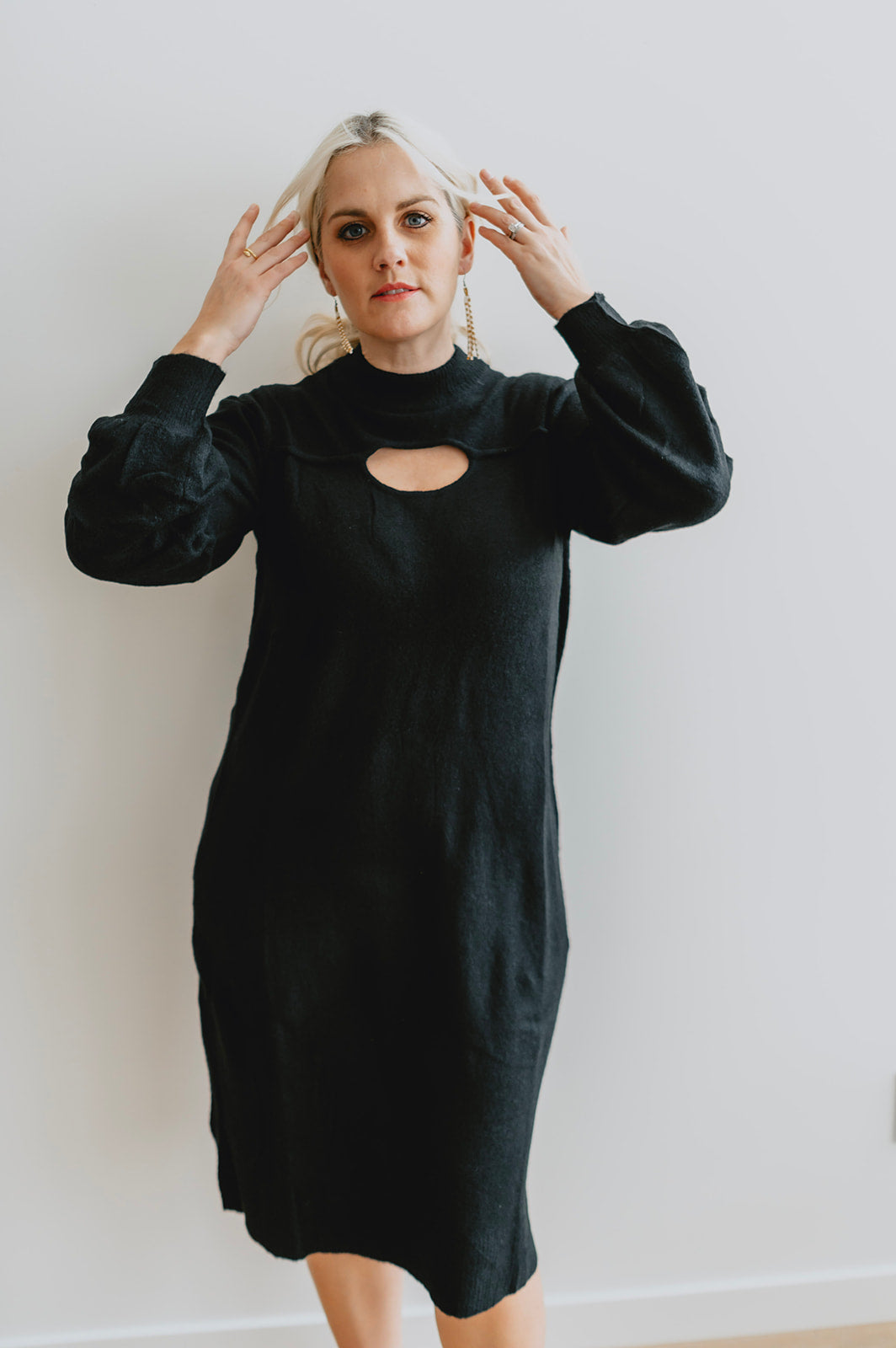 This lightweight sweater dress is perfect for these frosty spring days. The Mollie features a slight balloon sleeve, higher neck, and a cheeky cutout on the chest. Easy to dress up or down, you'll find yourself wearing her year-round.