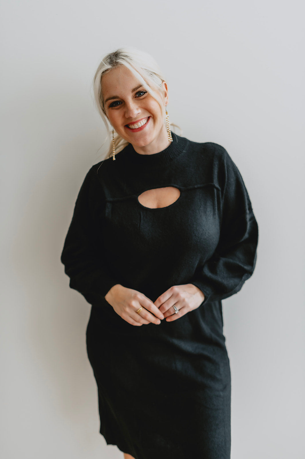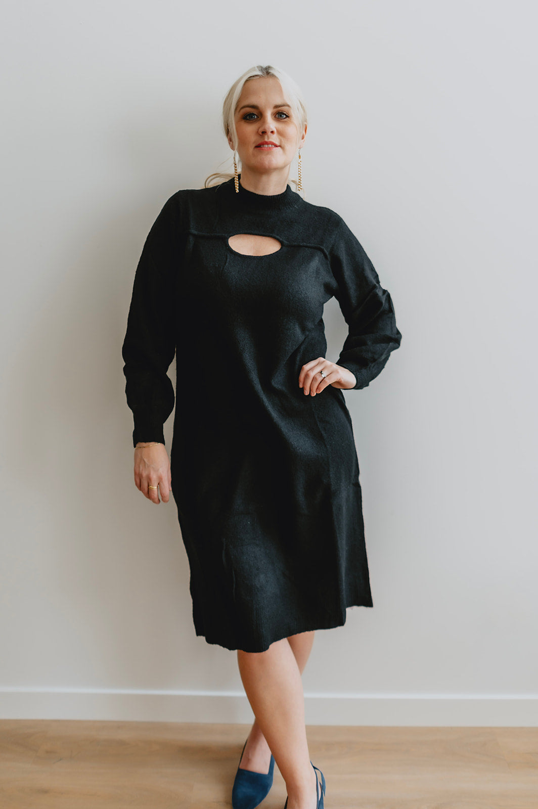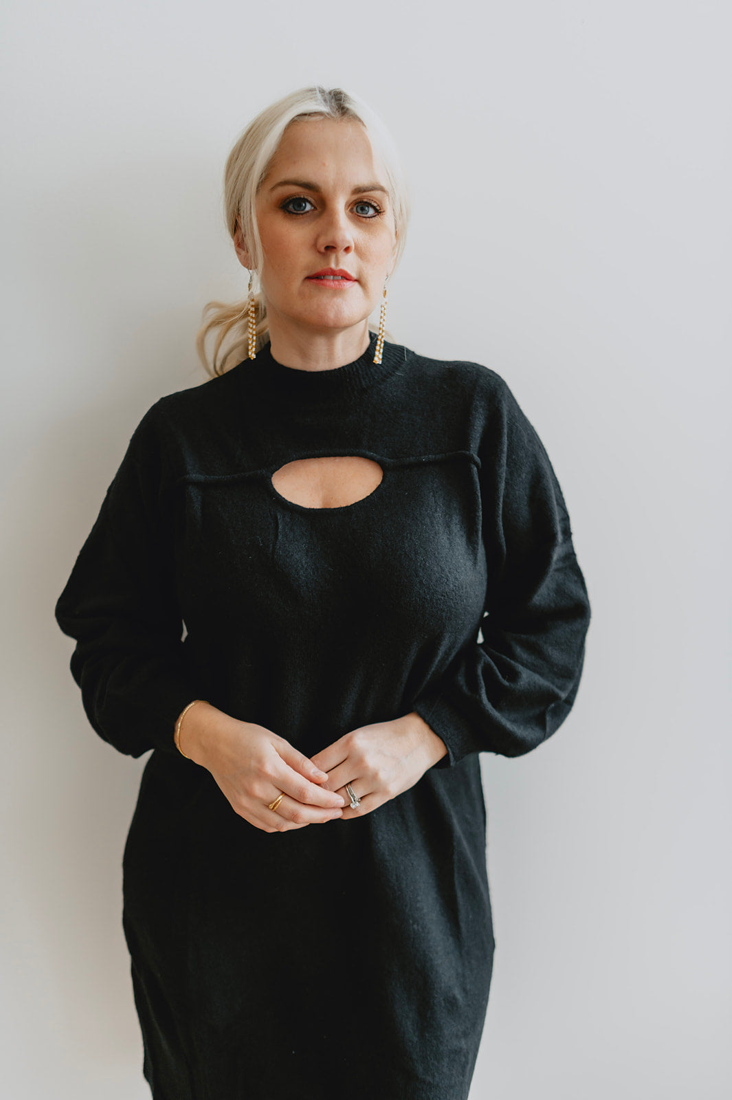 This lightweight sweater dress is perfect for these frosty spring days. The Mollie features a slight balloon sleeve, higher neck, and a cheeky cutout on the chest. Easy to dress up or down, you'll find yourself wearing her year-round.