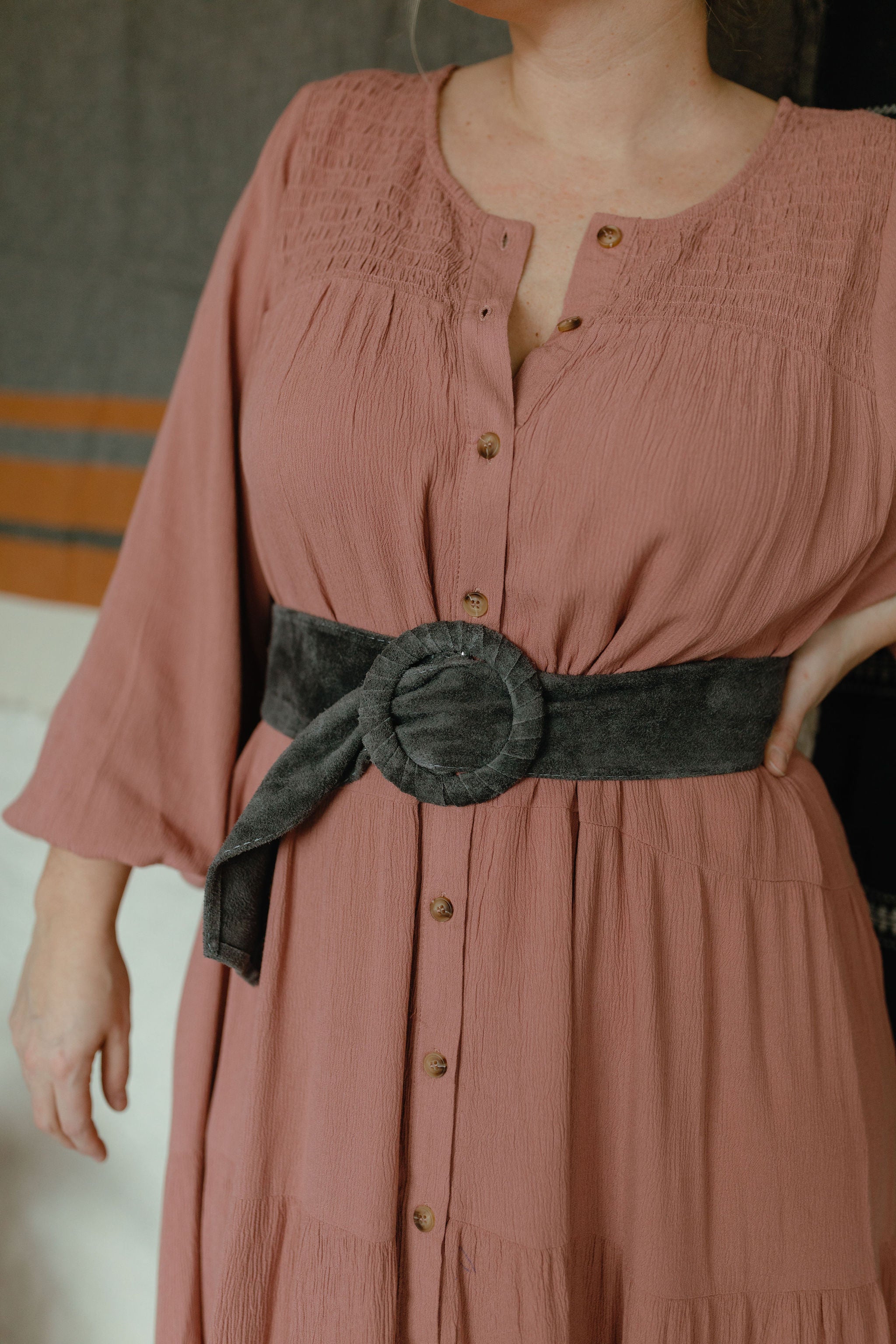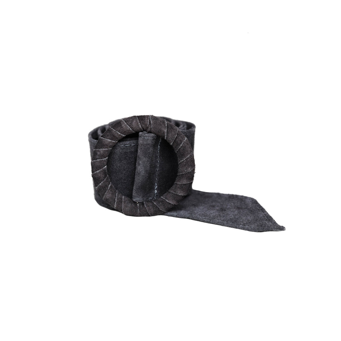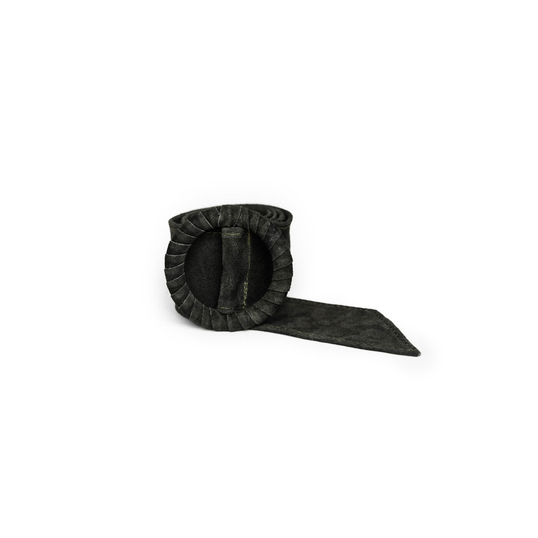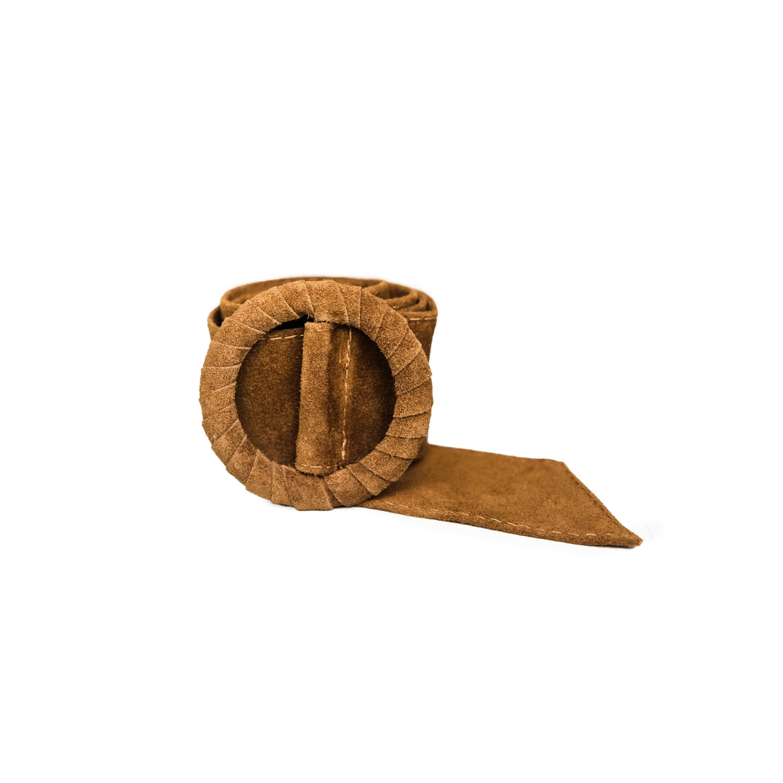 This Suede Round Buckle adjustable belt has a beautiful wrapped buckle. Made from Italian leather.