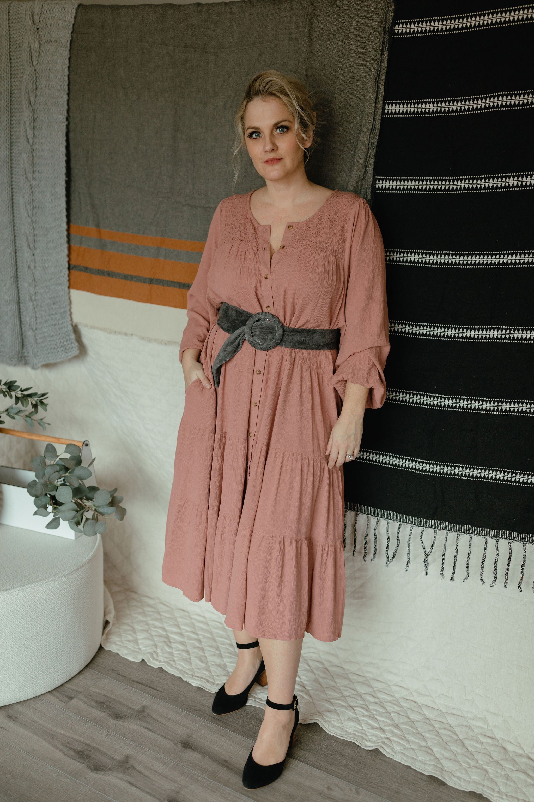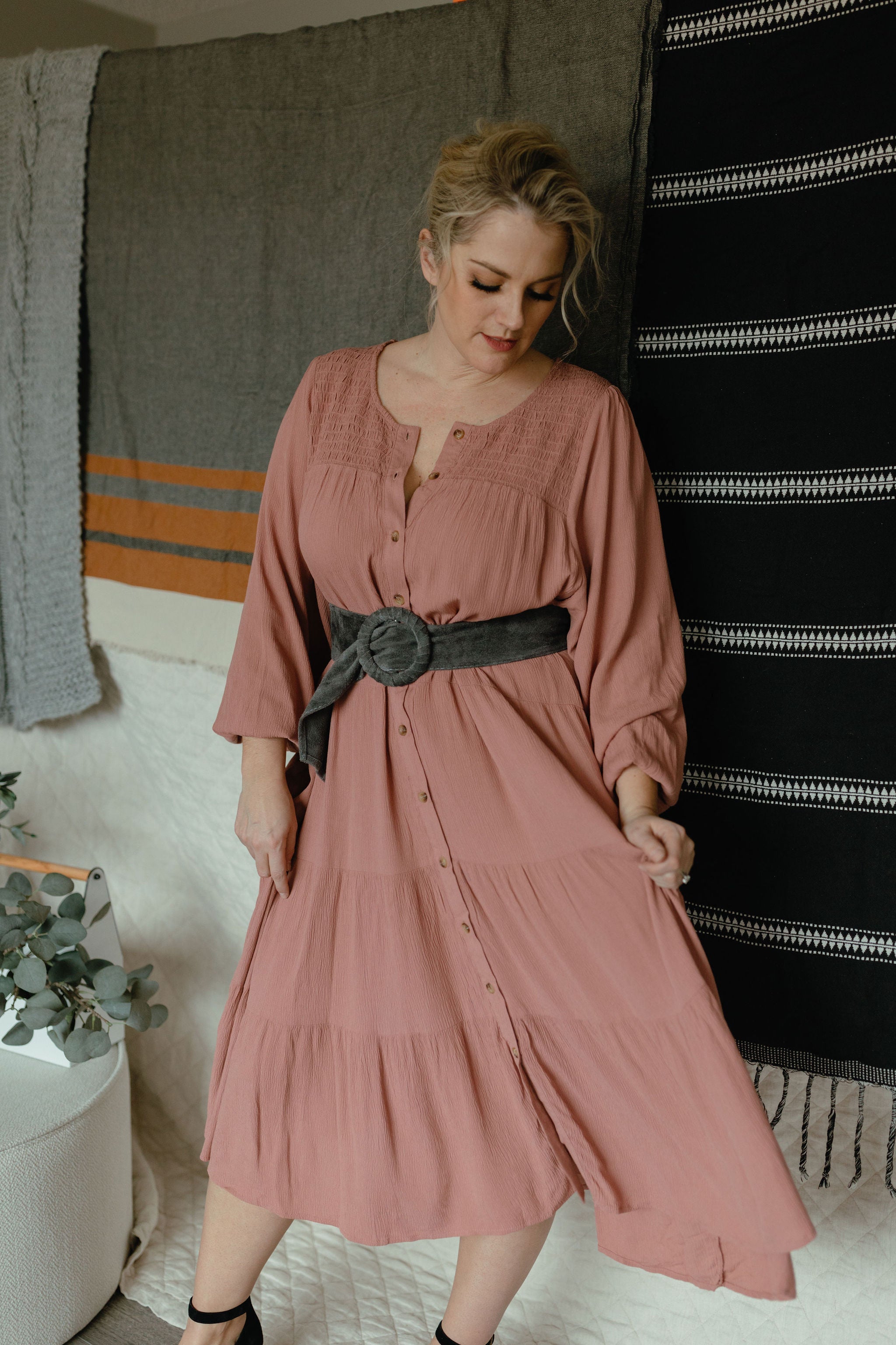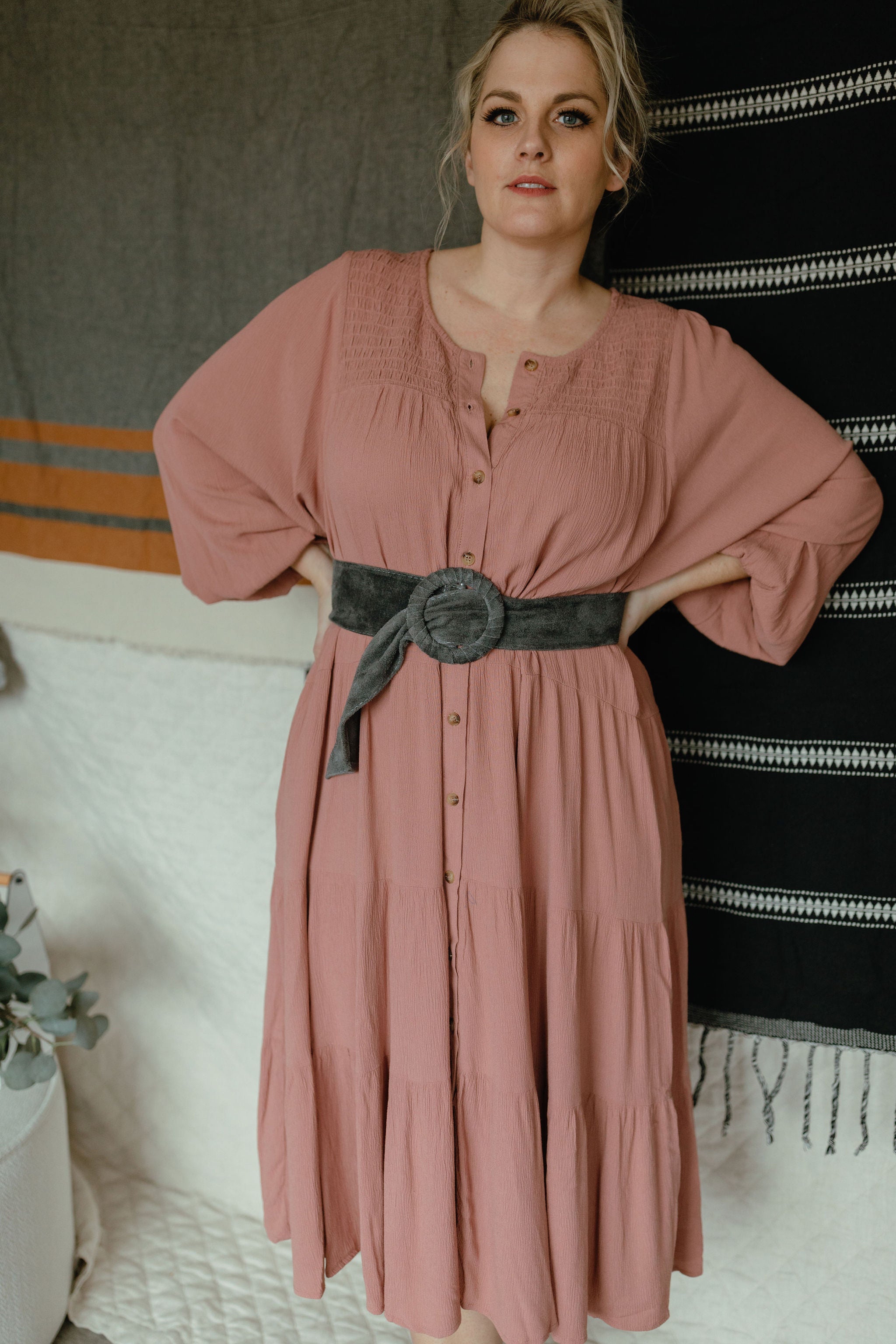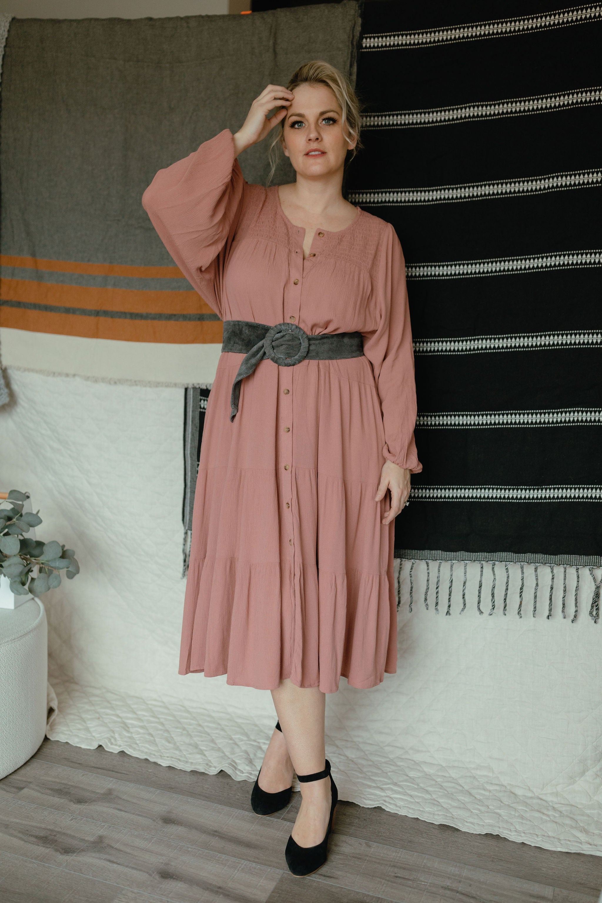This Suede Round Buckle adjustable belt has a beautiful wrapped buckle. Made from Italian leather.