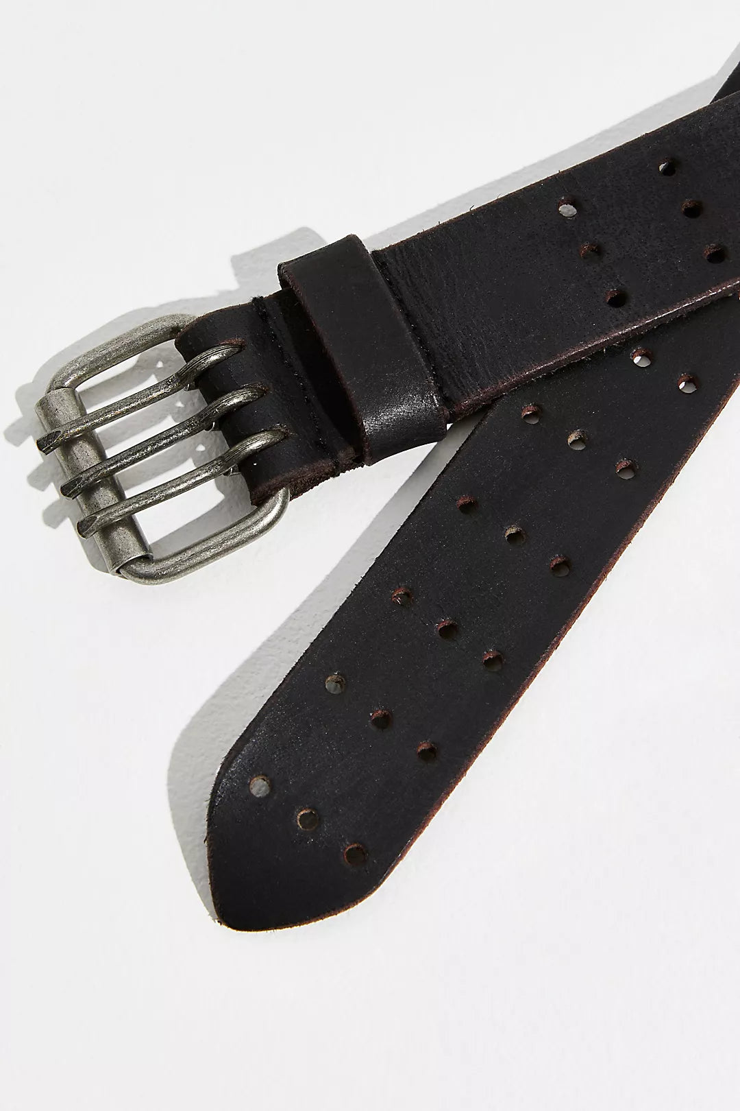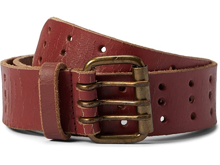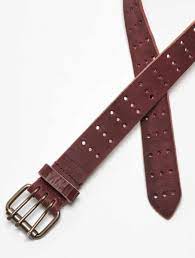 The best things really do come in threes with this so cool leather belt, featured in a triple-prong style with a rounded square-shaped buckle and pointed tip.