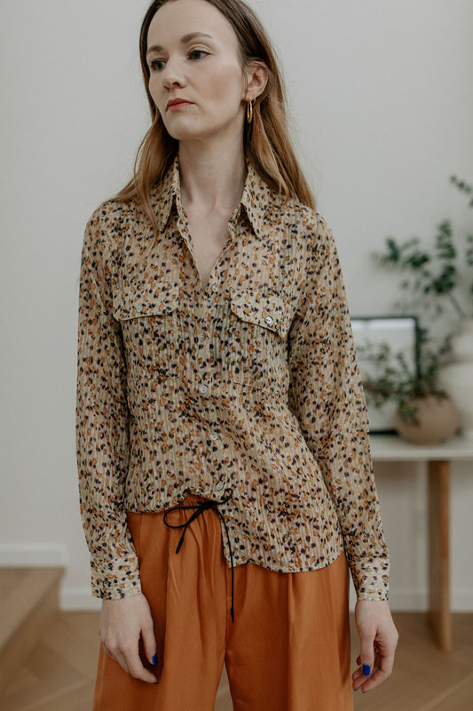 We love the casual chic style of this pattern, with long sleeves, buttoned cuffs, a tailored collar and chest pockets.