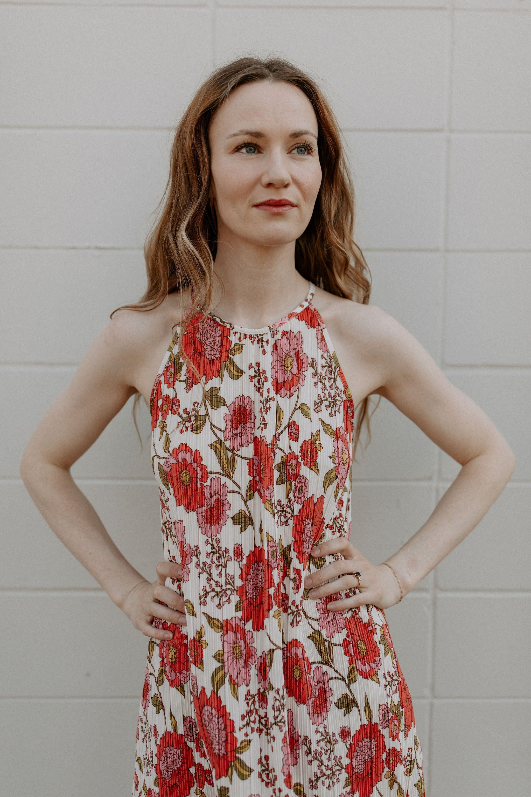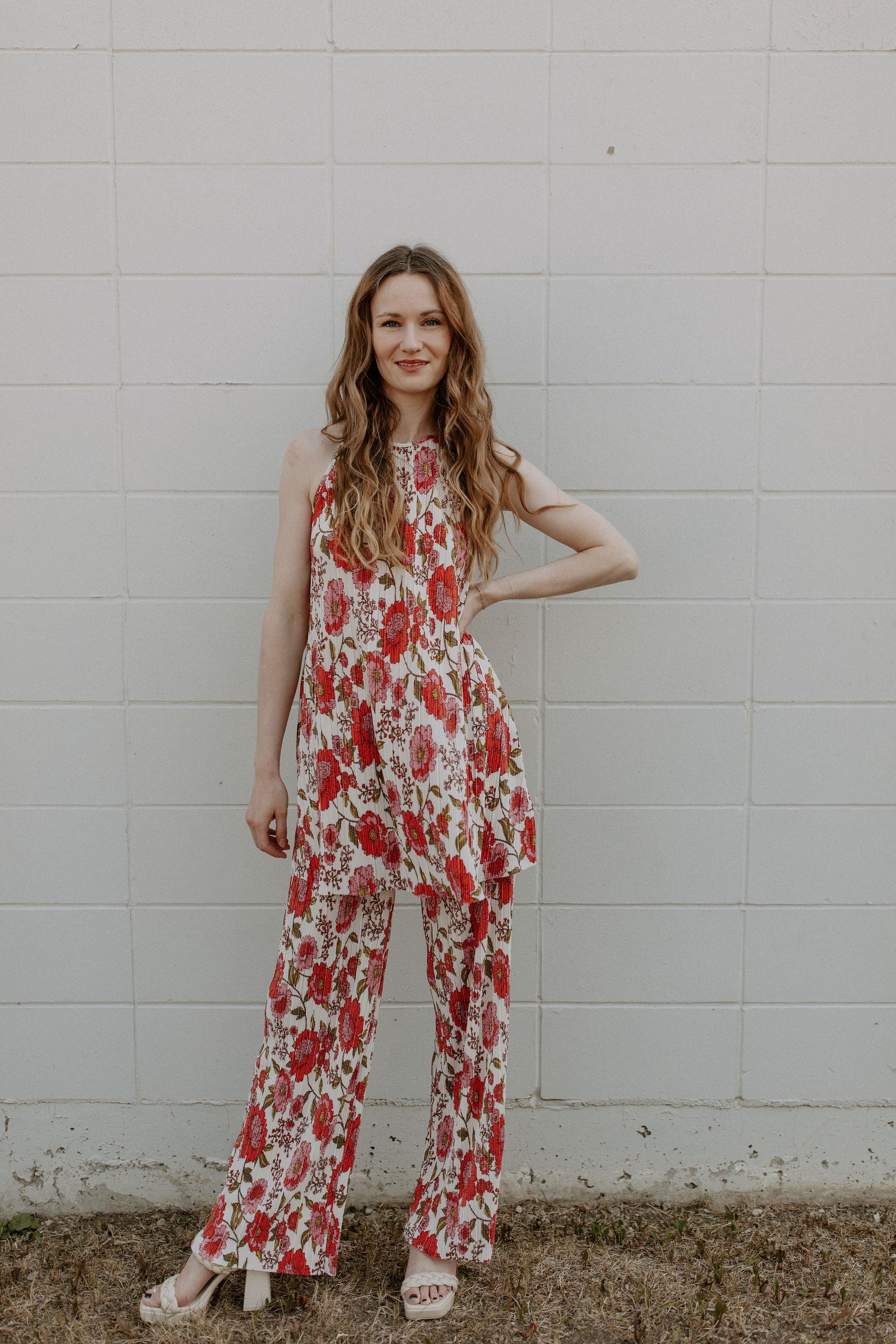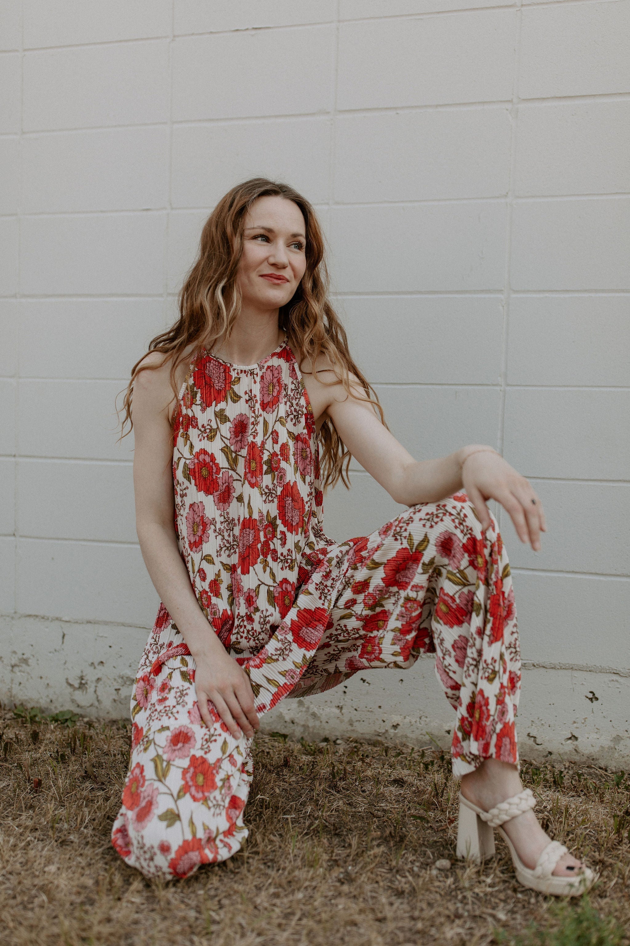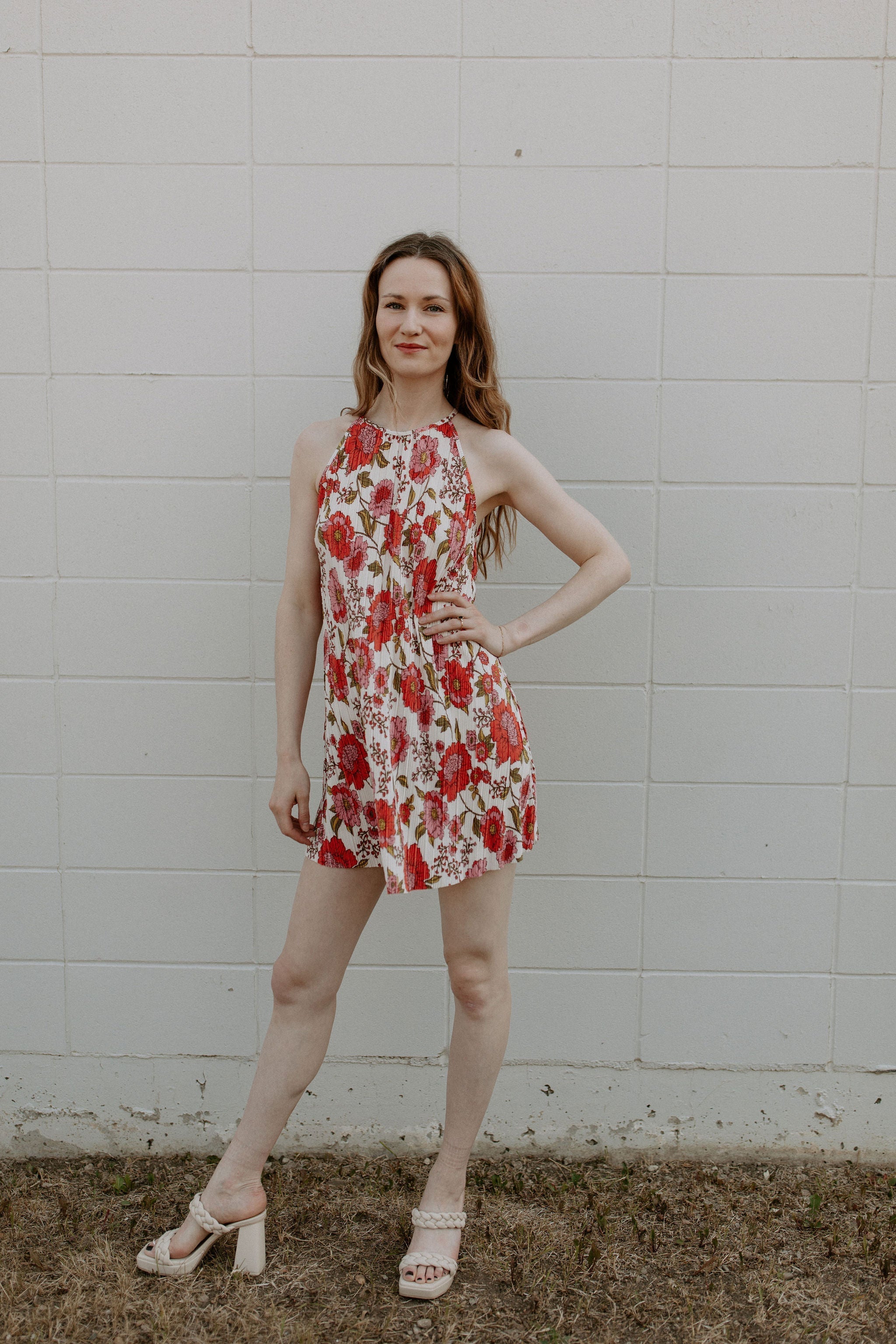 A vintage-inspired floral print brings charming style to a halter-neck trapeze dress textured by rippling plissé pleats. Awesome 70's Botanical Vine print throughout. Pleated. Halter style.