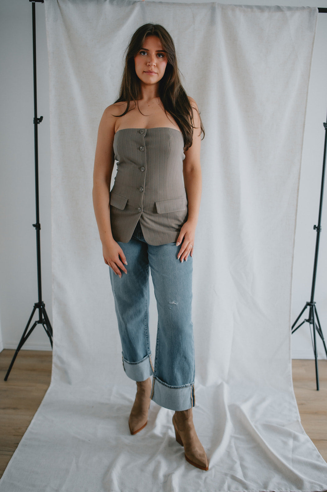 - Erinn wears a size 29 and is 5'6. We suggest you size down if you are in between sizes.