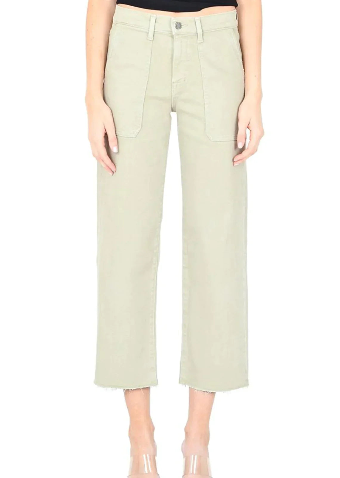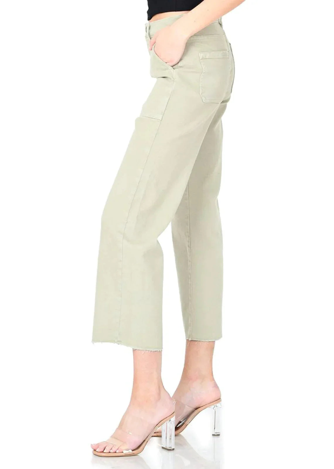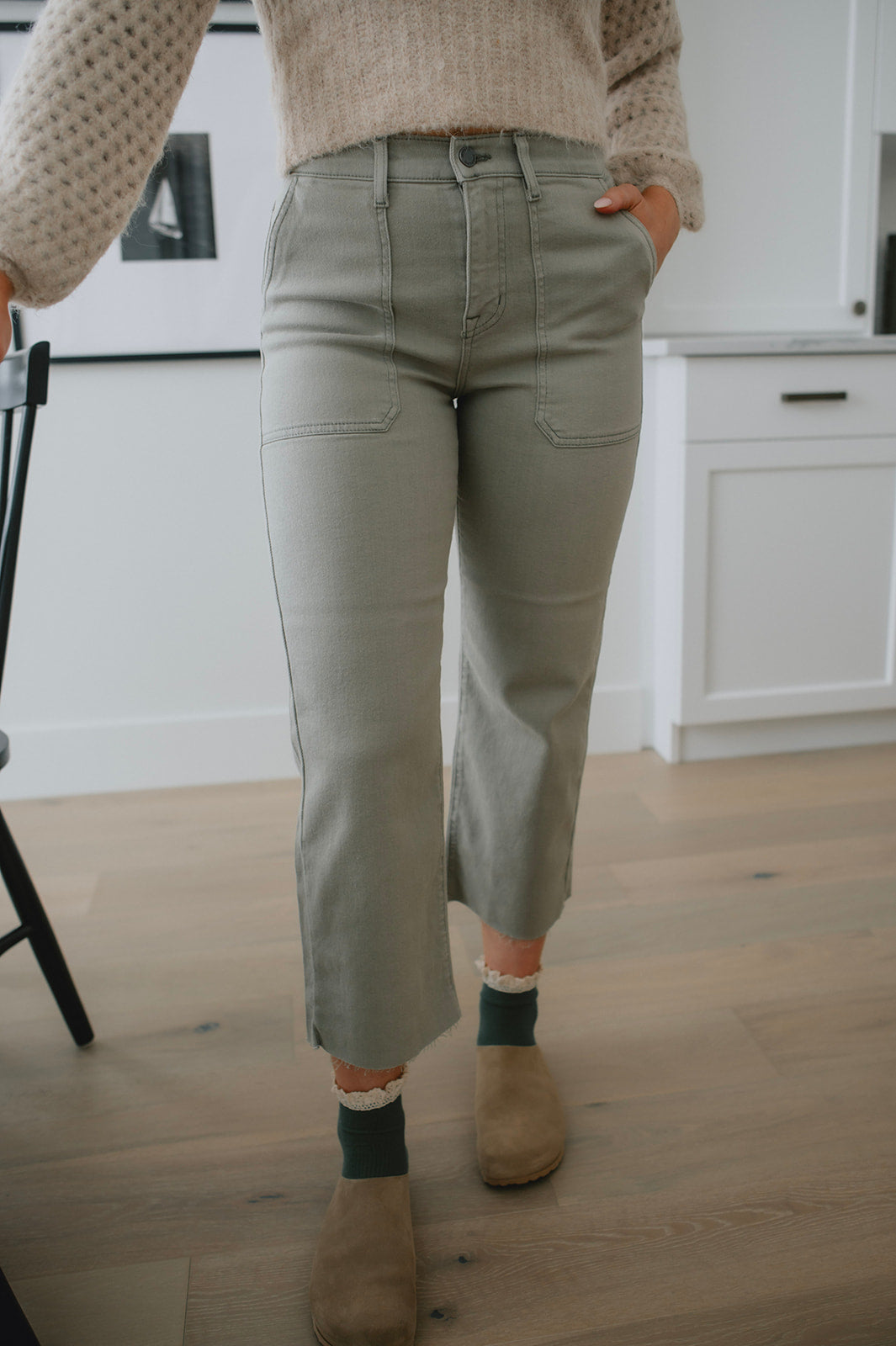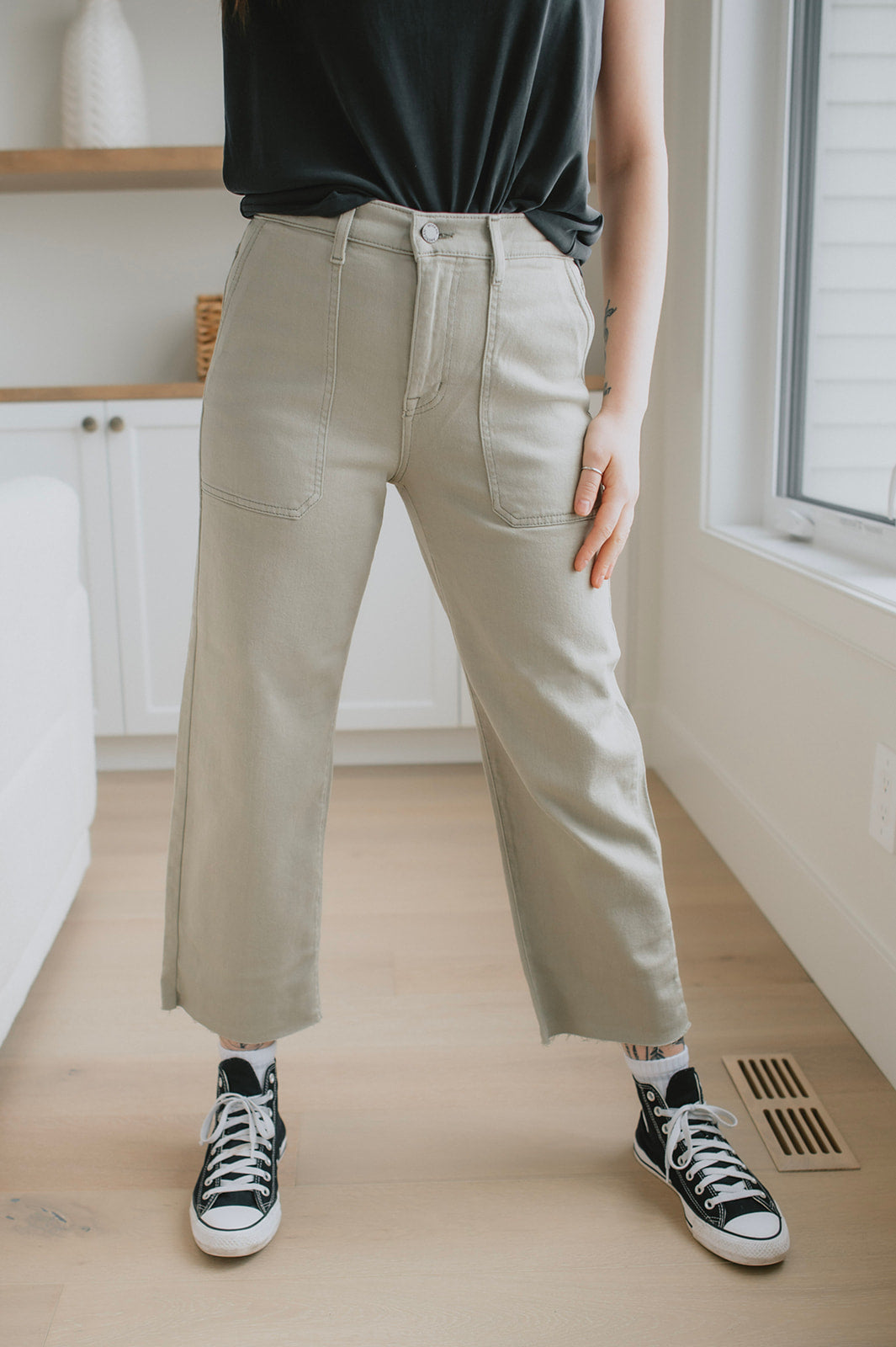 A classic utility silhouette in wide-leg pants updated with a cropped length.