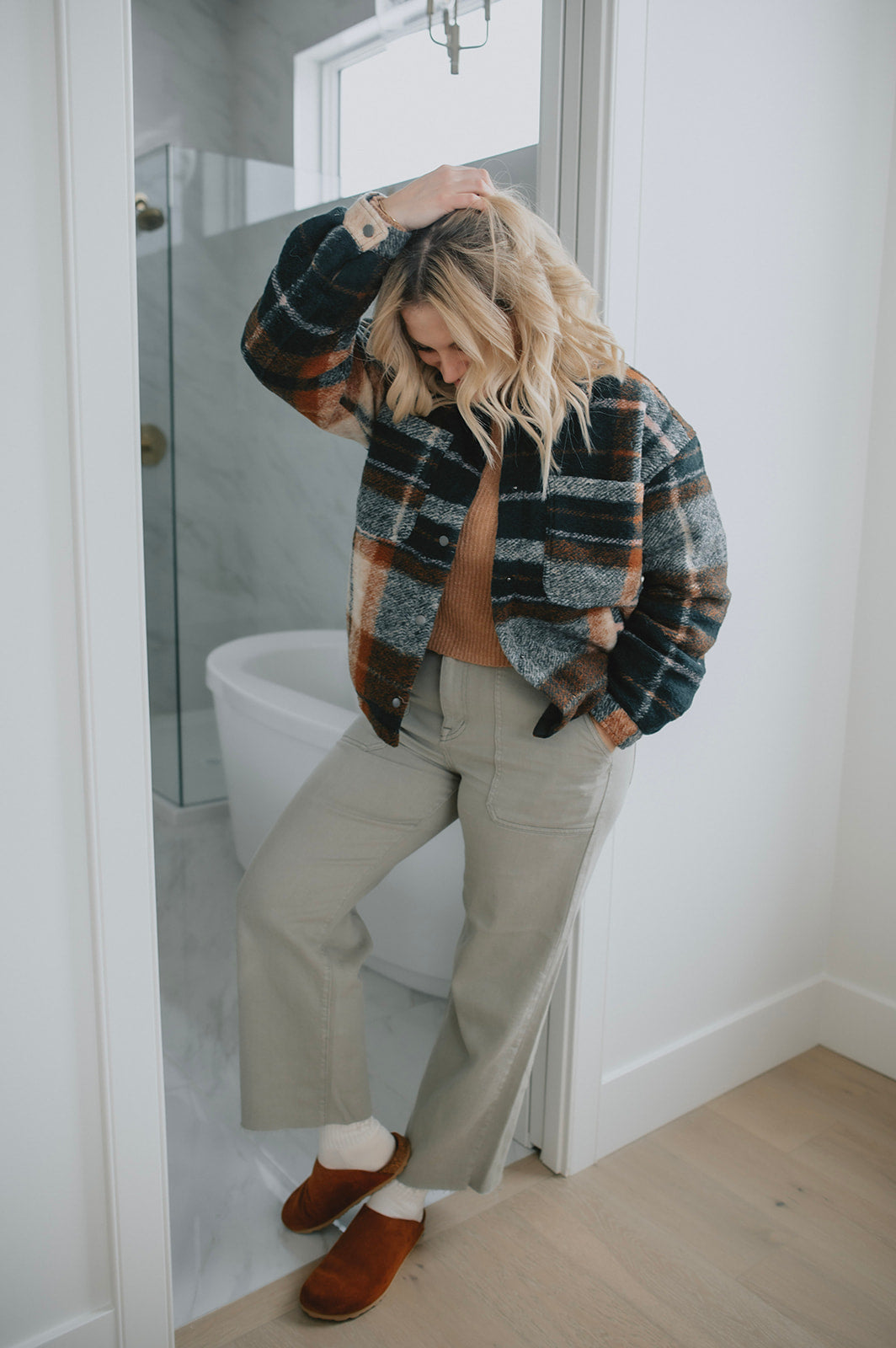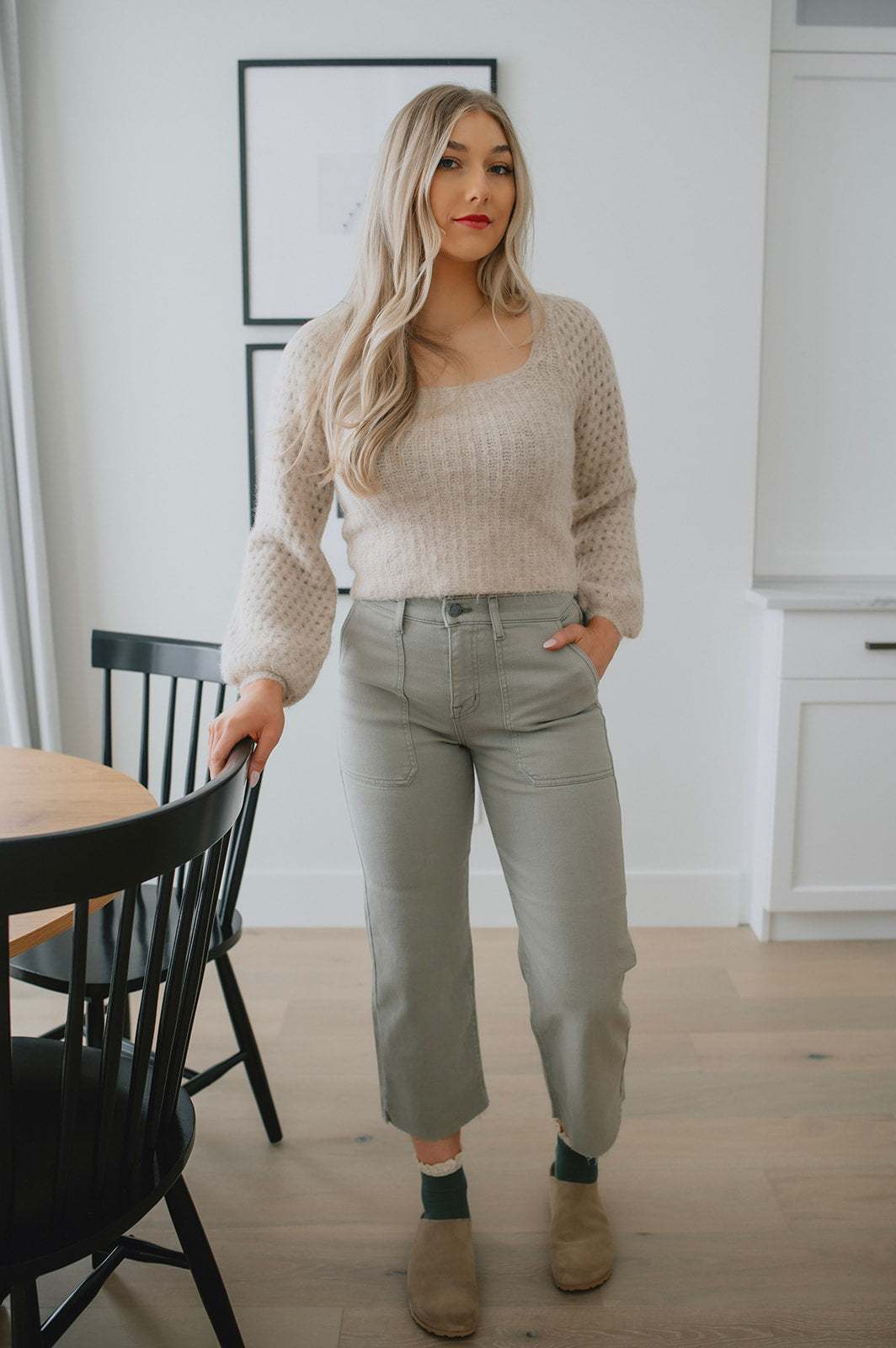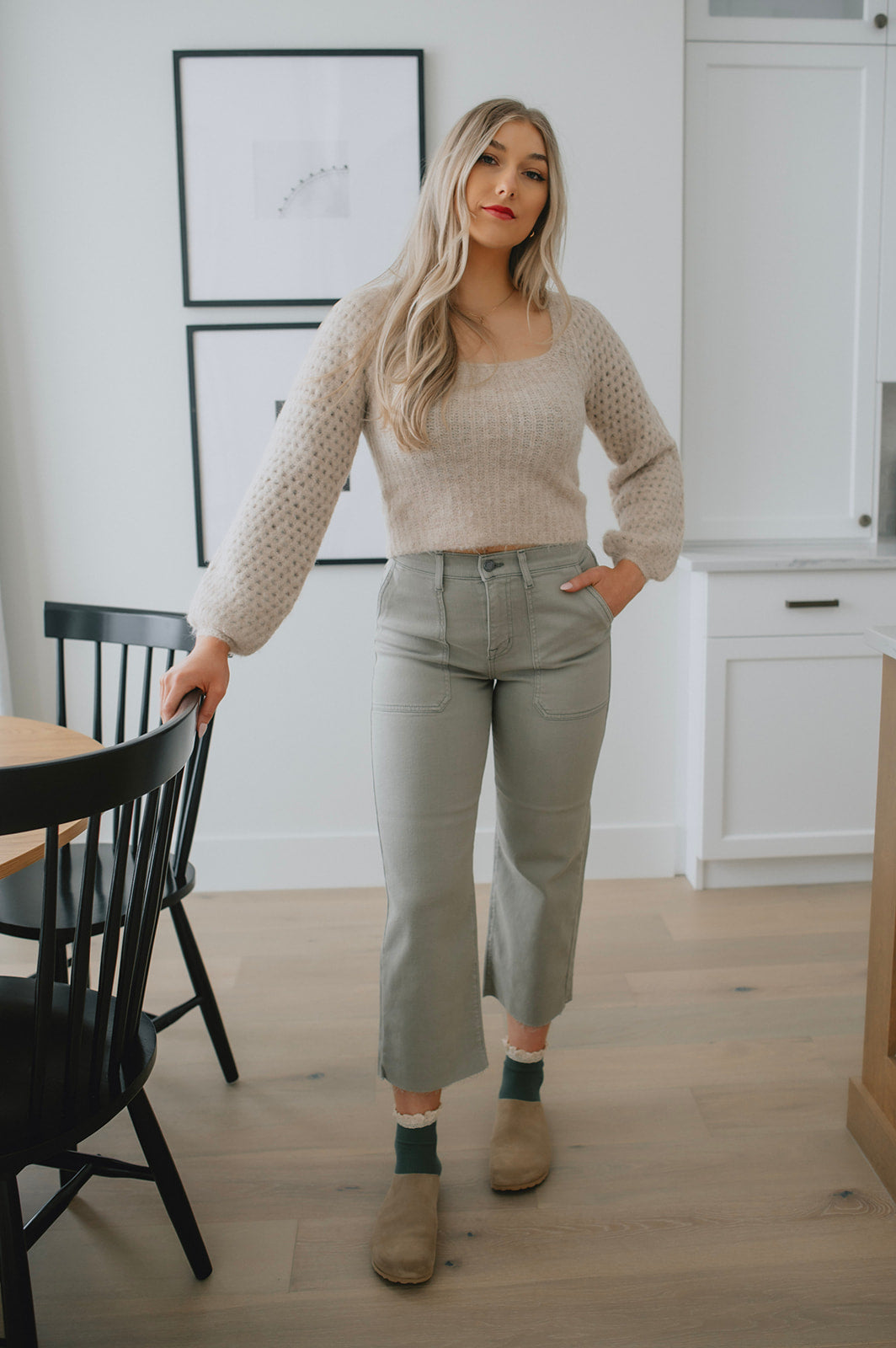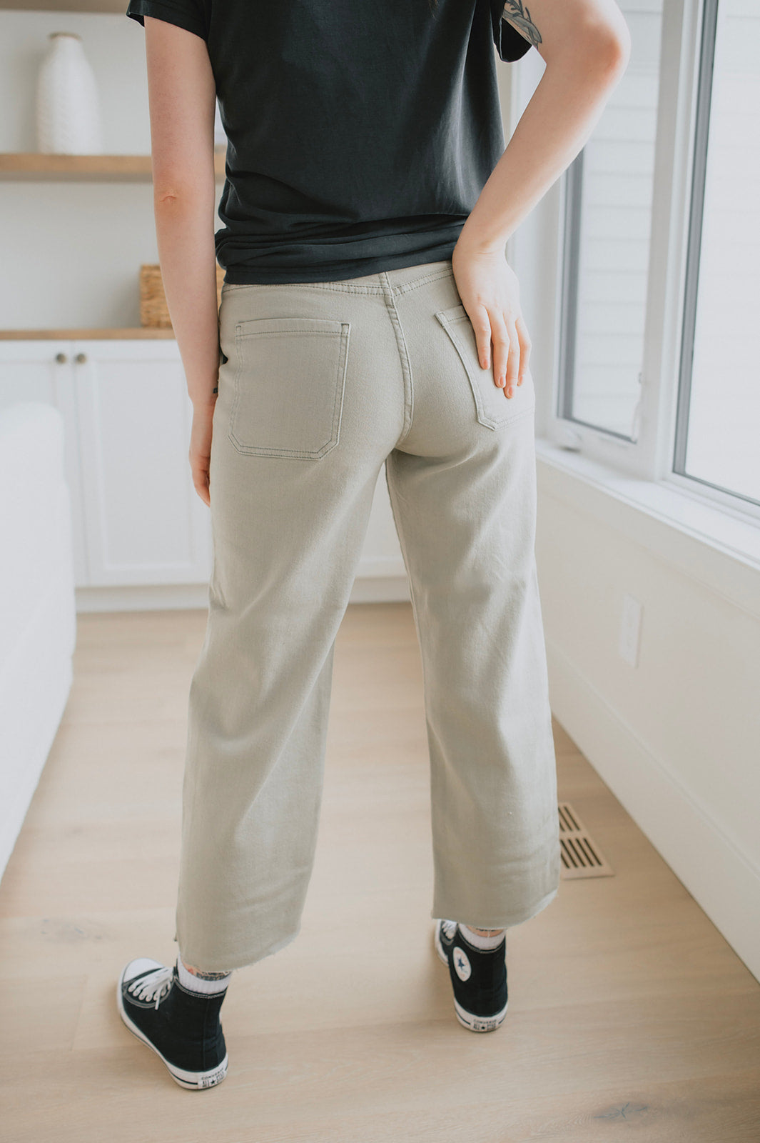 A classic utility silhouette in wide-leg pants updated with a cropped length.