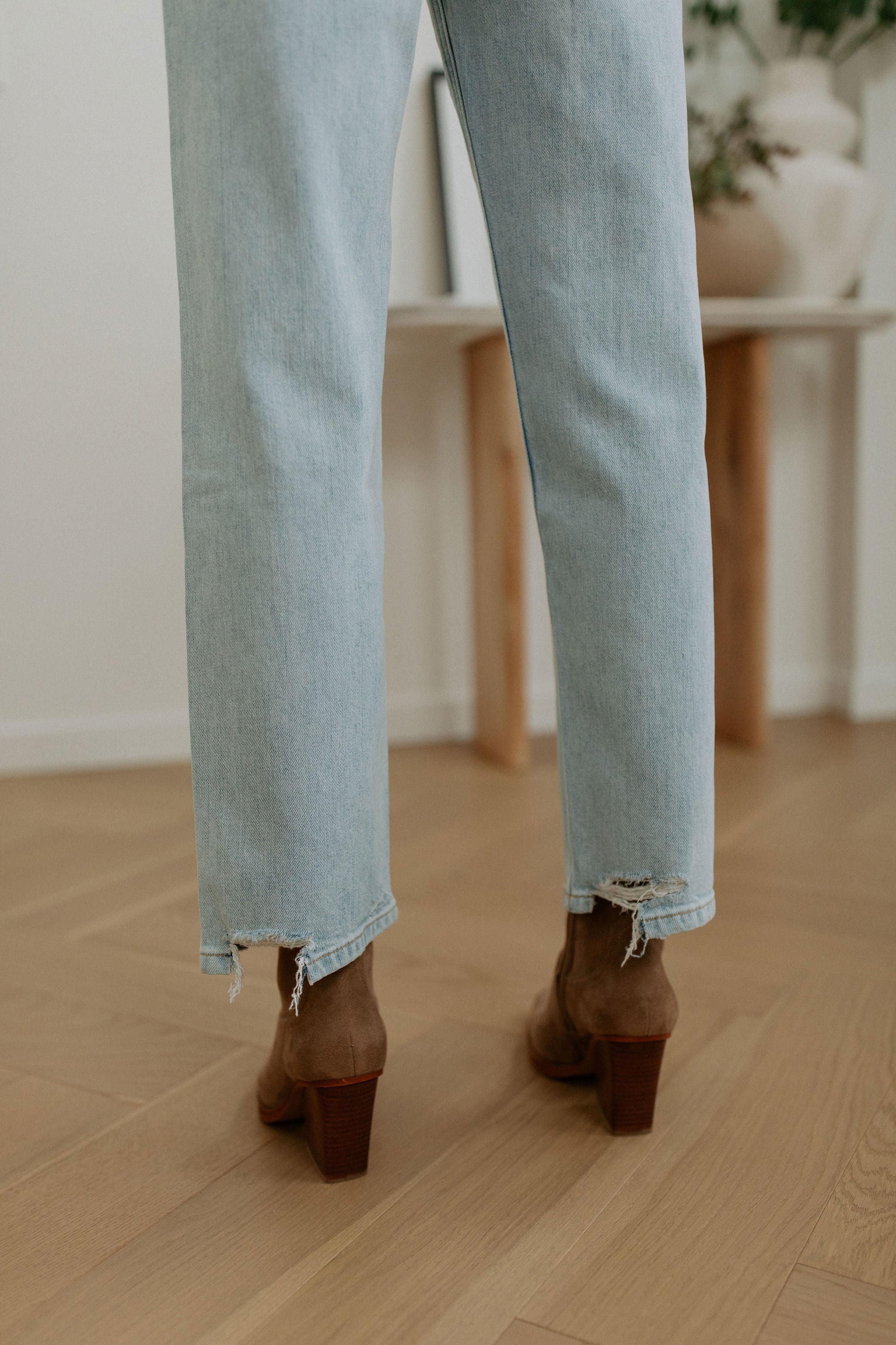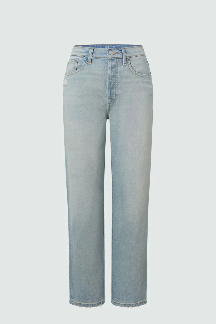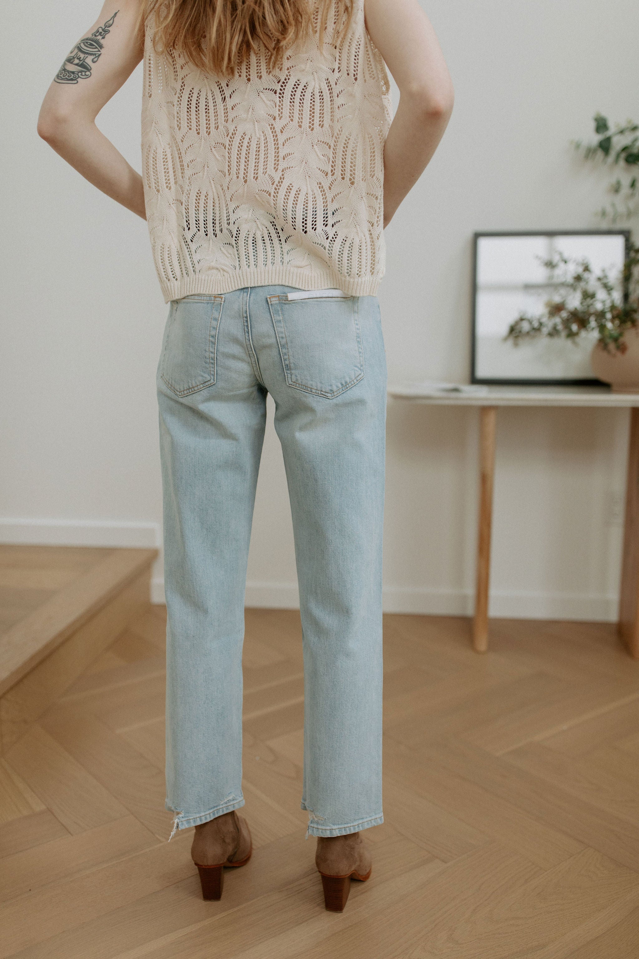 A classic straight leg jean with a button fly, expertly crafted in an organic comfort stretch fabric with a smooth twill line and a seasonless light wash.