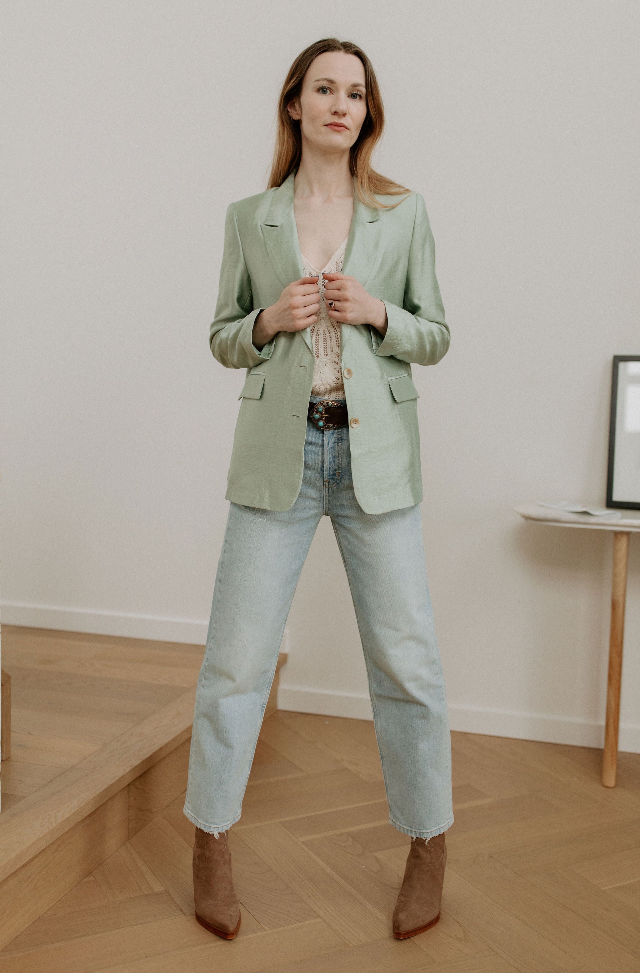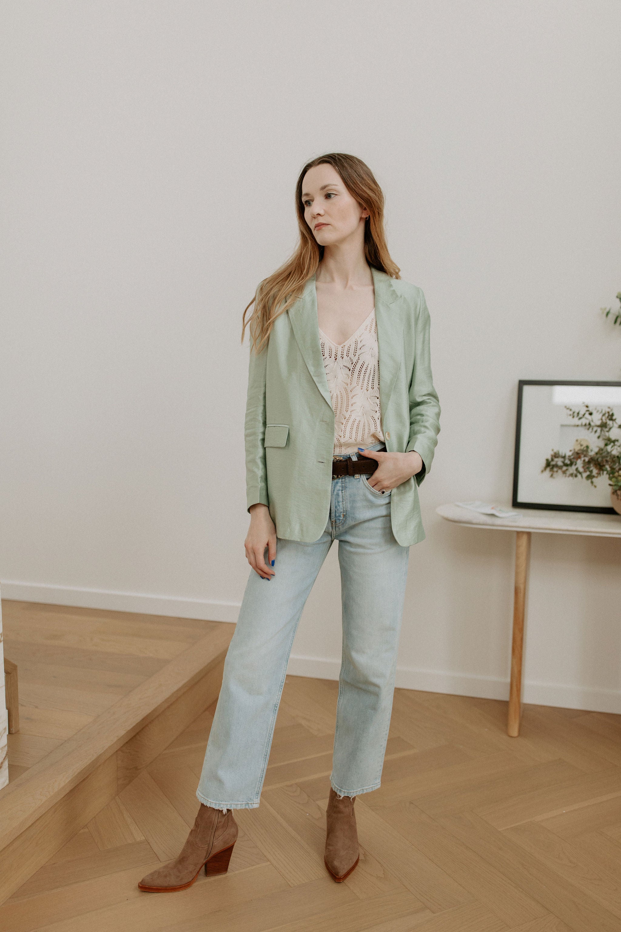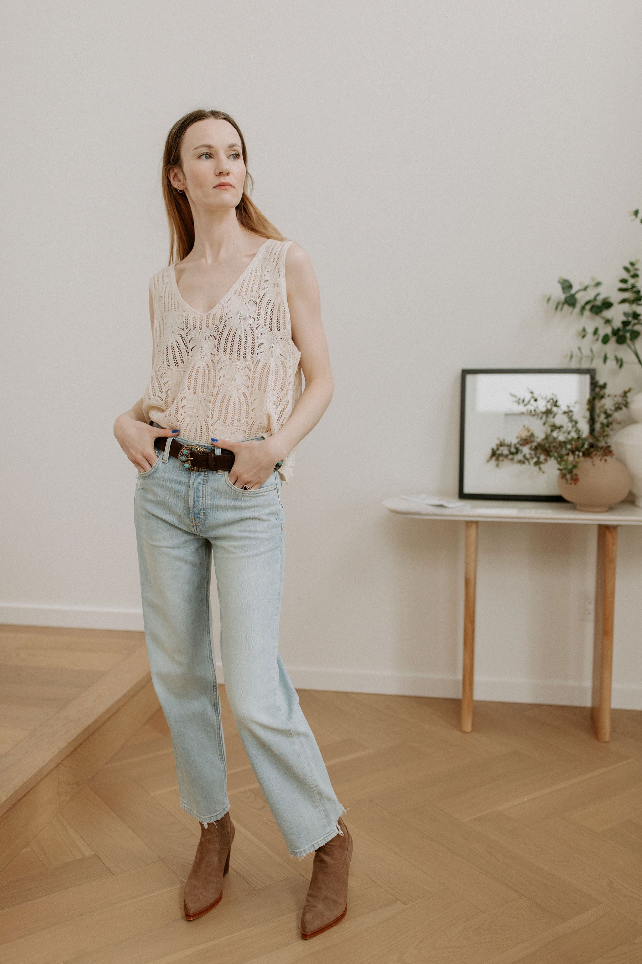 A classic straight leg jean with a button fly, expertly crafted in an organic comfort stretch fabric with a smooth twill line and a seasonless light wash.