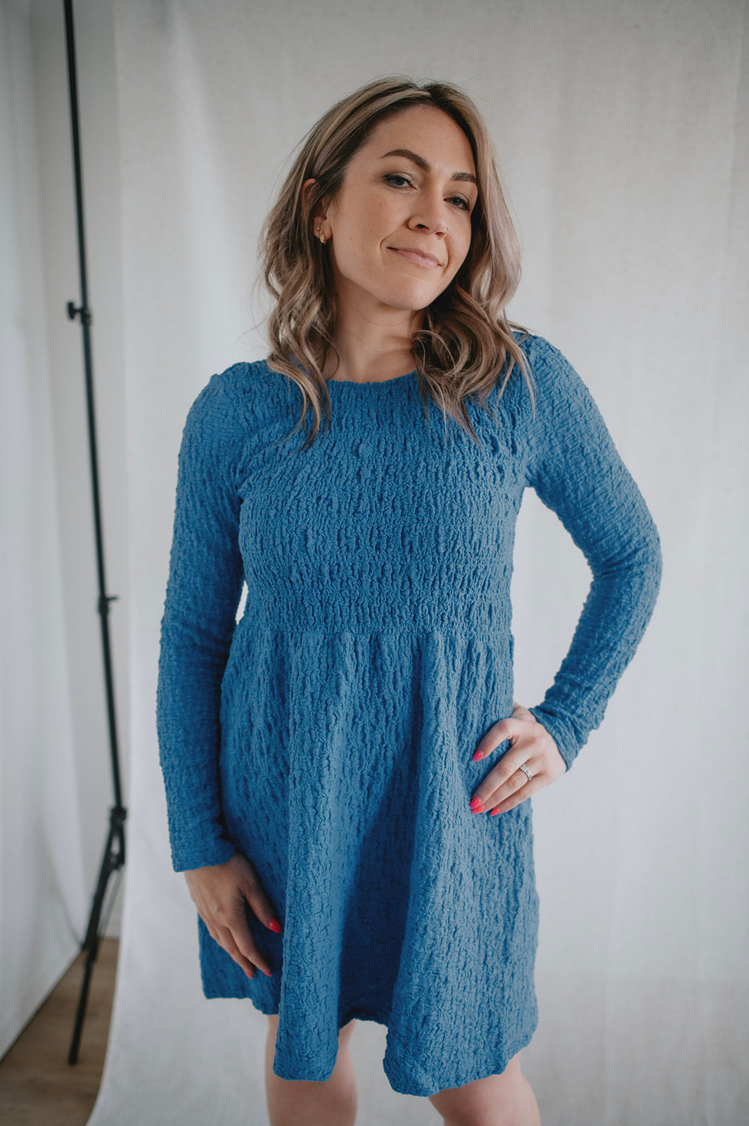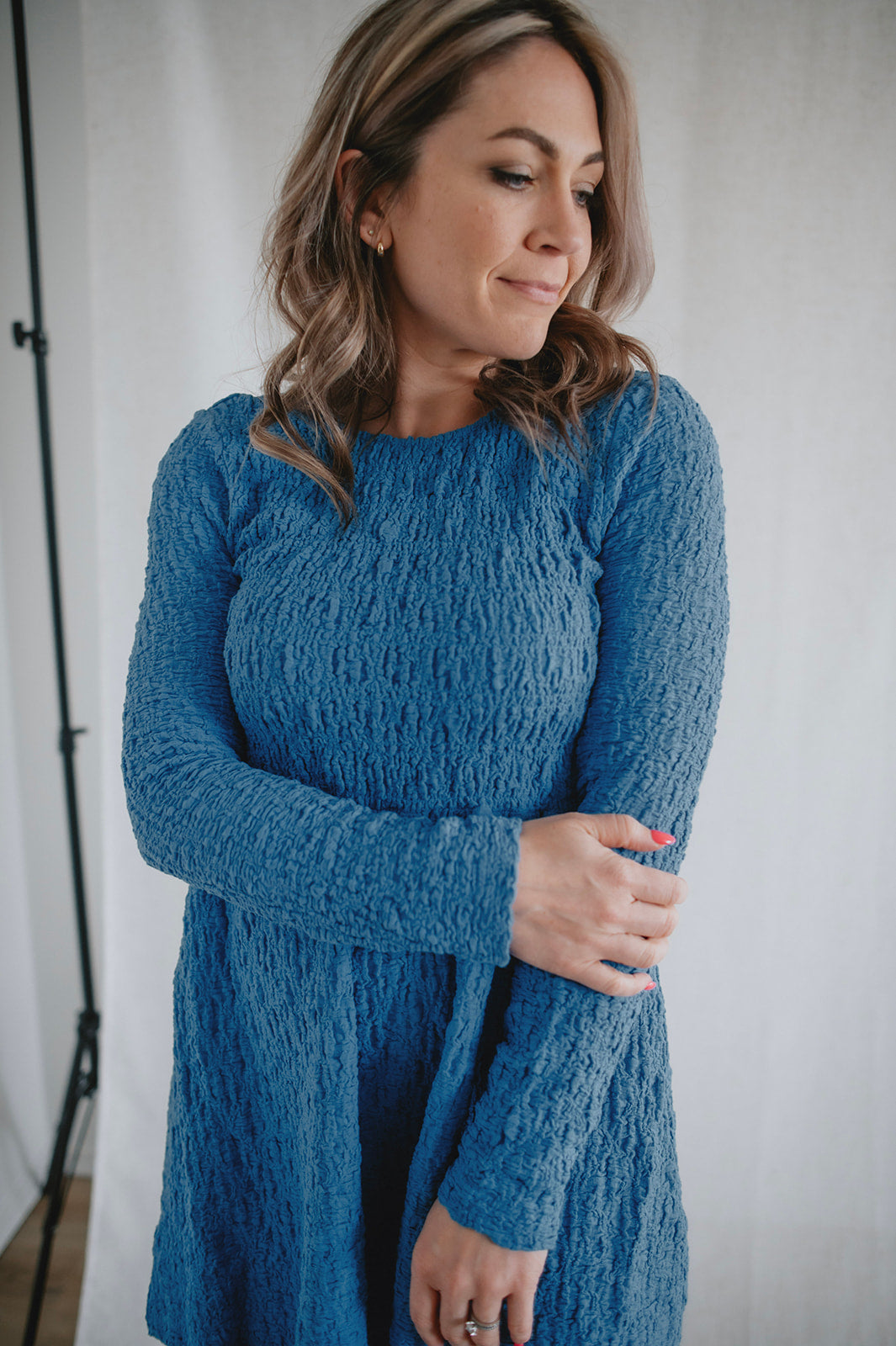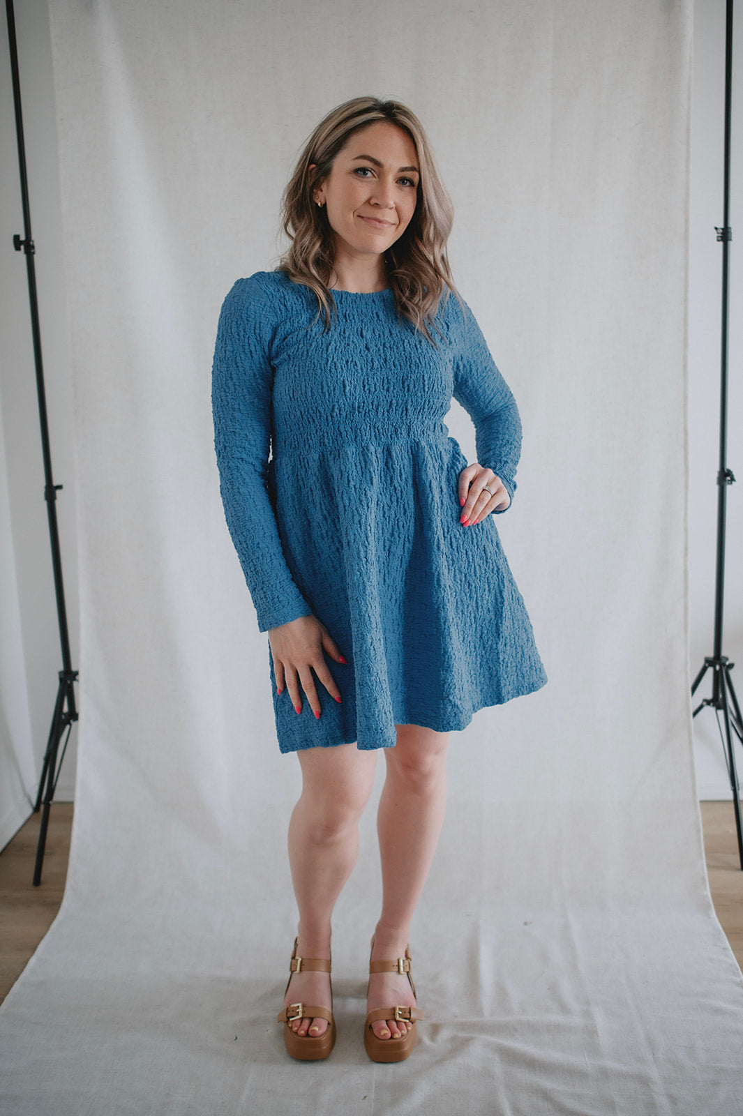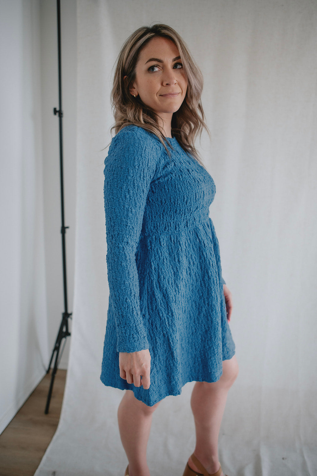 Ethereal and dreamy! Embrace your free-spirited side in our Adrianna Mini Dress. The pacific blue hue gives a relaxed vibe, while the playful front details add a touch of charm. Pair with boots or strappy heels.
