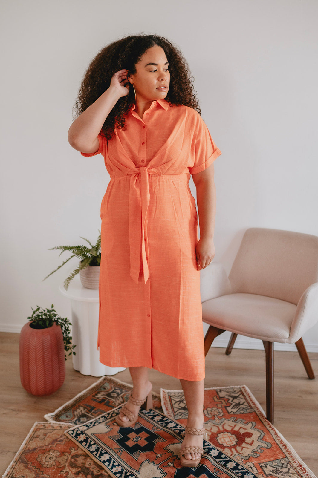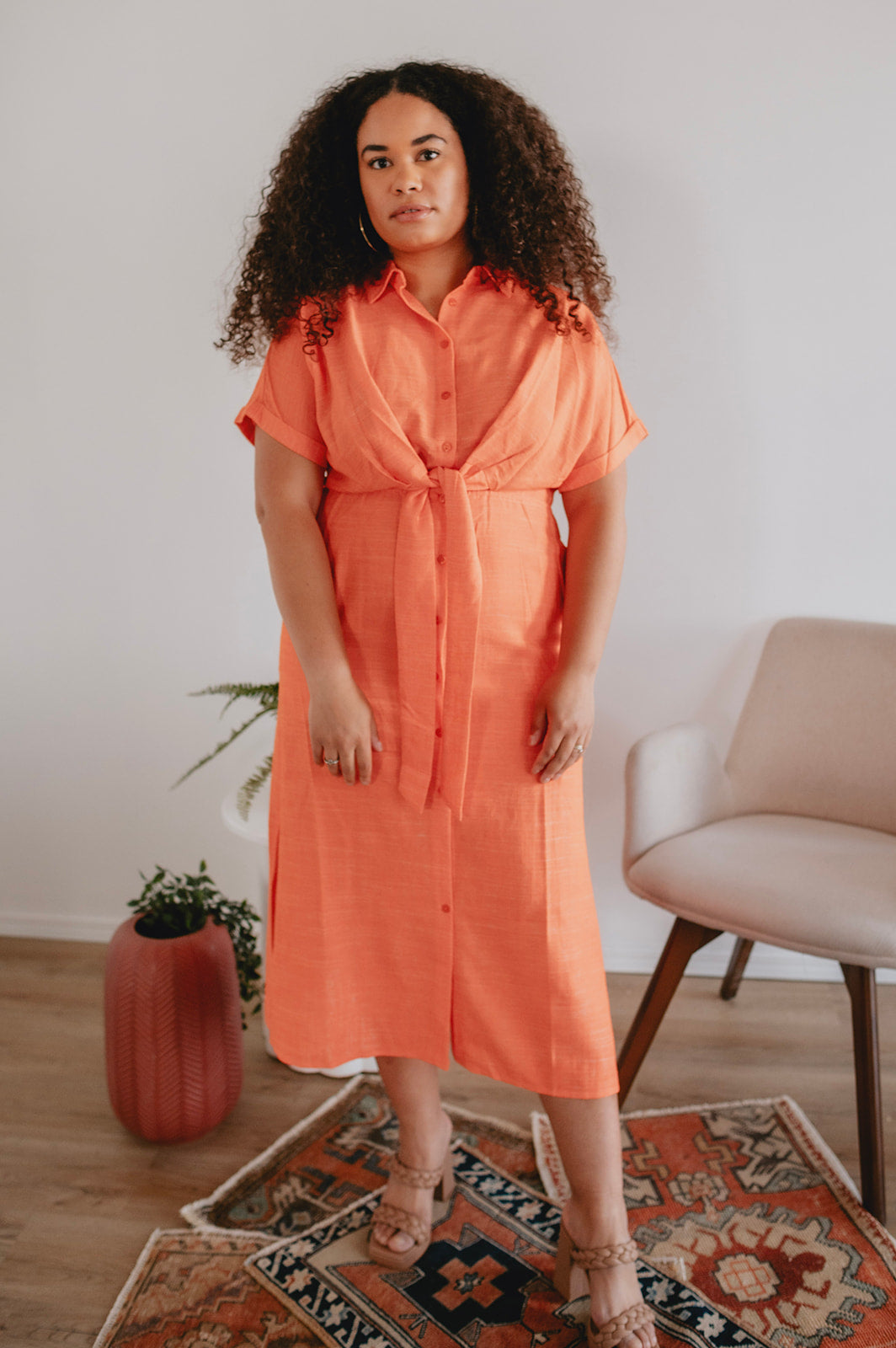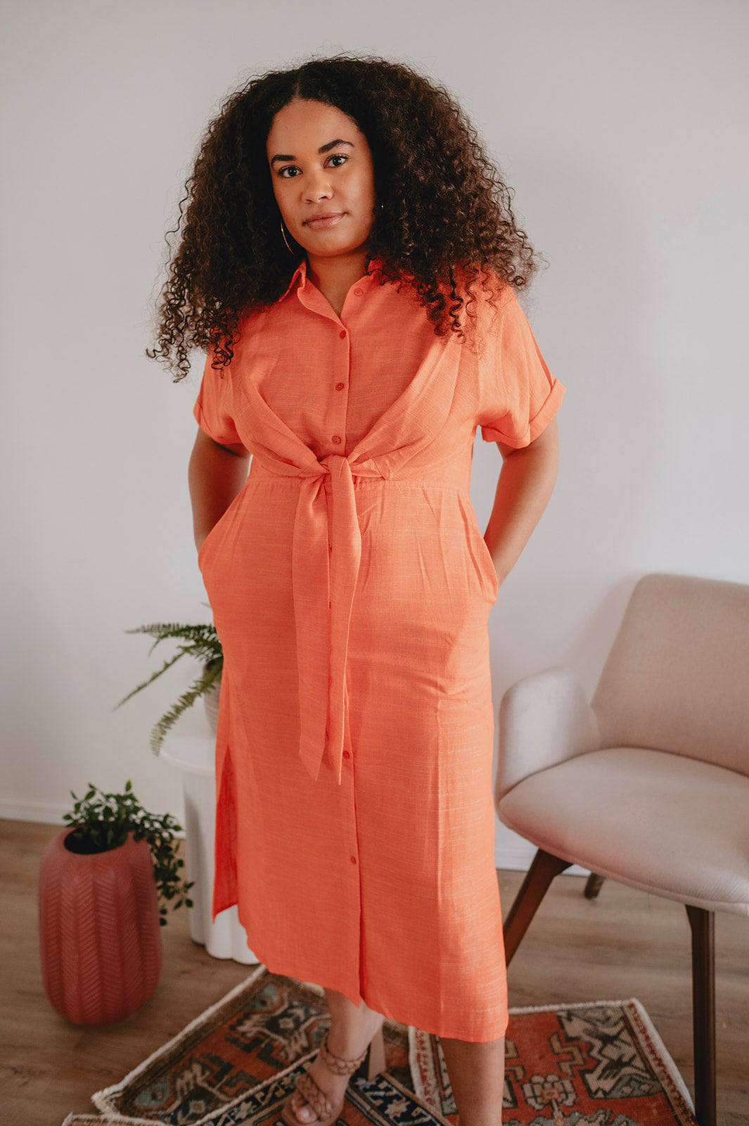 The perfect Spring & Summer staple. This effortless silhouette is comfortable as ever and flatters the waist with the belt tie. Trust us, this colour is as perfect in real life as she looks in the photos. She truly looks good on everyone.