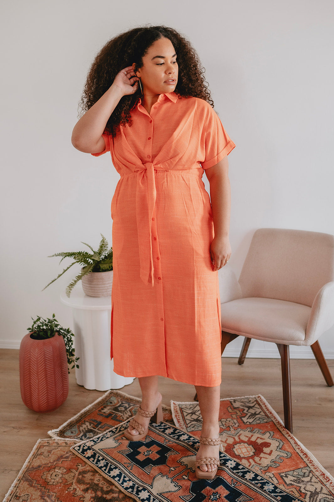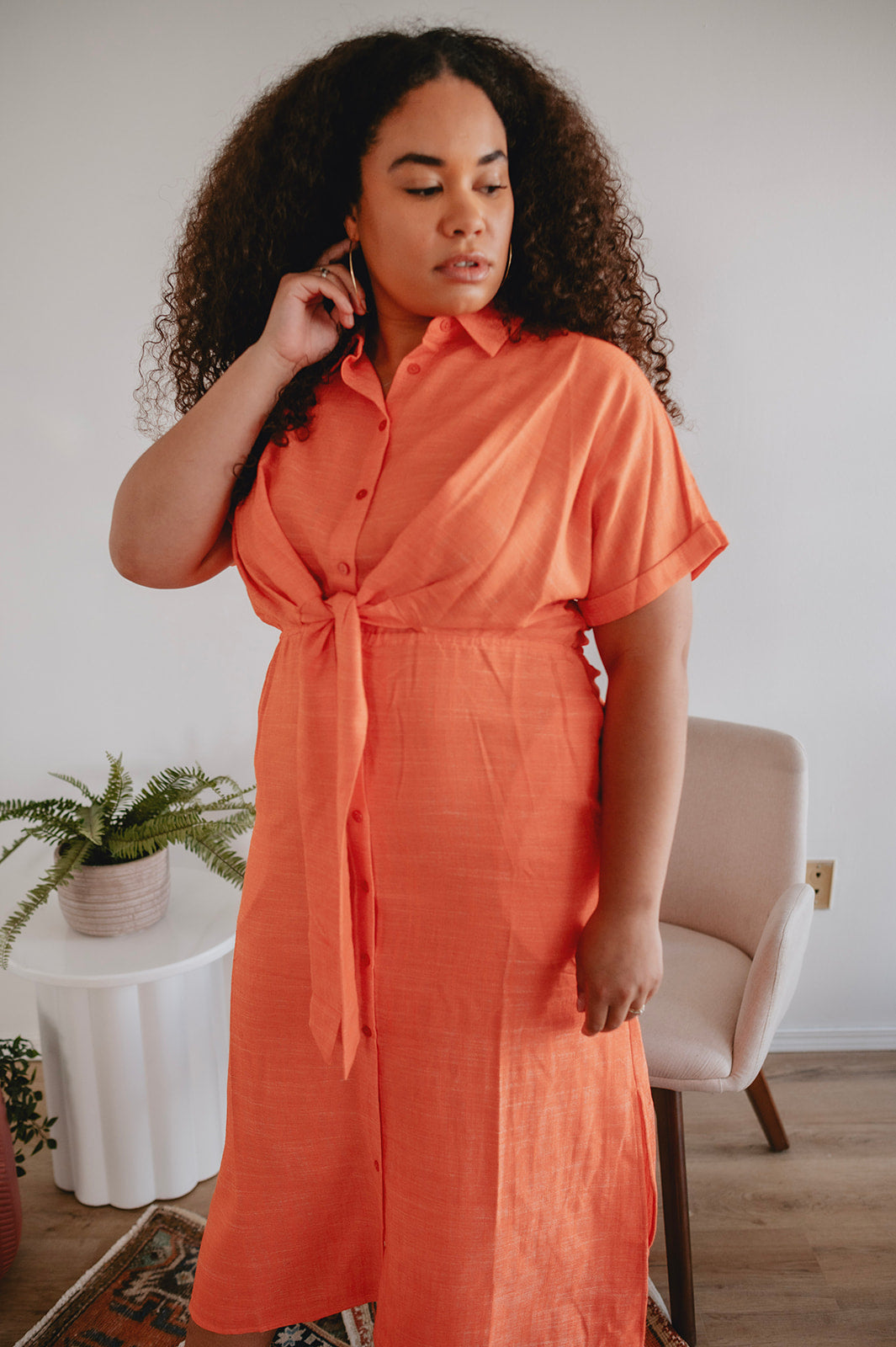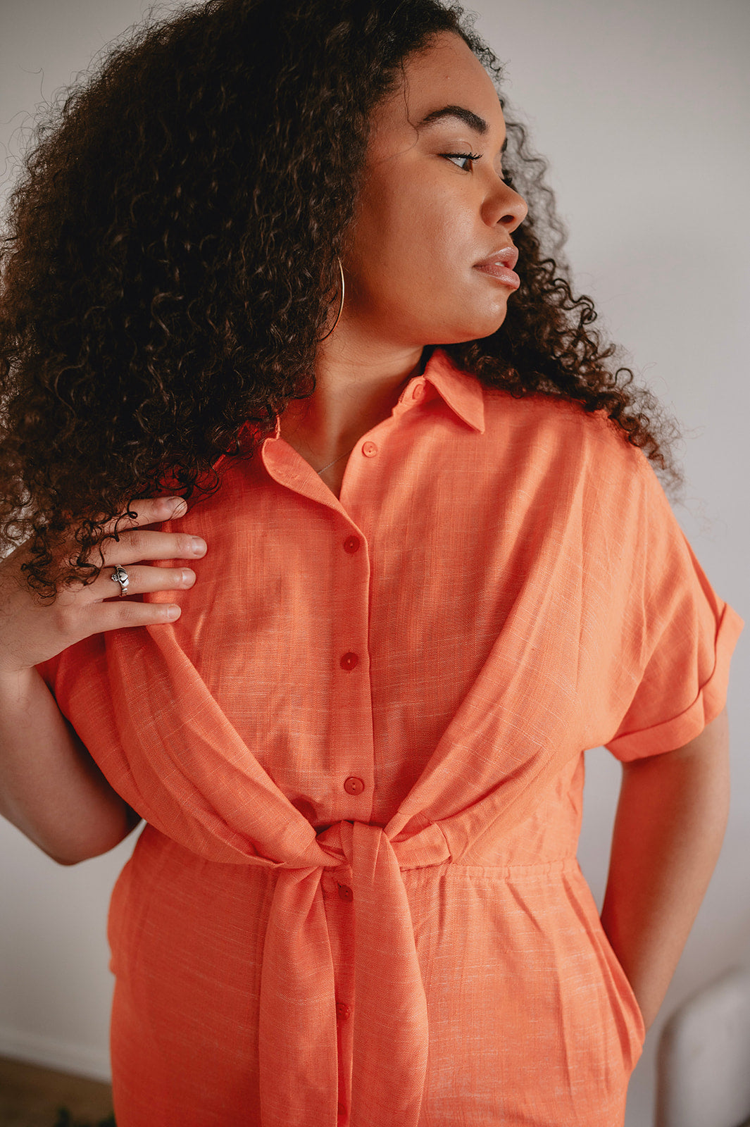 The perfect Spring & Summer staple. This effortless silhouette is comfortable as ever and flatters the waist with the belt tie. Trust us, this colour is as perfect in real life as she looks in the photos. She truly looks good on everyone.