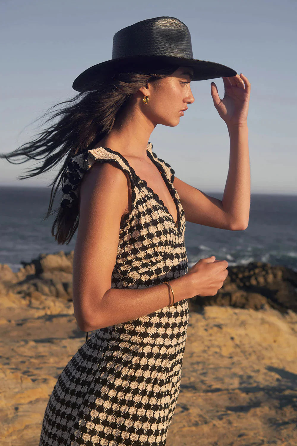 Feminine and flirty! Our crochet cotton Ruffle Sleeve Anette Midi Dress features a V-neck. Pair the pretty piece with chunky sandals, and leave the rest in the sun's hands!
