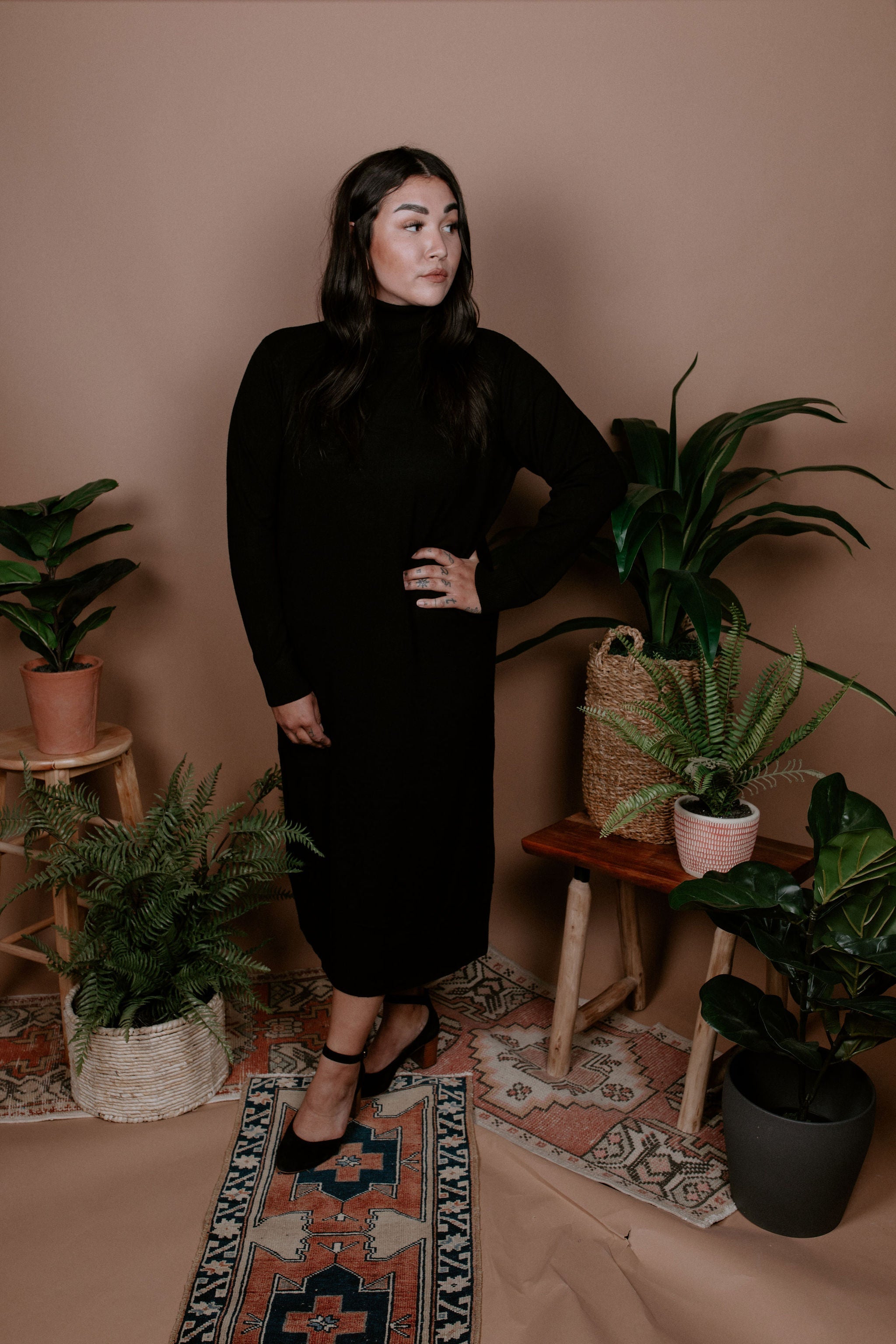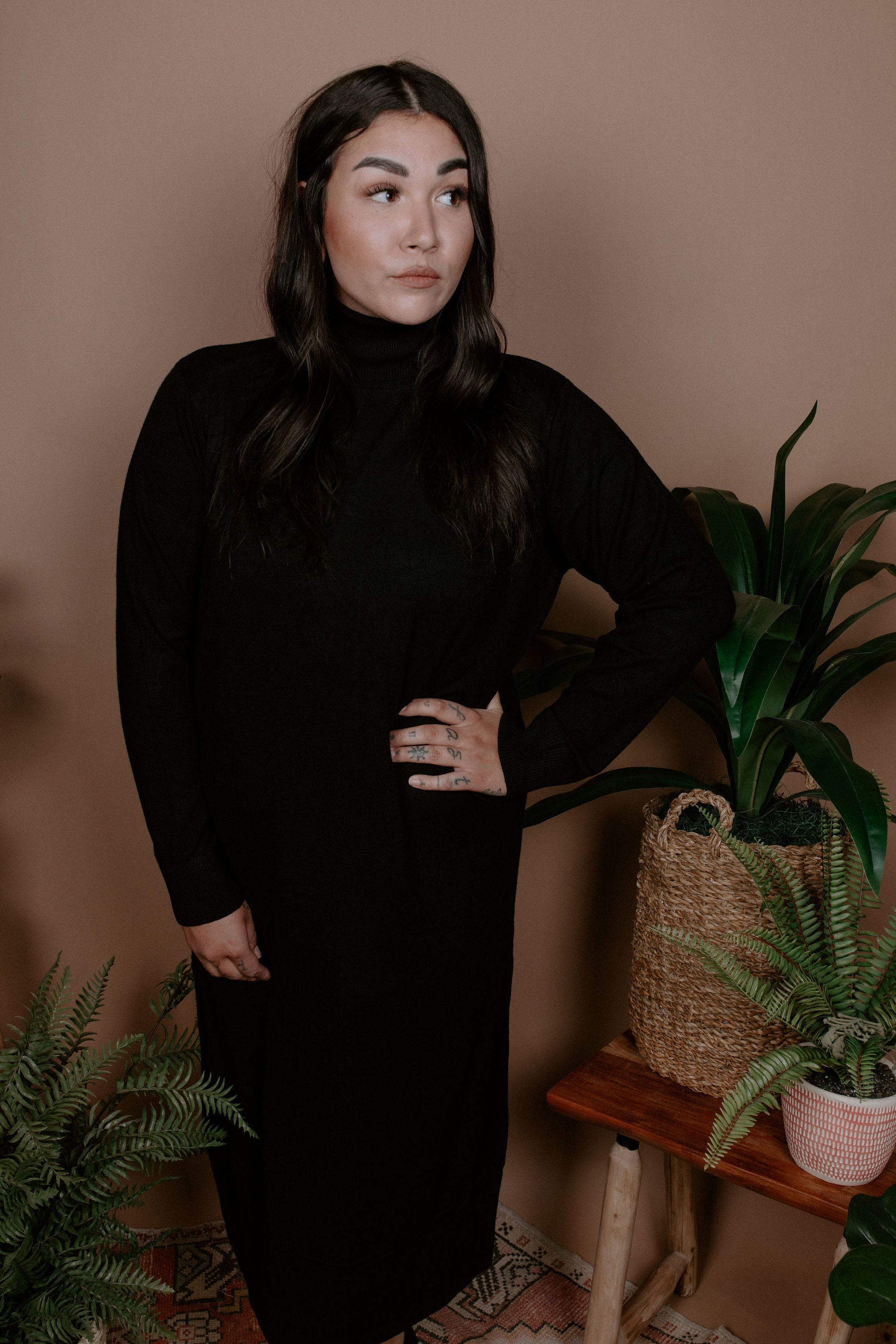 This sweater dress is *Chef's Kiss*. Perfect staple for any wardrobe. Super soft, super cozy, and features a turtleneck.