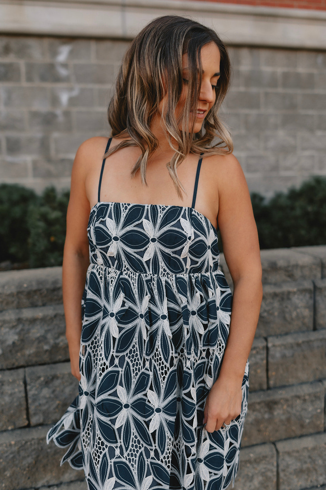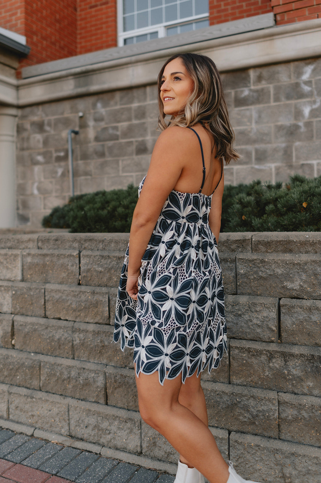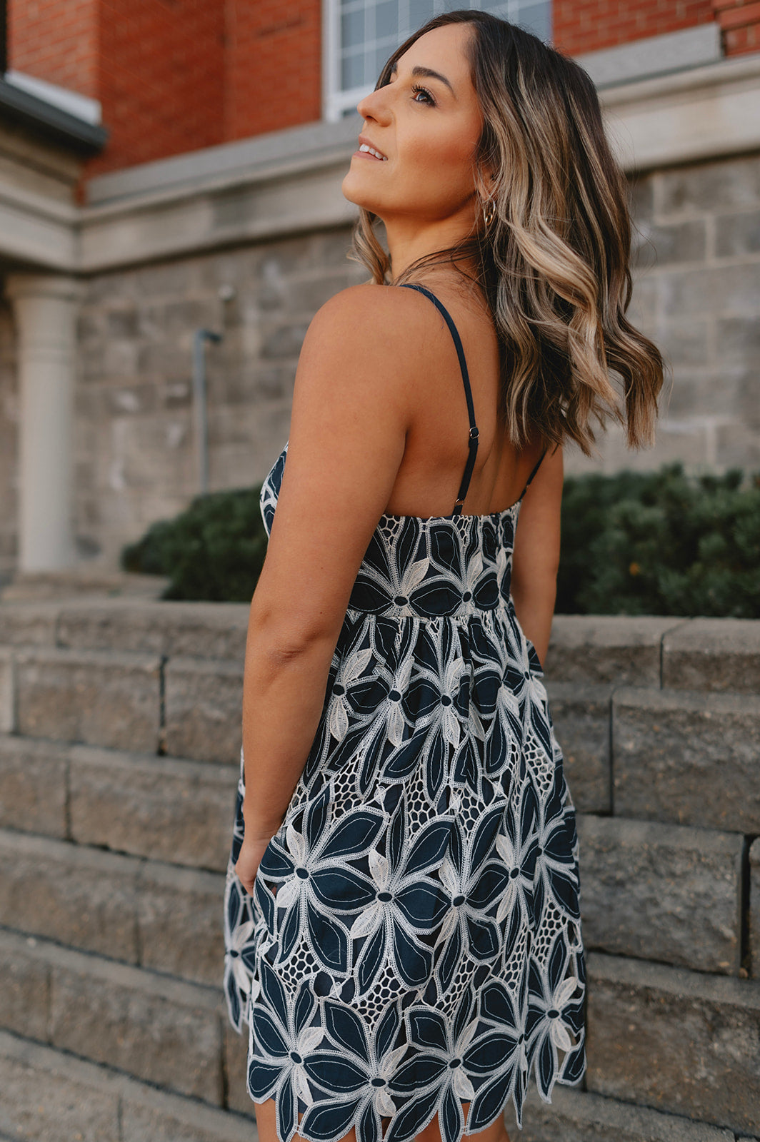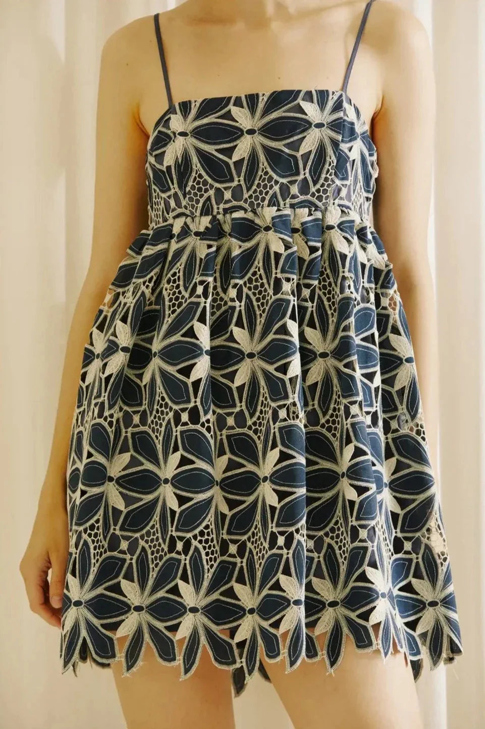 The Clea is a baby doll style mini dress with large crochet & embroidered flowers. She has a straight neckline, bust darts, adjustable spaghetti straps, gathered empire waist, and a back invisible zipper. We love her with a chunky boot and a jacket or with a soft cardigan and strappy heels for a dressy occasion.