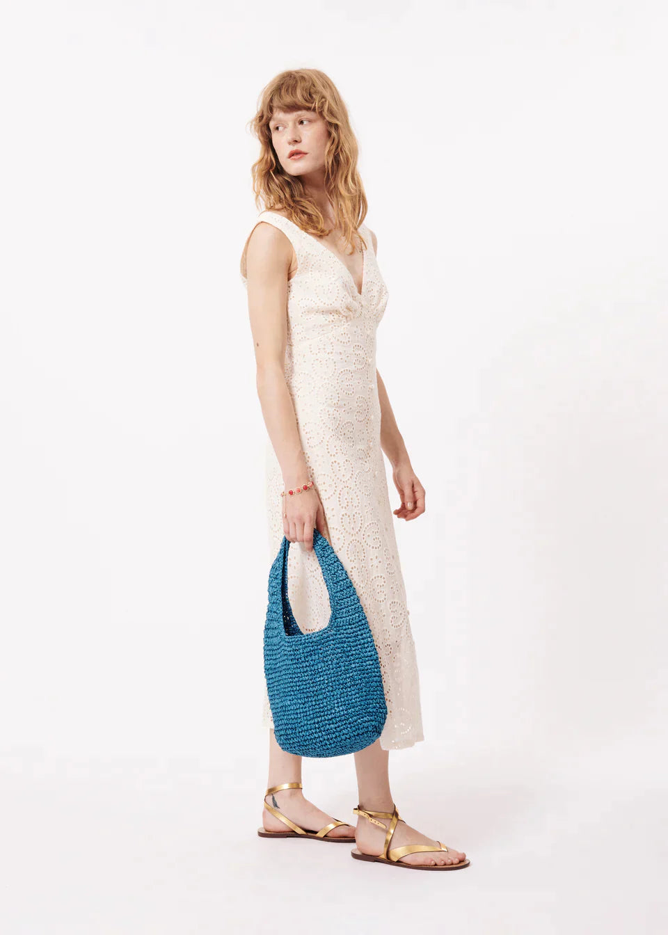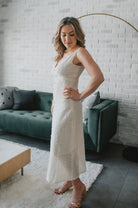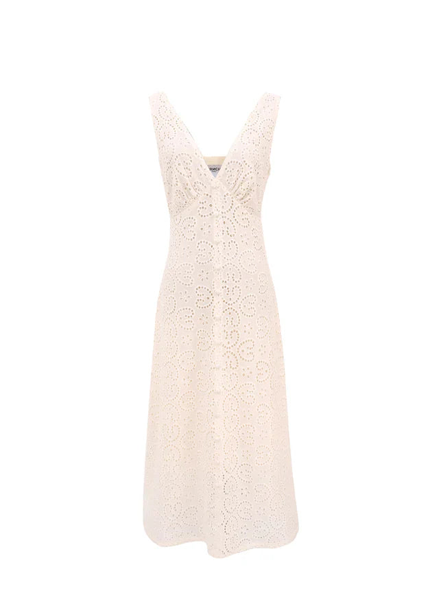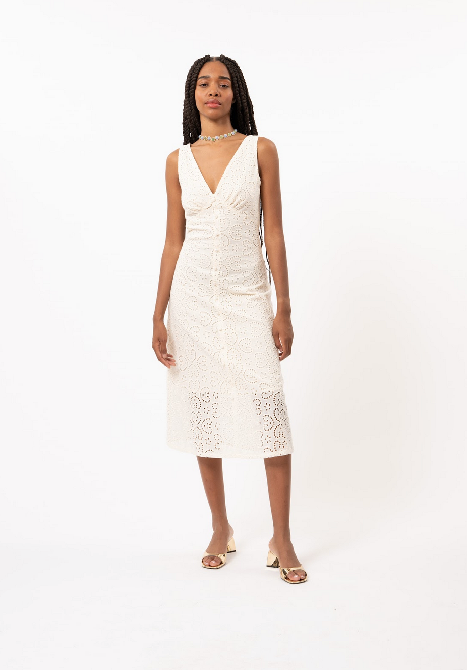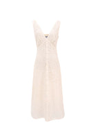 Do you have a spring or summer event and are aiming for a dress that will leave a lasting impression? Look no further than the Crista dress, perfect for such occasions. With its sleeveless design, mid-length cut, and a V-neckline, this dress offers a slim fit and a touch of elegance. The transparency at the bottom adds an extra element of sophistication, making it an ideal choice for a stylish and memorable look. Additionally, the dress comes with a lining for added comfort and confidence.