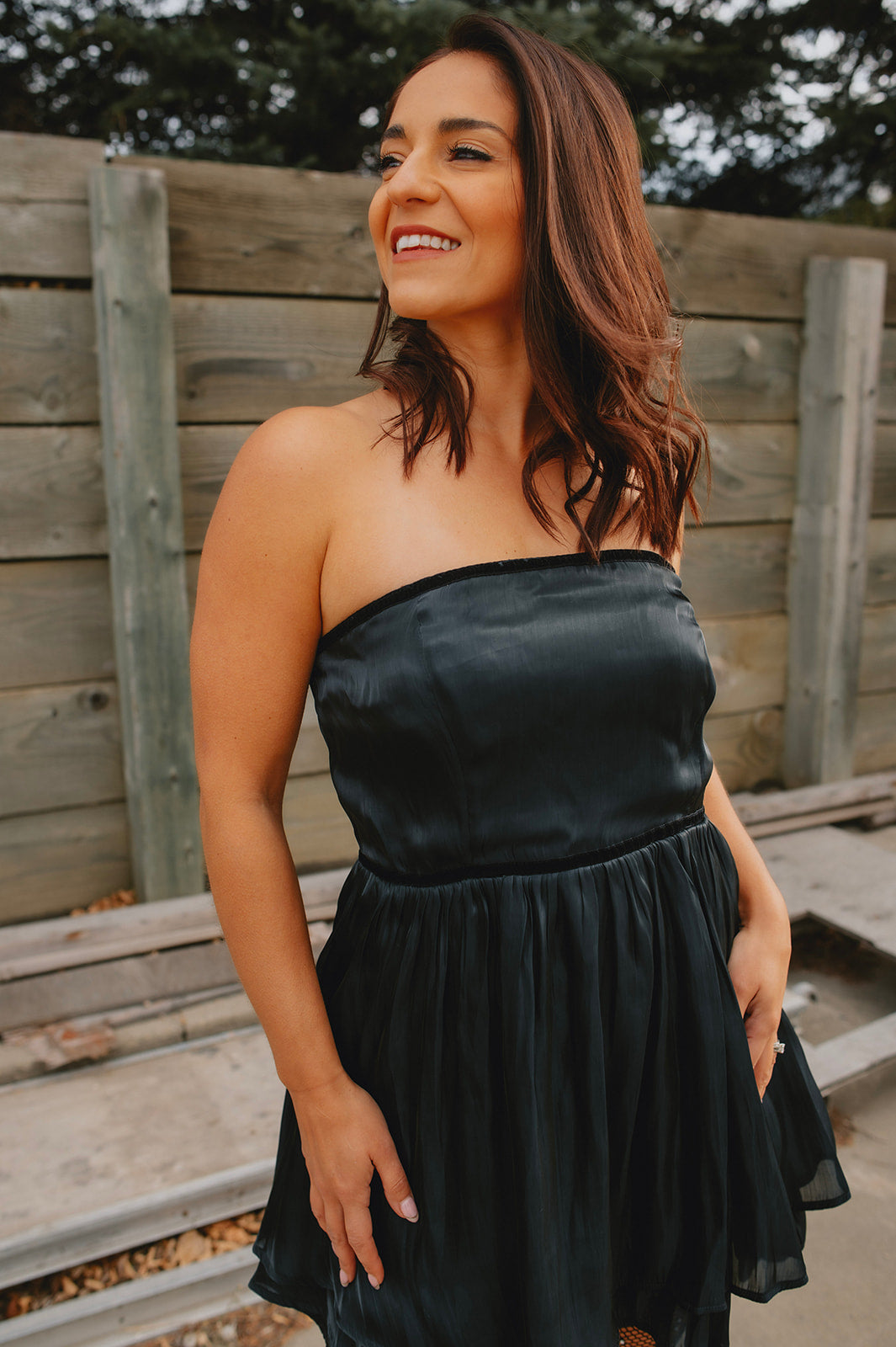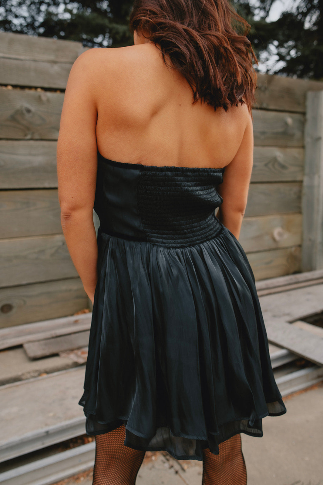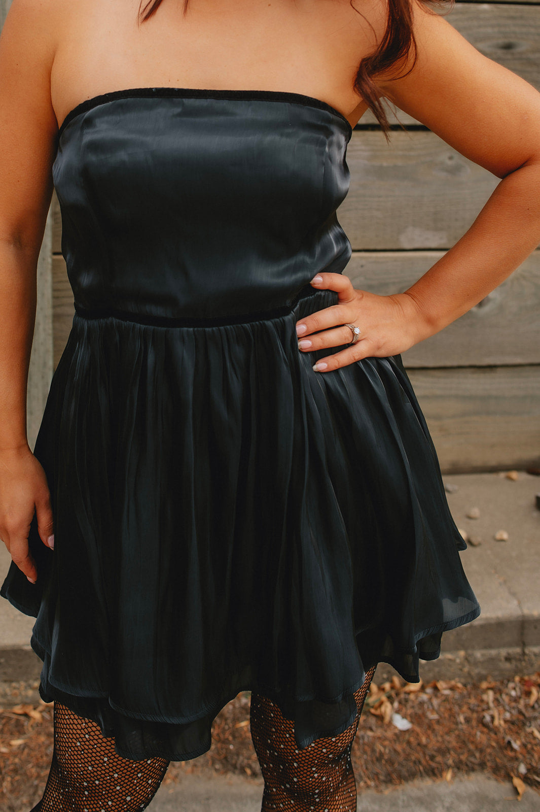 - Lightweight sateen fabric with velvet waistband trim