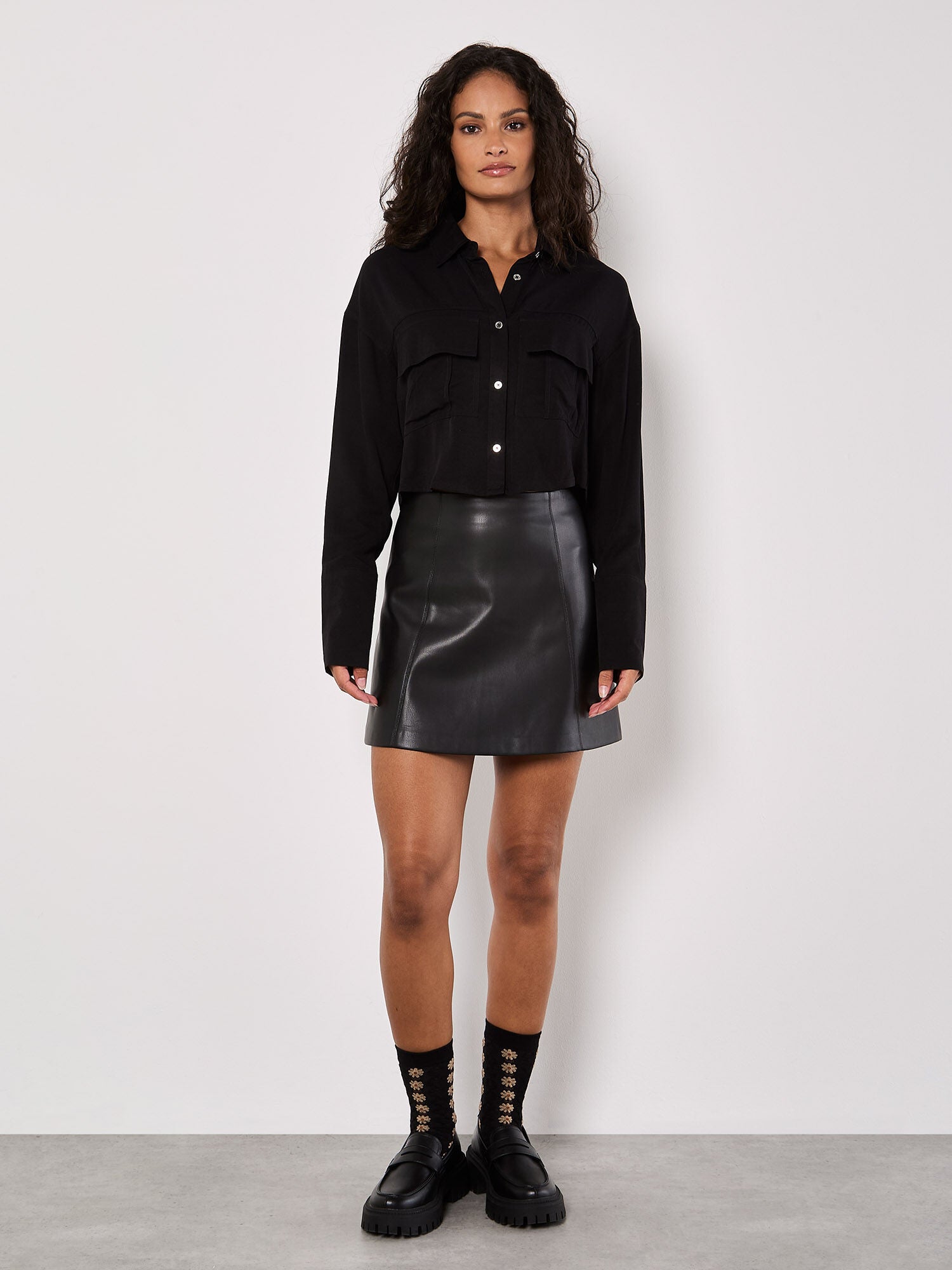 Versatile and easy to style, this faux leather skirt is the perfect pick for date night. Lined for comfort, it features a zip fastening through the reverse. Complete the look with a lightweight knit and heeled boots.