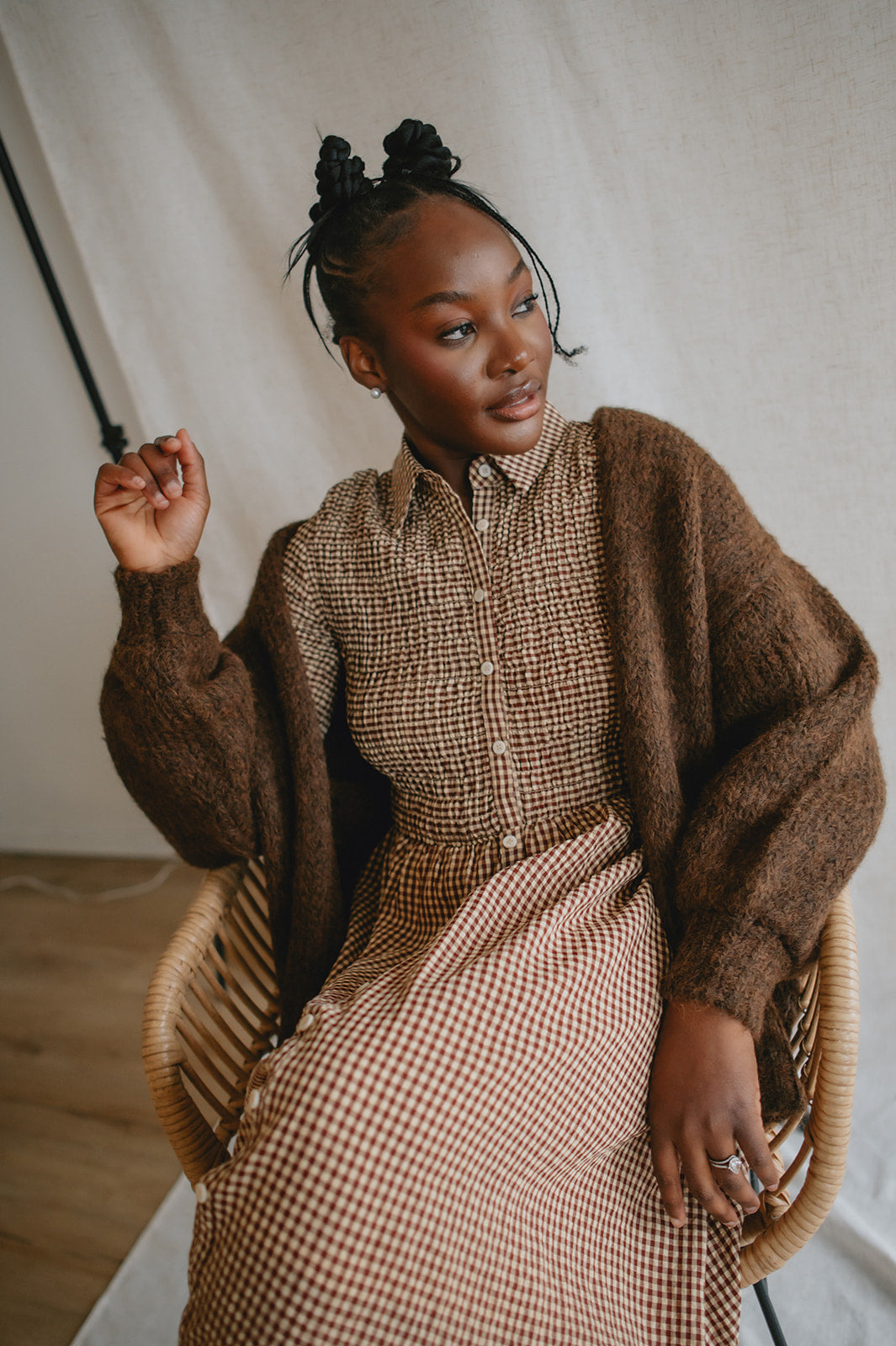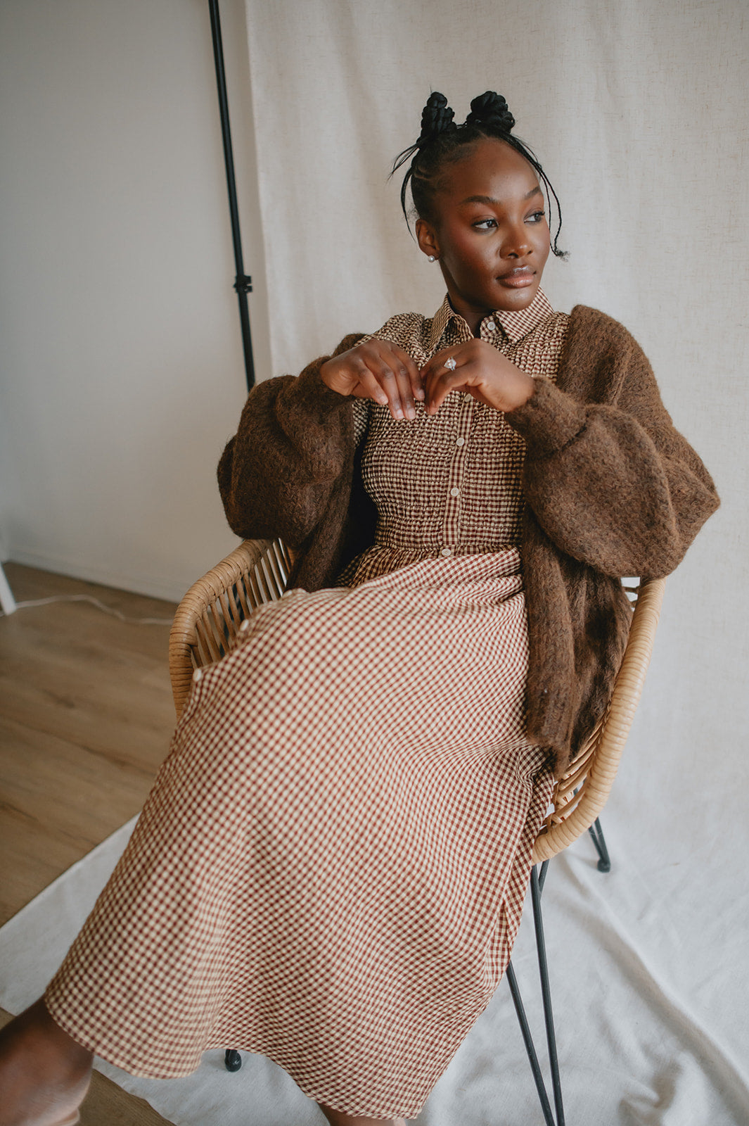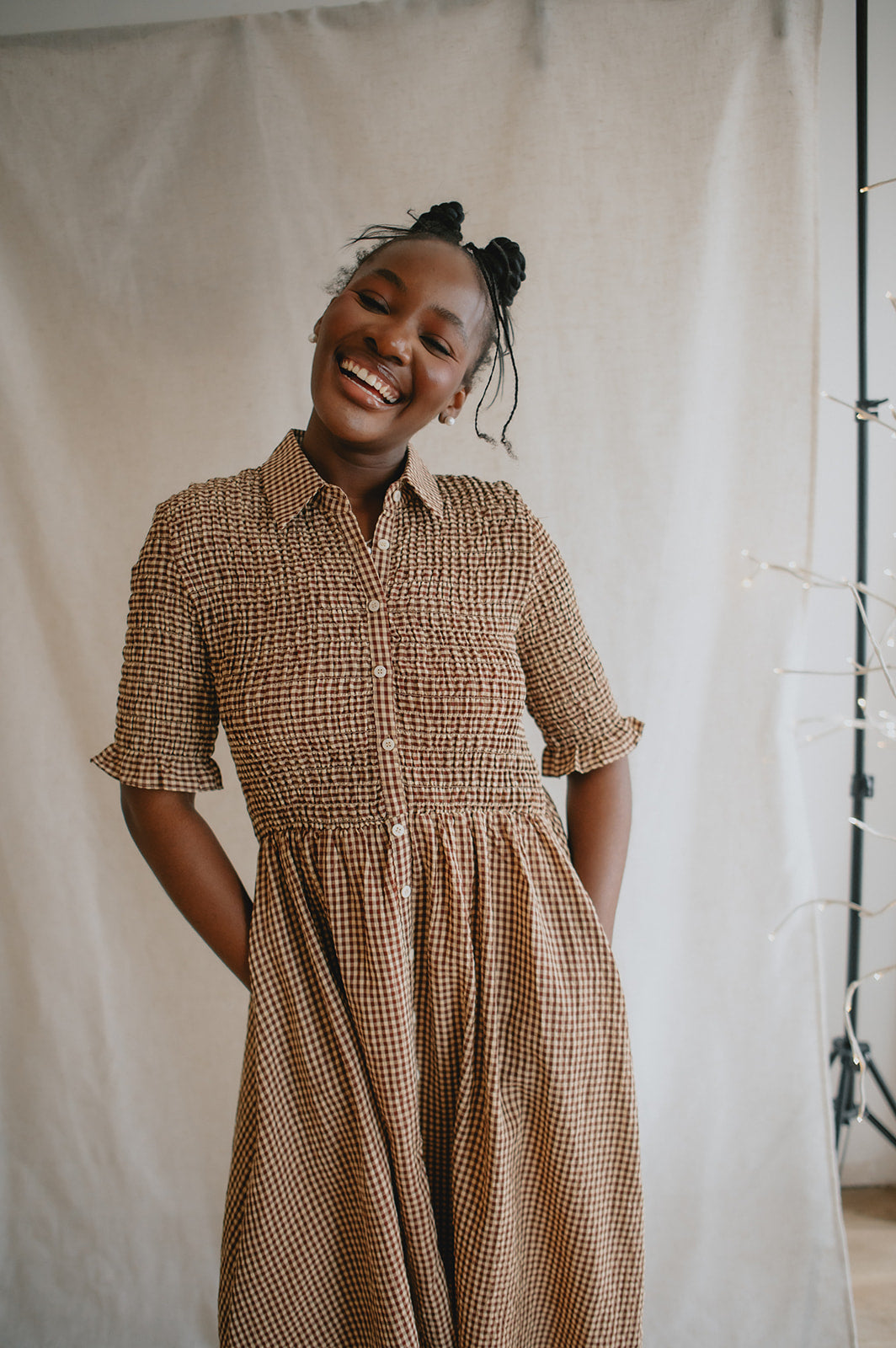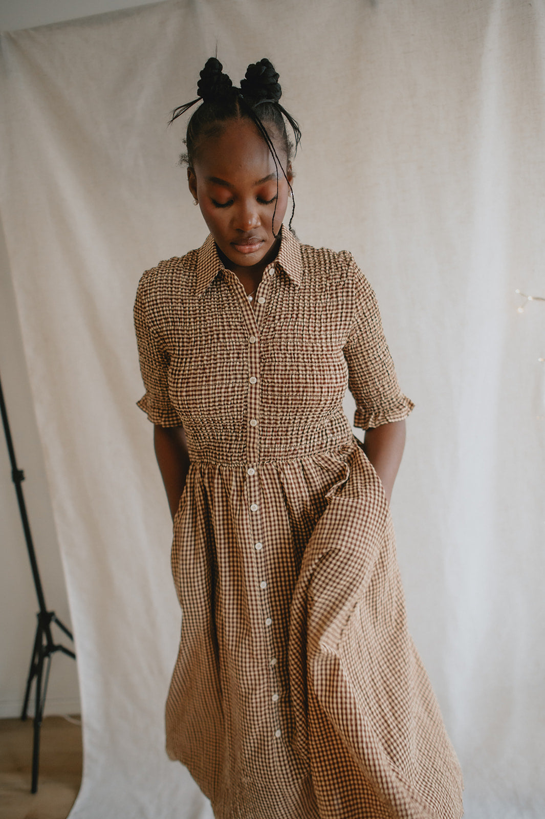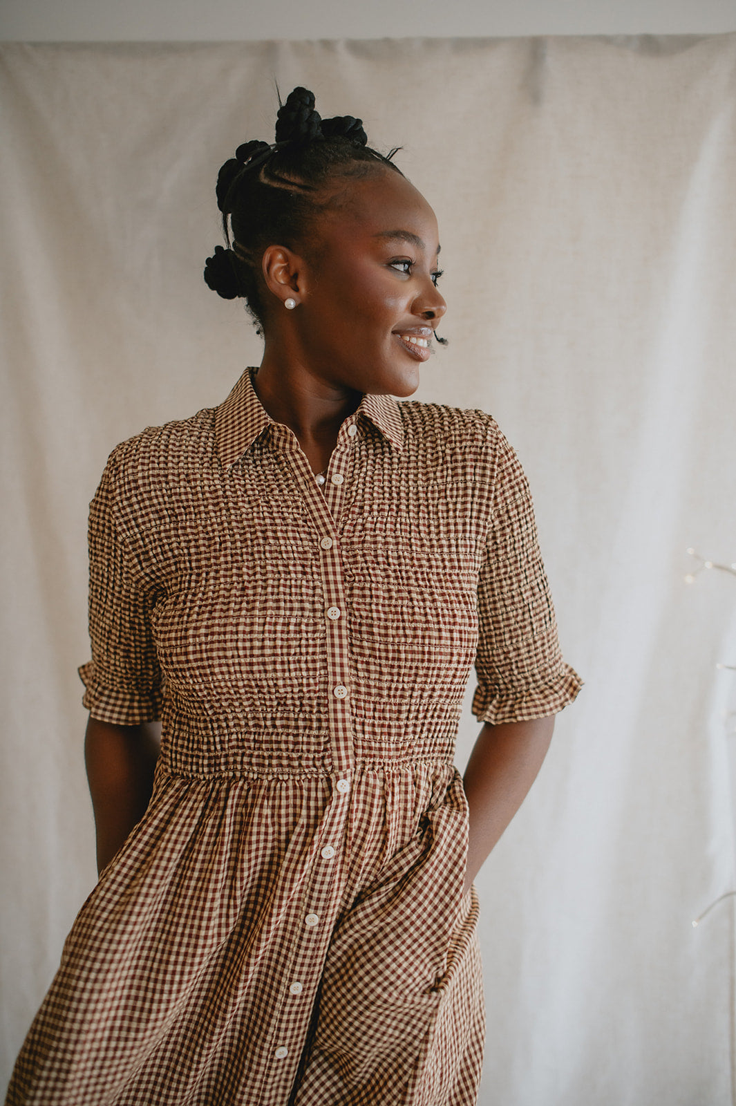 The Heritage Button Up Midi Dress - Chestnut Gingham