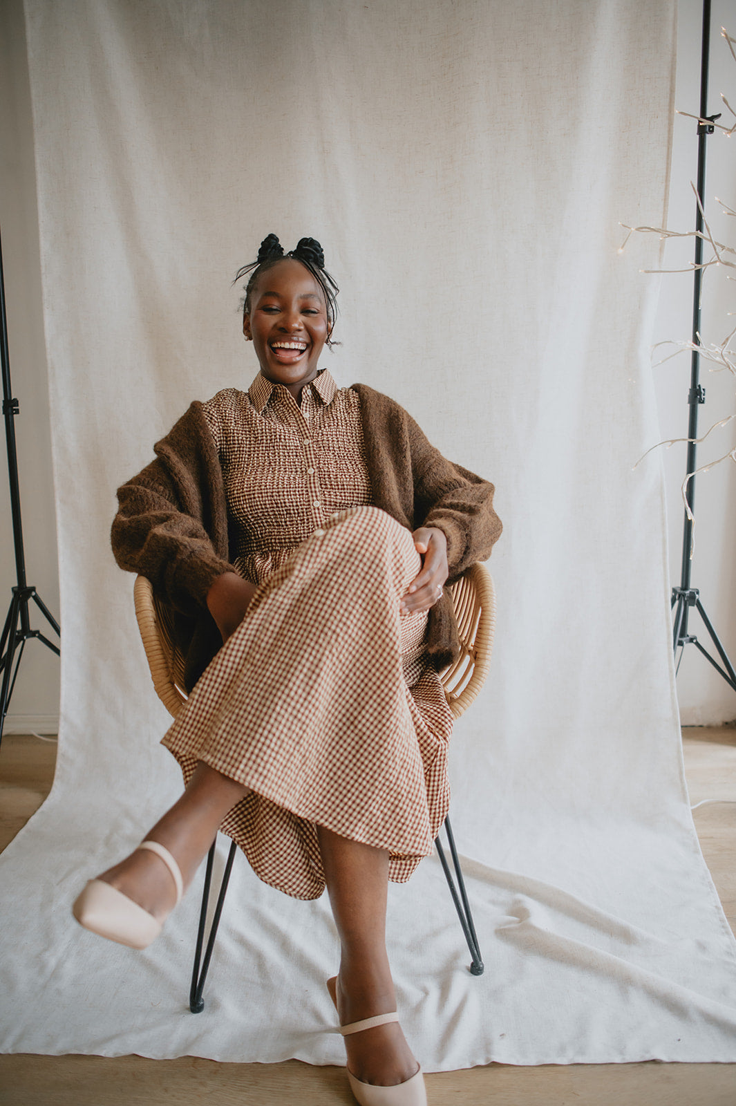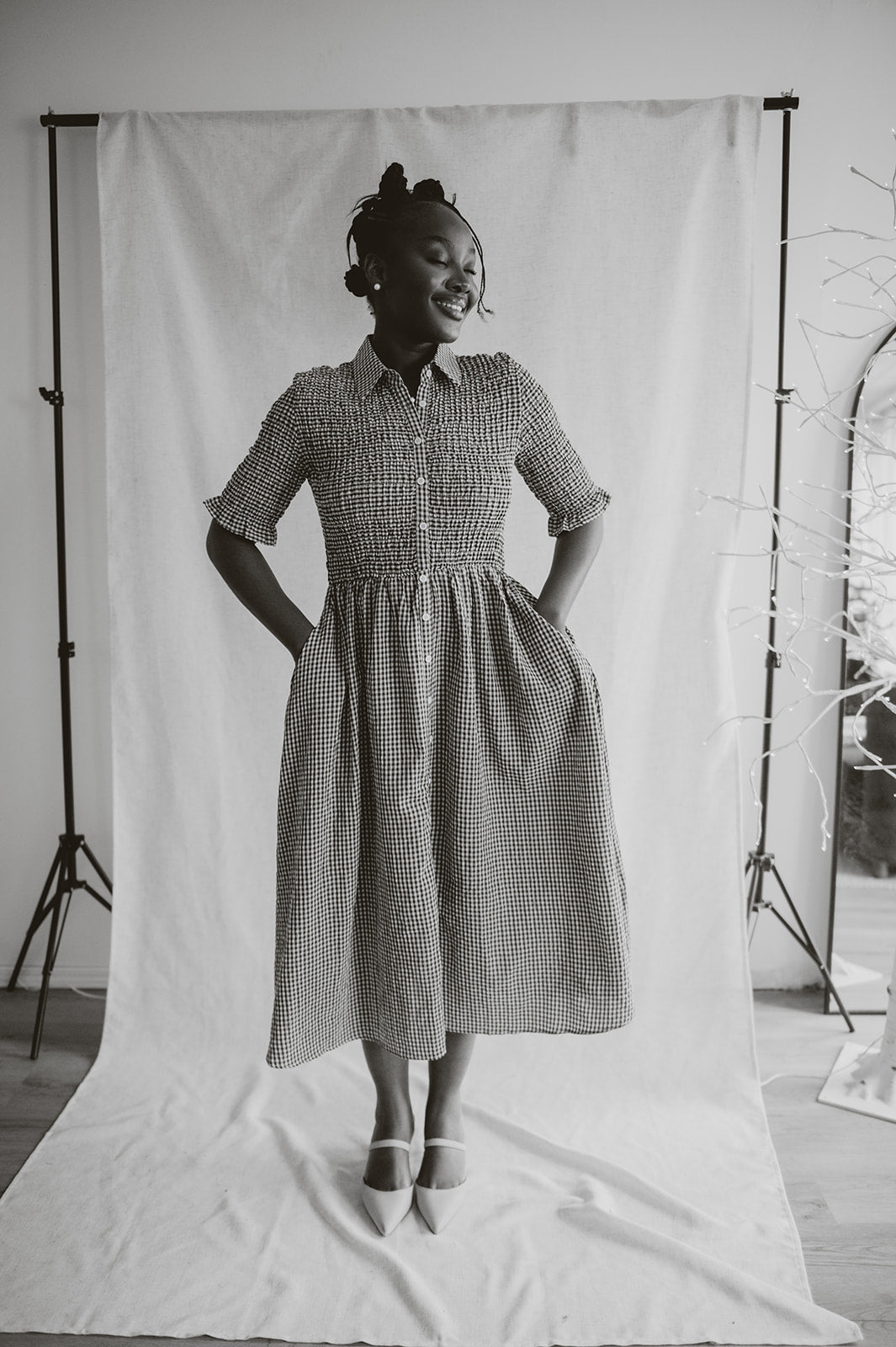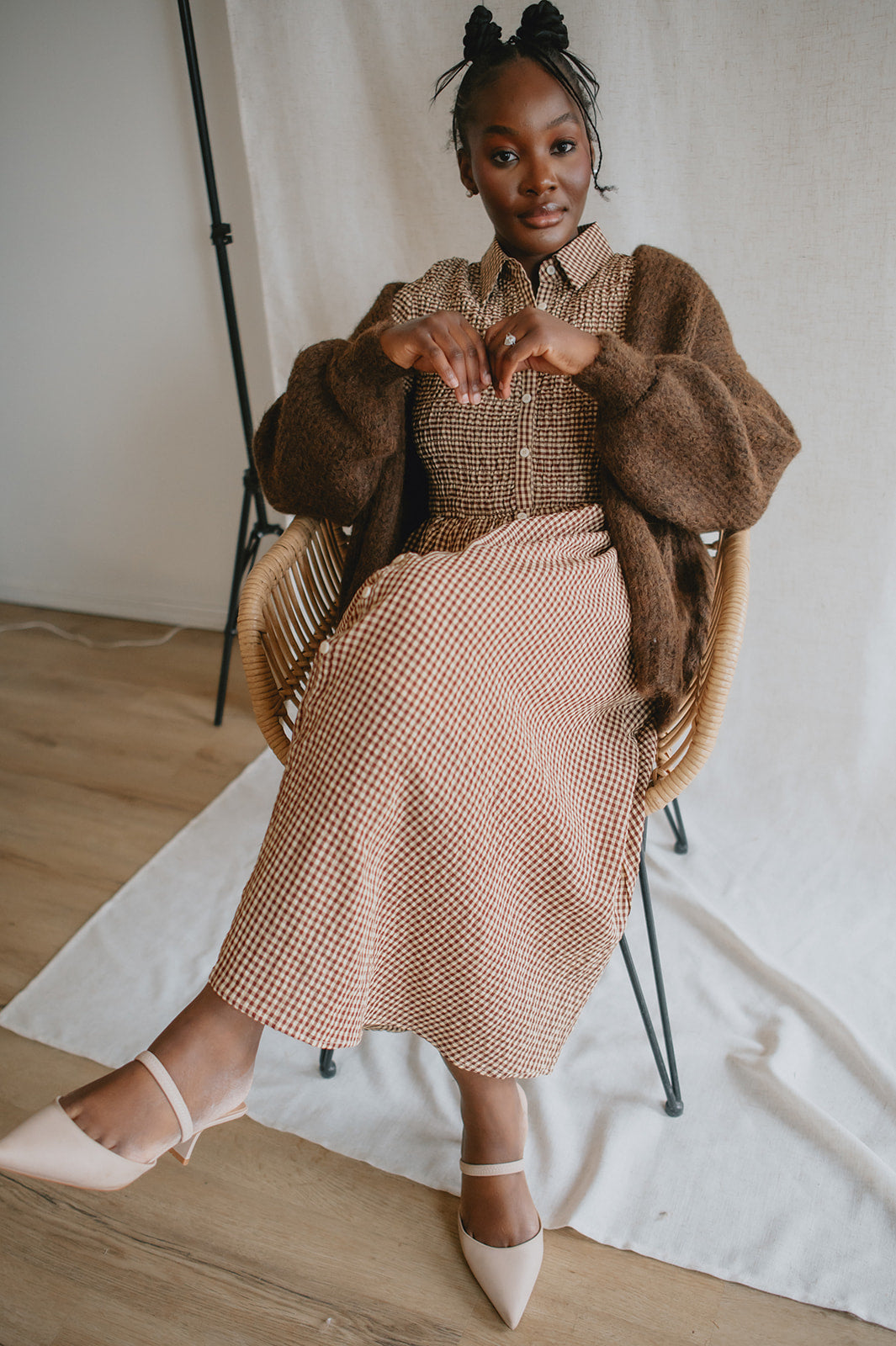 Elevate your everyday style with the Heritage Button-Up Midi Dress, a charming blend of timeless design and modern comfort. Crafted in a warm brown and tan gingham check, this dress features a flattering smocked bodice that offers a snug, flexible fit. The collared neckline adds a classic touch, while the button-down front brings ease and versatility to your wardrobe.