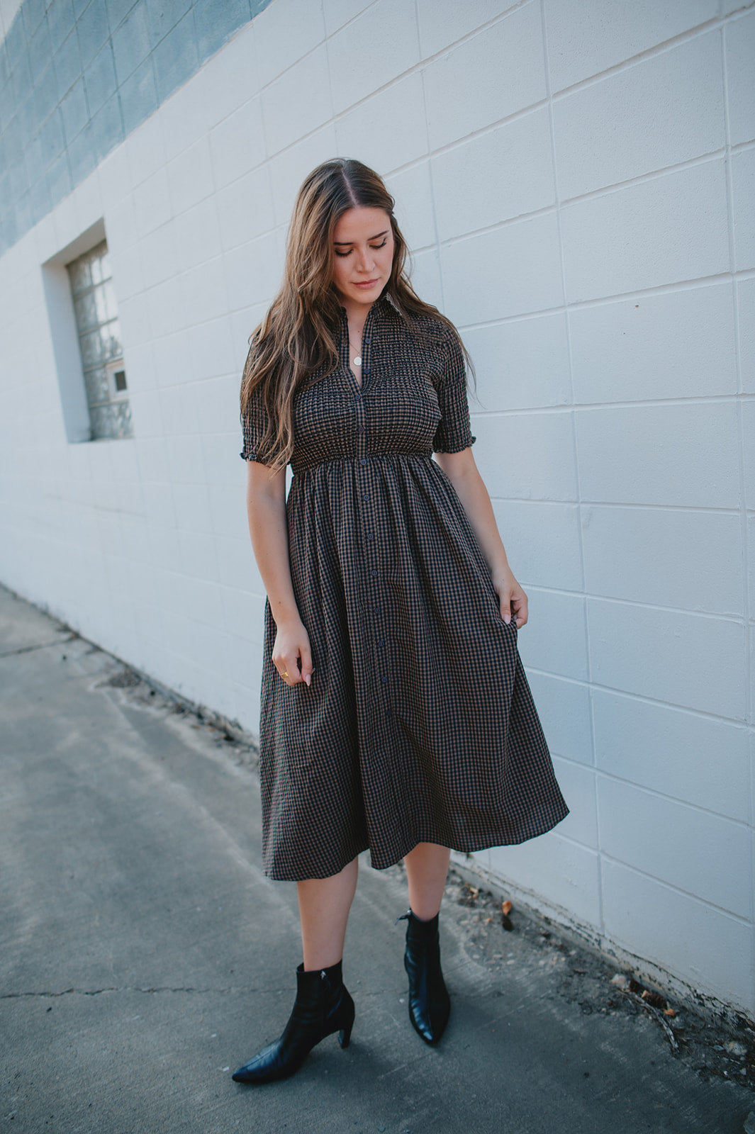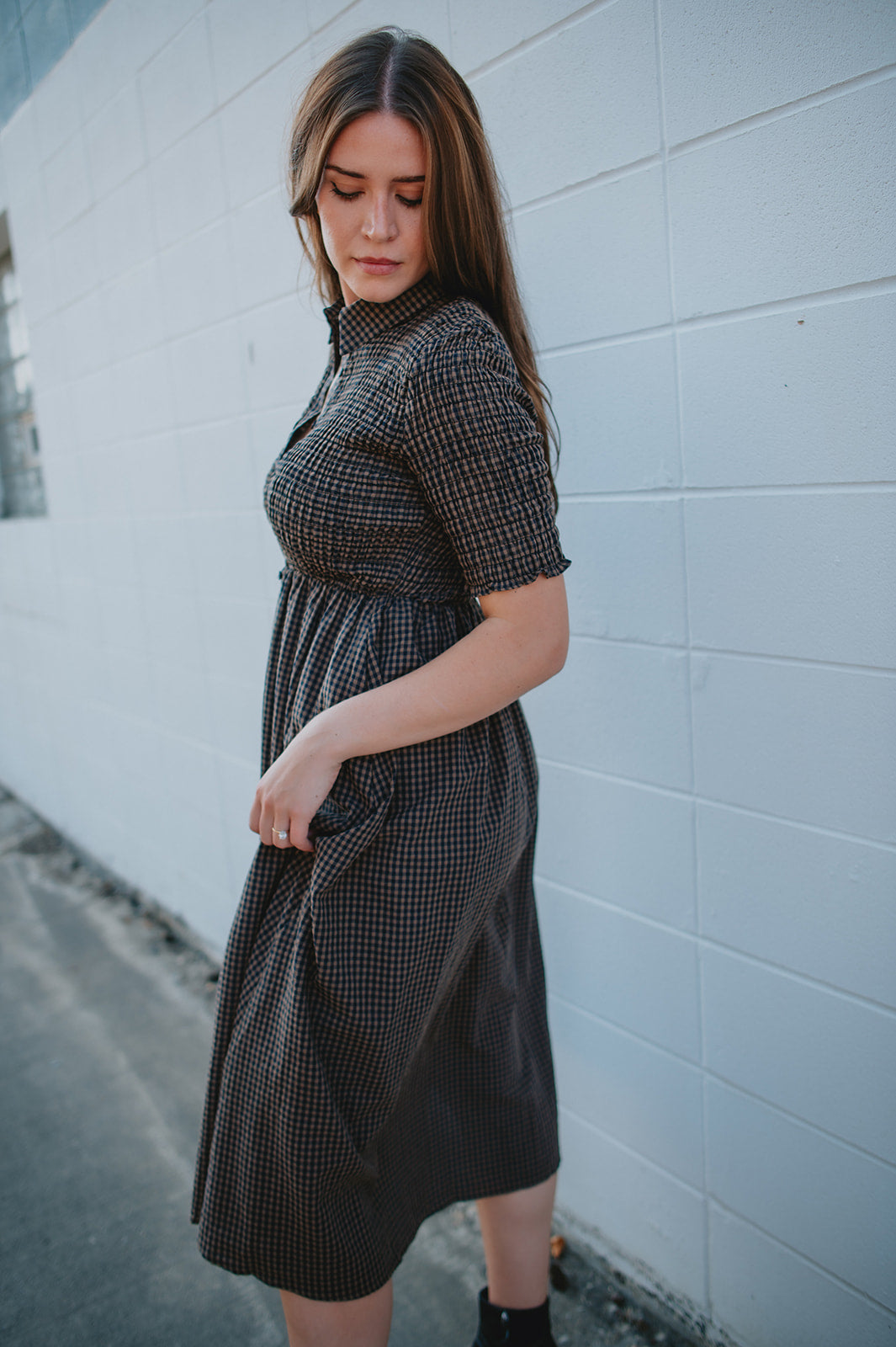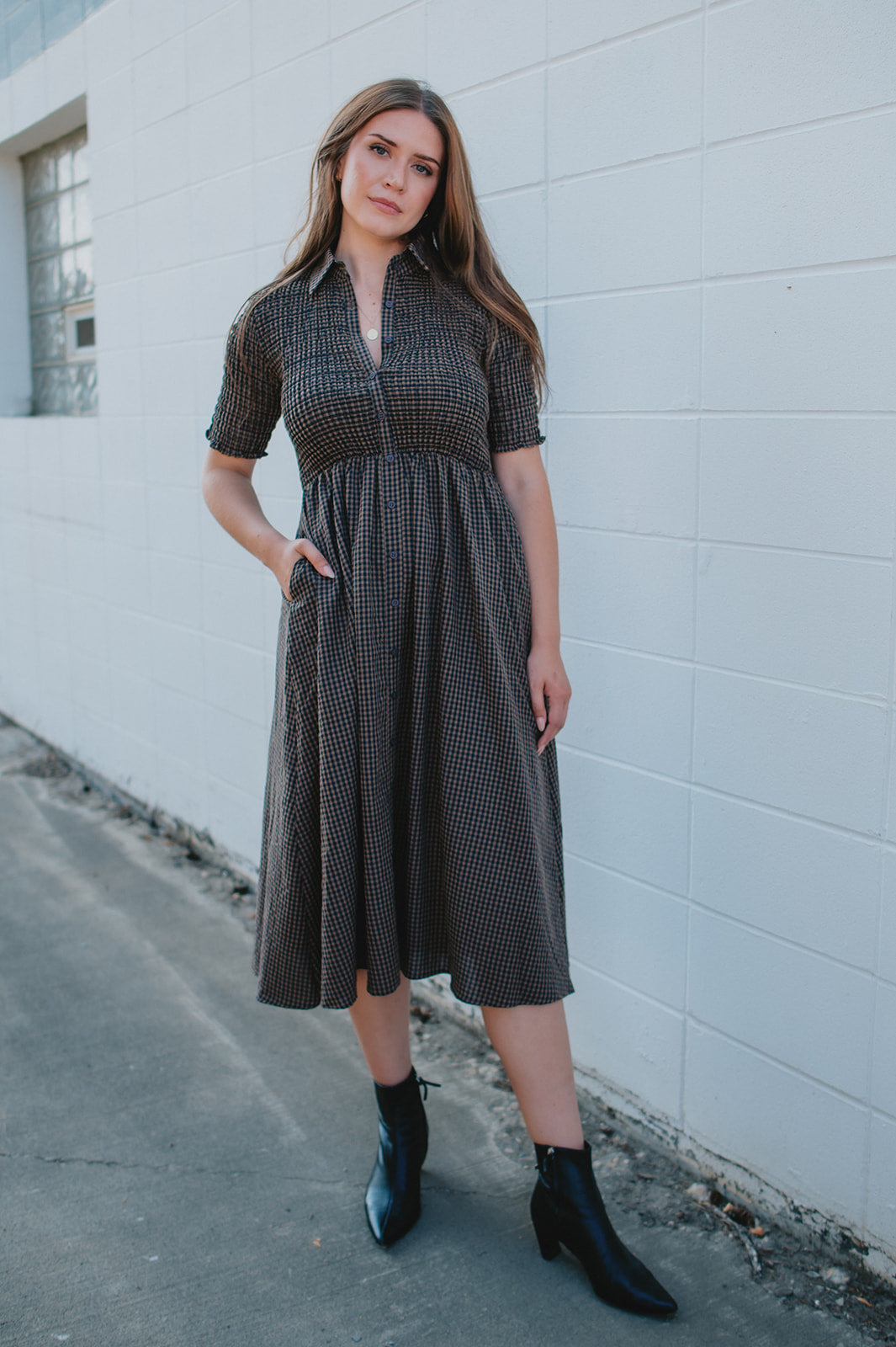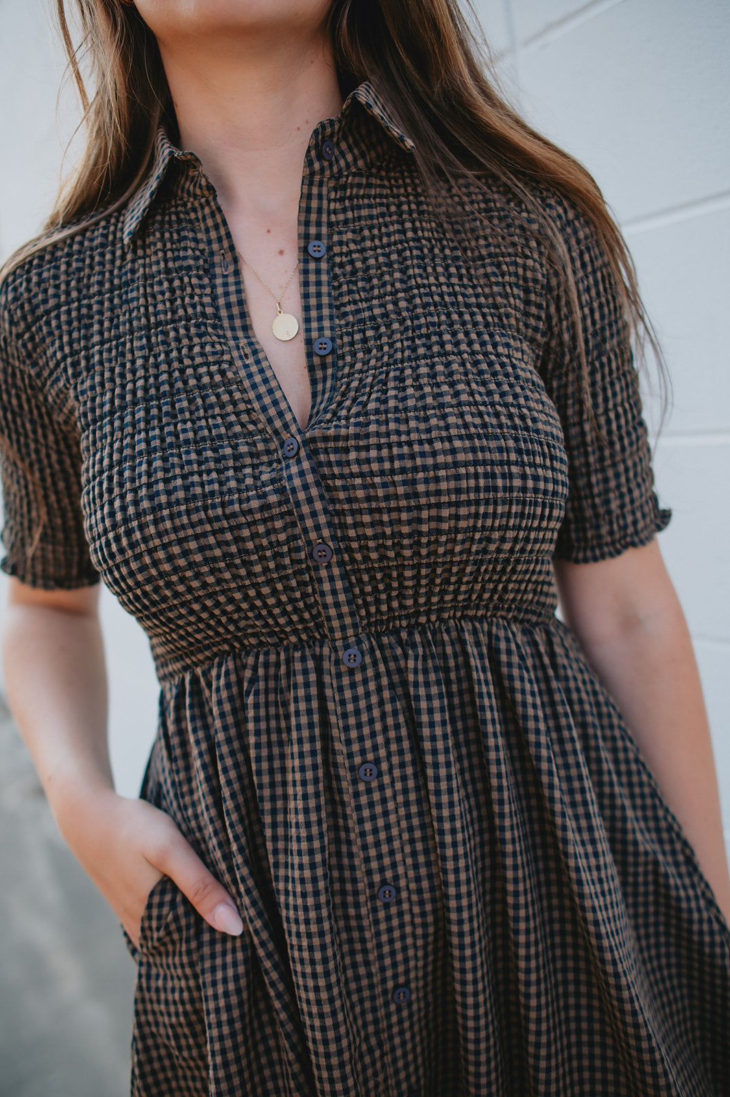 The Heritage Button Up Midi Dress - Mocha Gingham