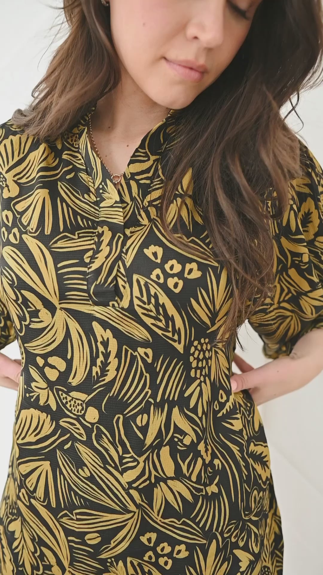 Ready, set, jet with this tropical printed shirtdress, perfect for your next holiday getaway! The fit of this dress is easy and flowy while the cut and details keep things classy. It's a great balance of casual and chic! Throw on as a cover up or wear her out for patio drinks!