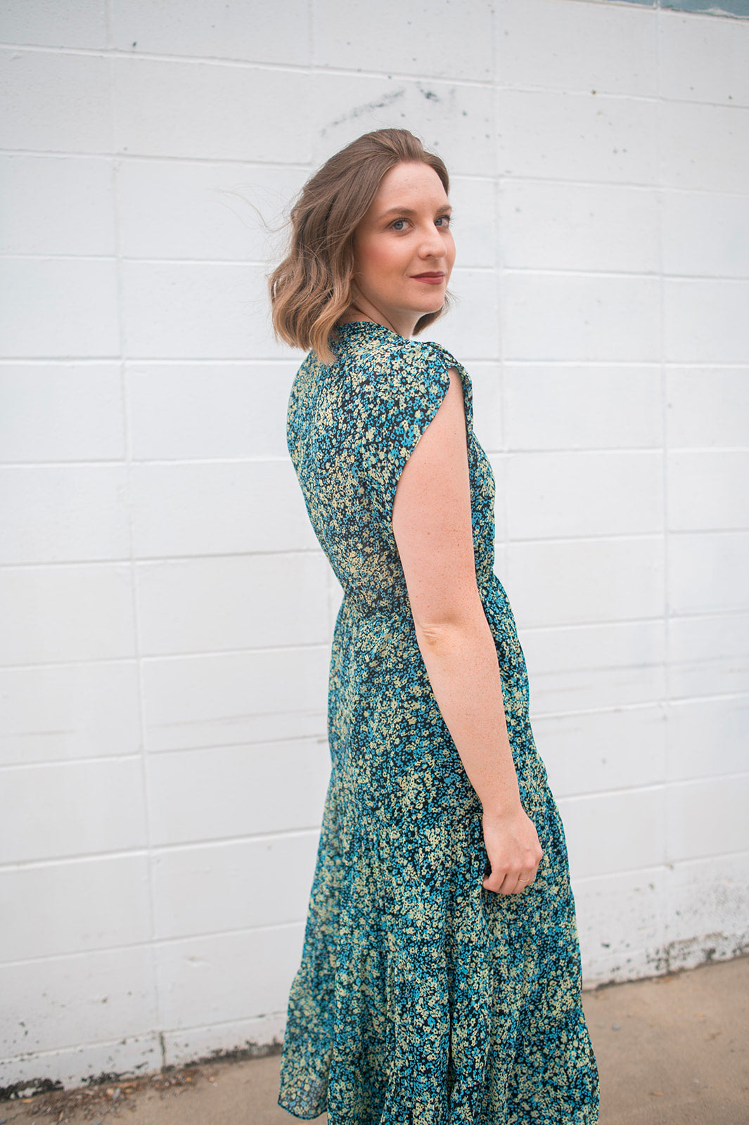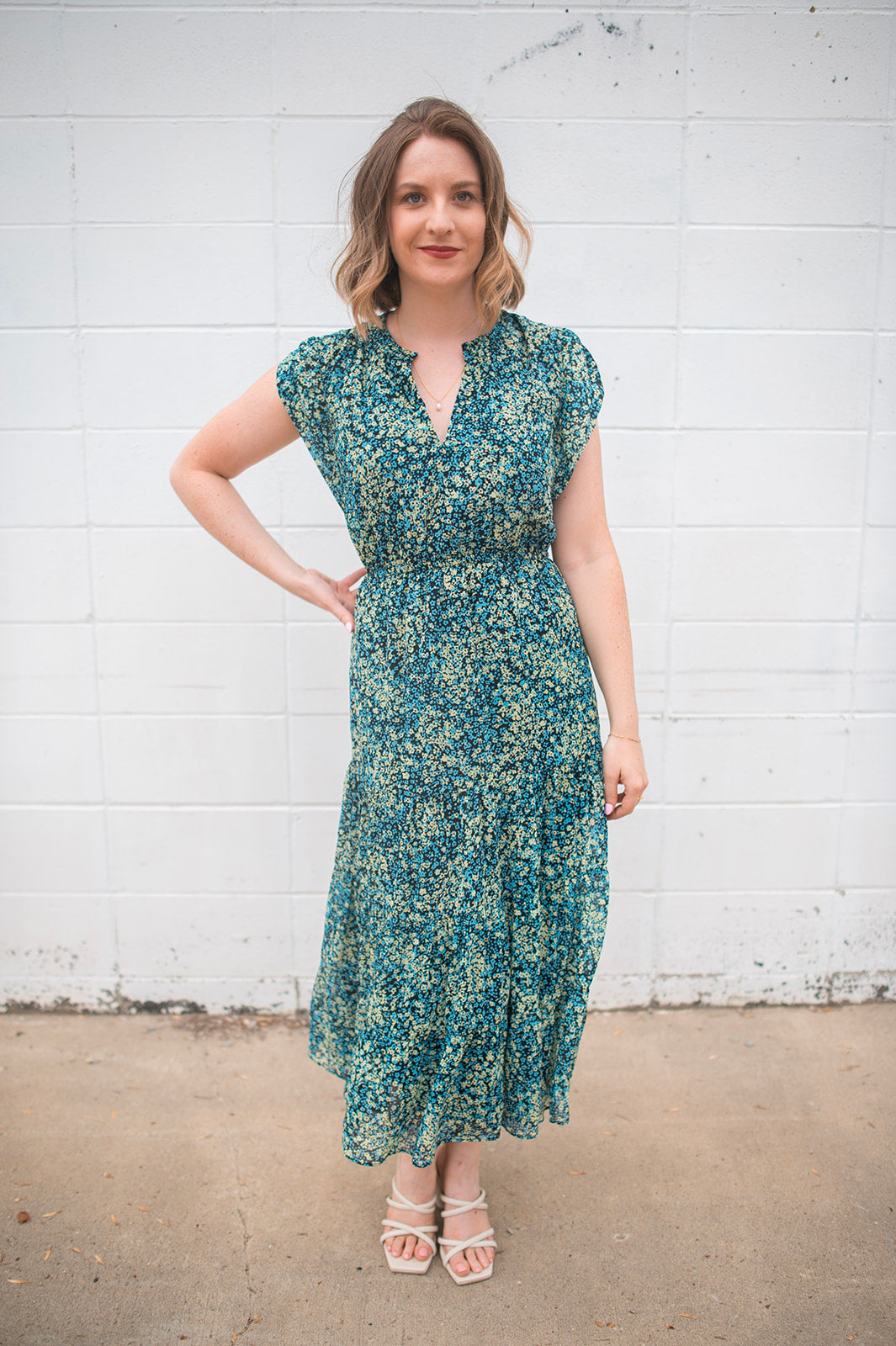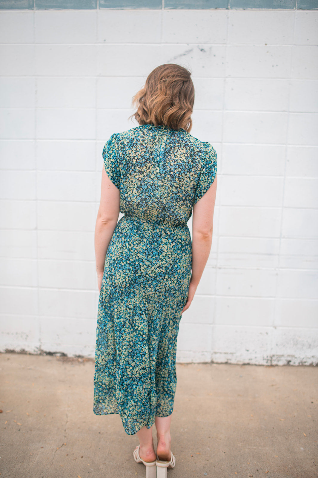 An allover ditsy floral print adds charming style to this flowy midi dress crafted from airy crinkle chiffon.