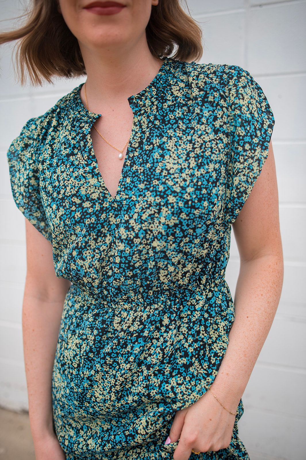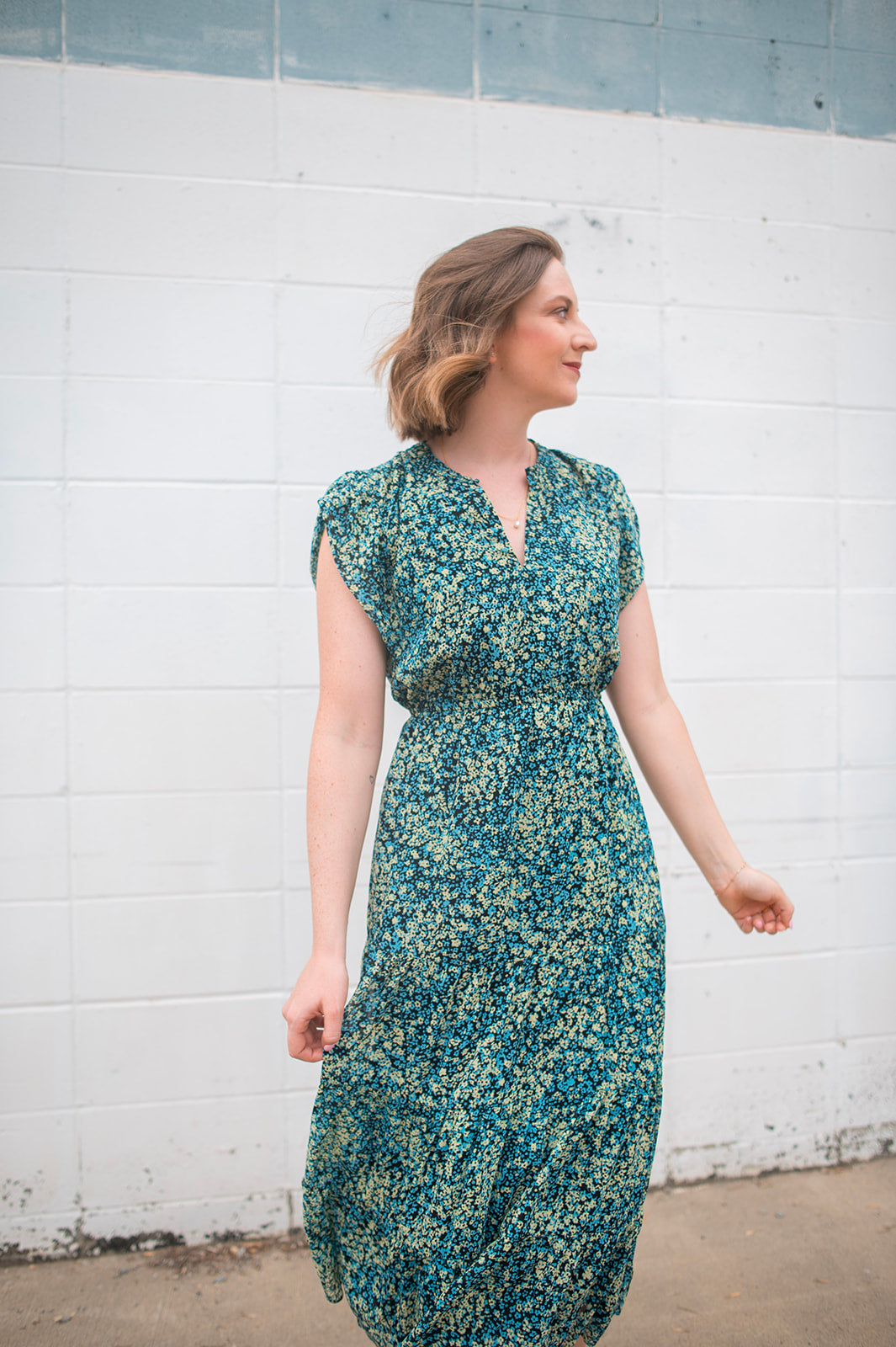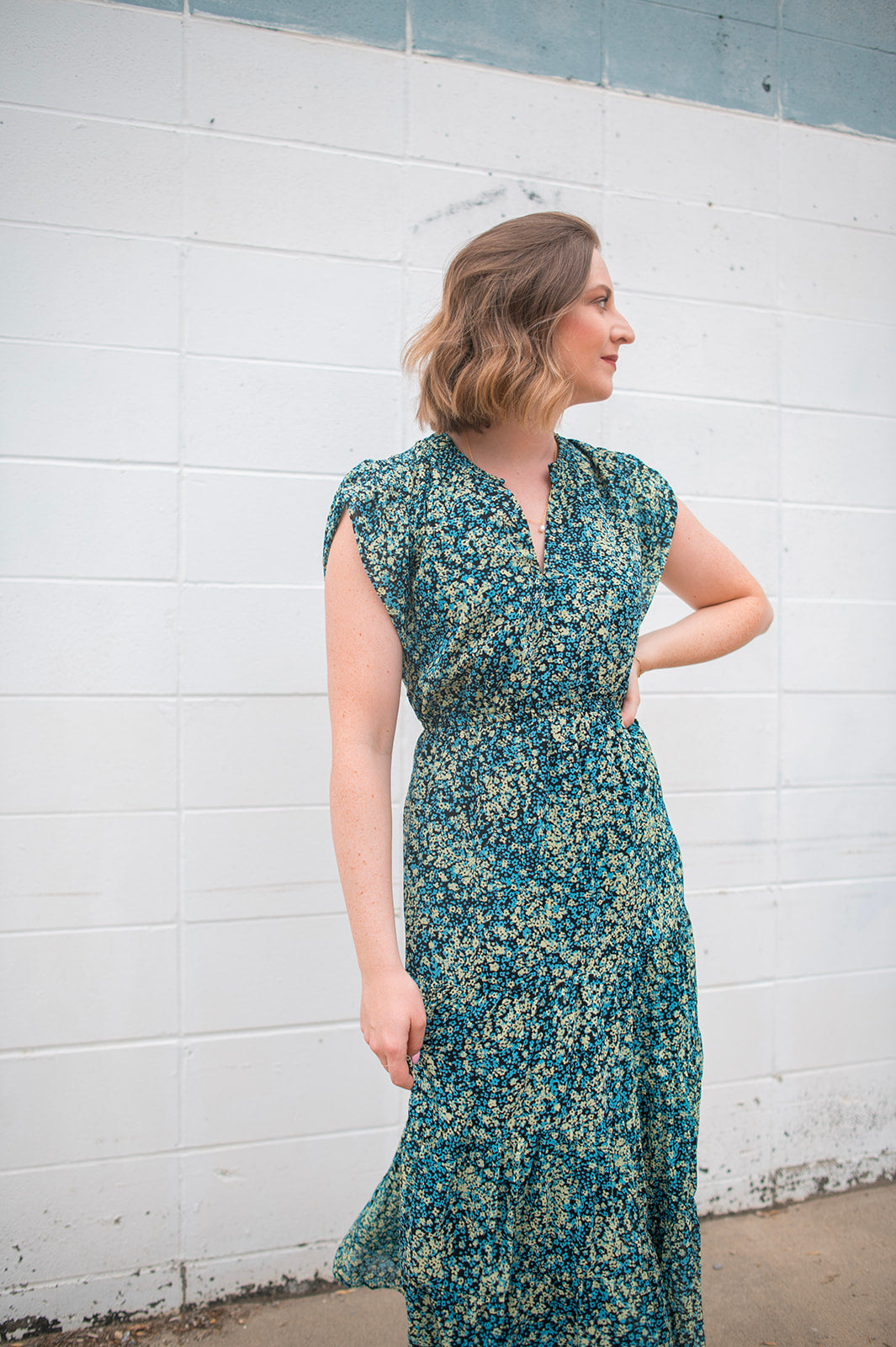 An allover ditsy floral print adds charming style to this flowy midi dress crafted from airy crinkle chiffon.