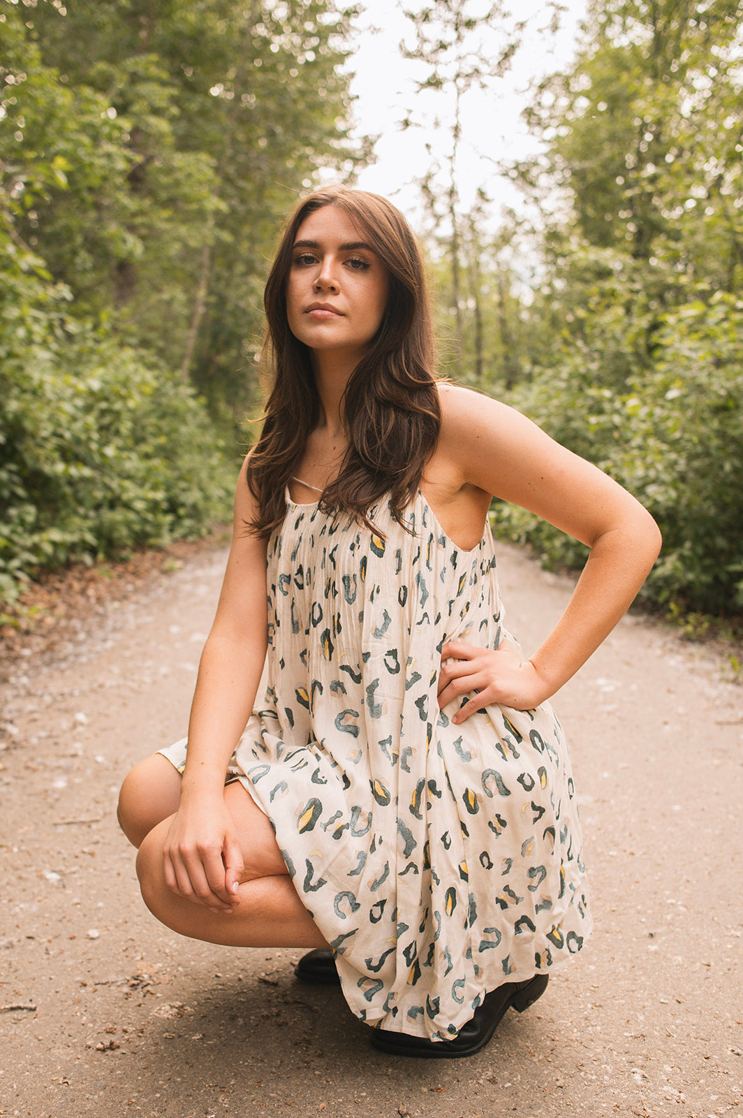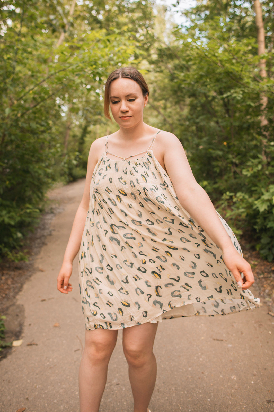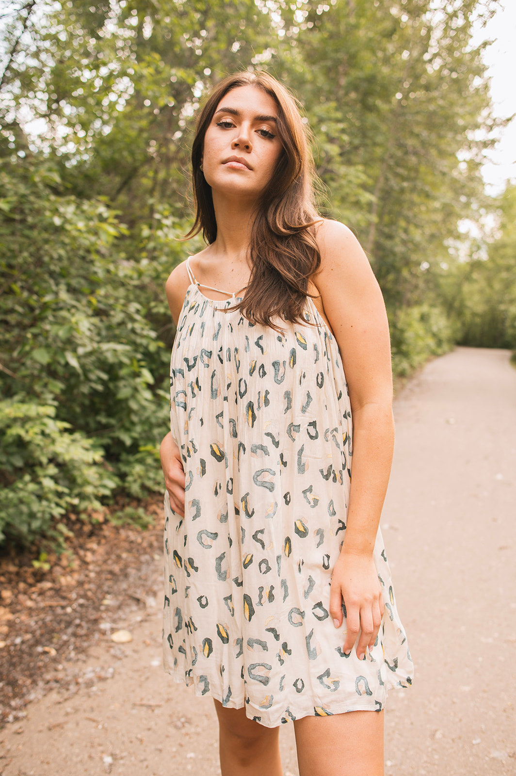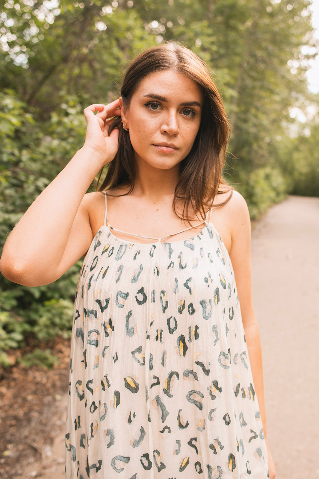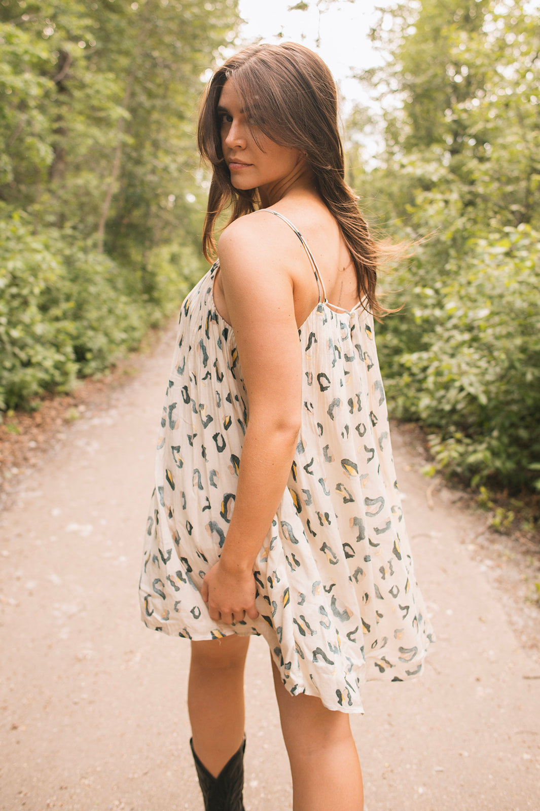 Take a walk on the wild side this summer with this mini! She's so flowy and perfect for those hot hot summer days. The neck detail and muted leopard print help her stand out from the crowd.