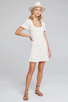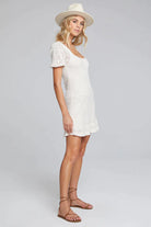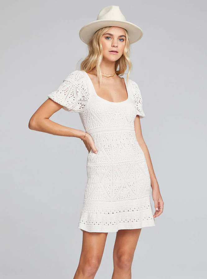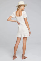 Stylish and sophisticated! Our Liza Mini Sweater Dress features short sleeves and a square neckline. Pair the soft piece with chunky sandals, and make your grand entrance! Off-white vanilla is always in season, so consider this a year-'round staple.