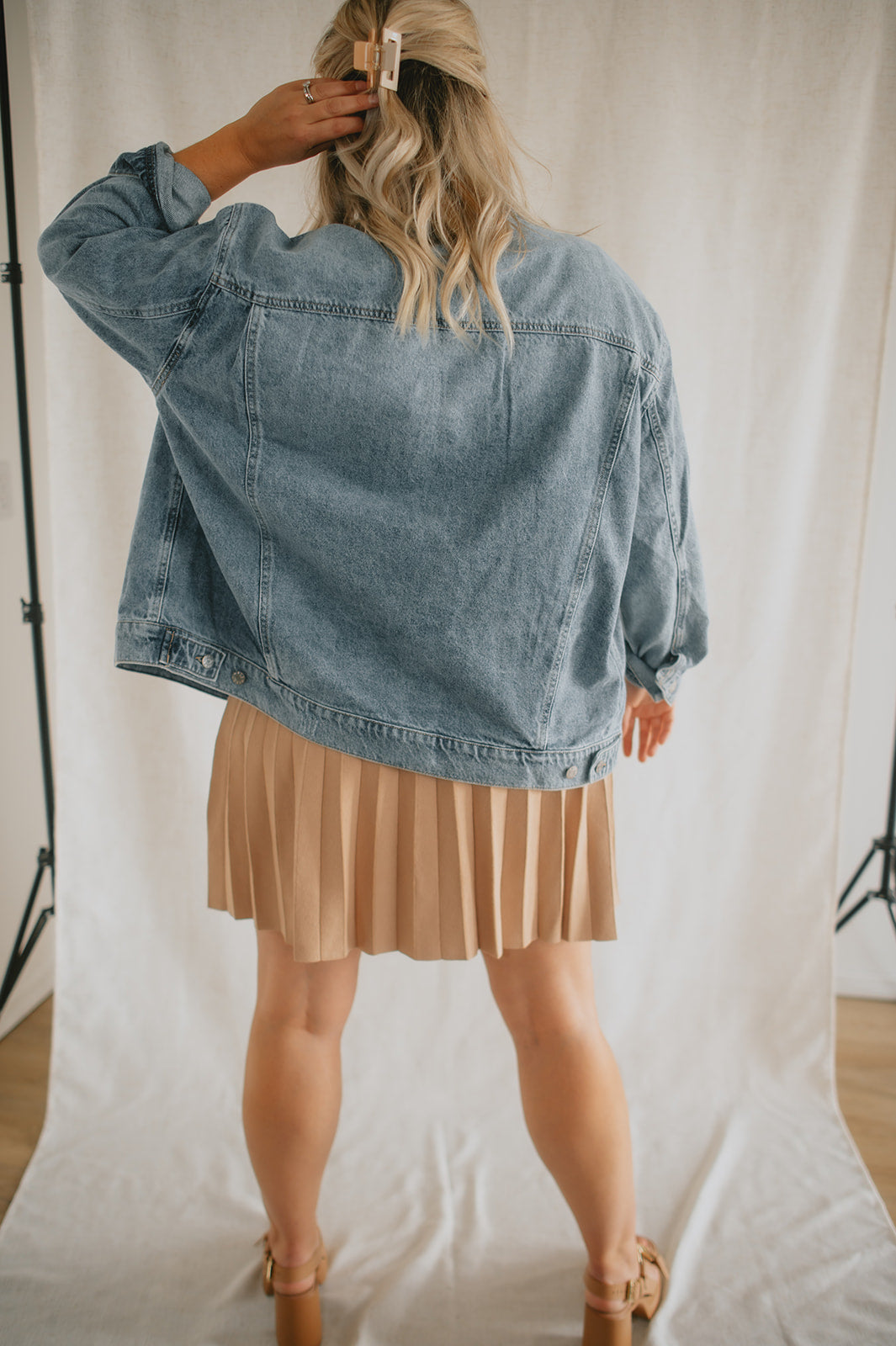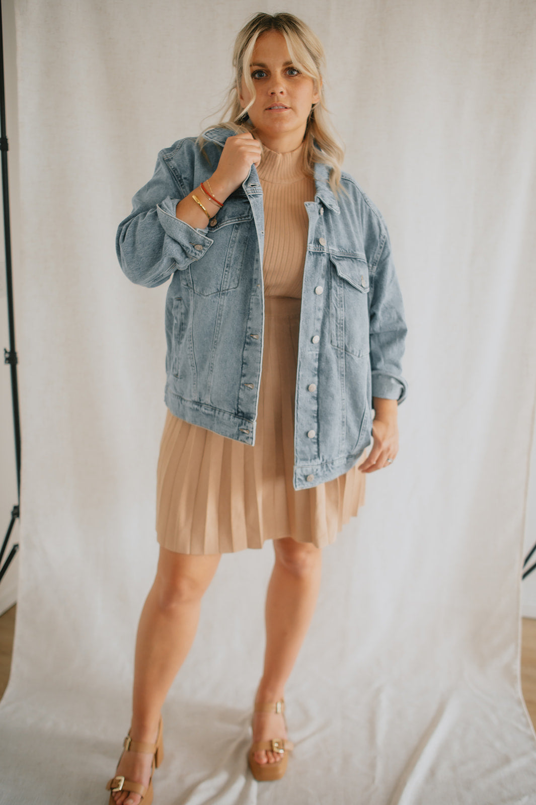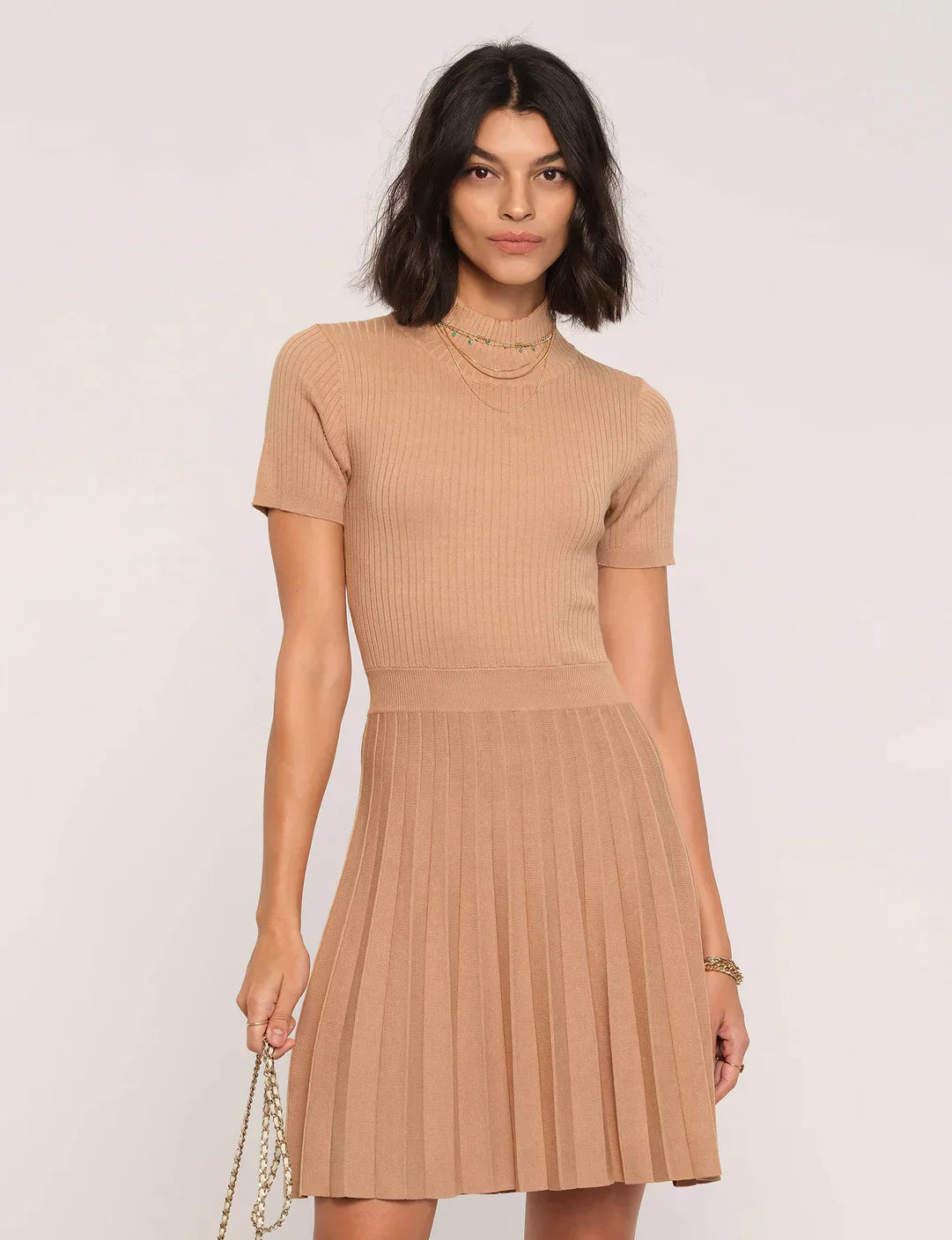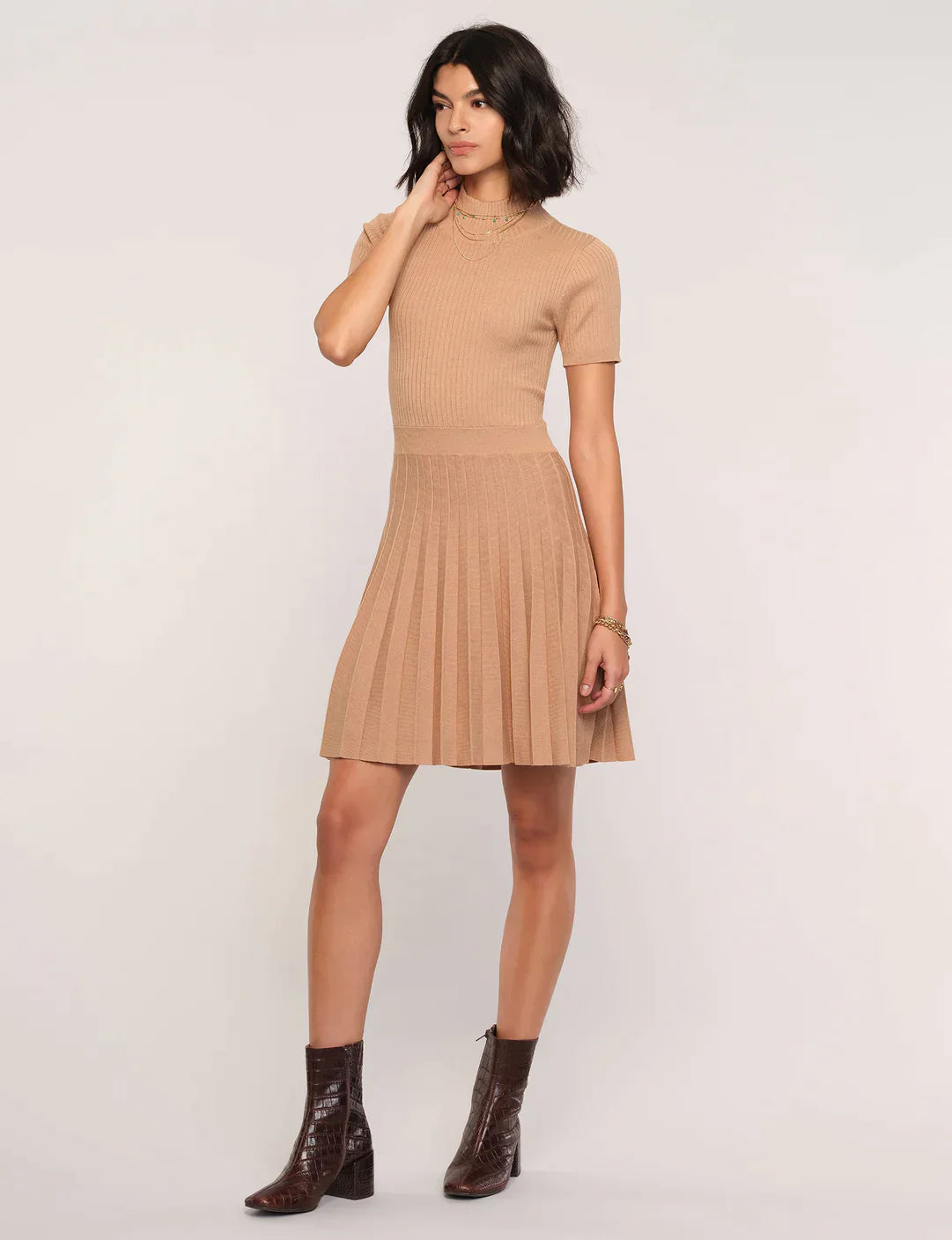 Effortlessly cool, the Luka Dress has a mock neck detail and a flirty pleated skirt. It has an easy A-line fit and is effortlessly flattering.