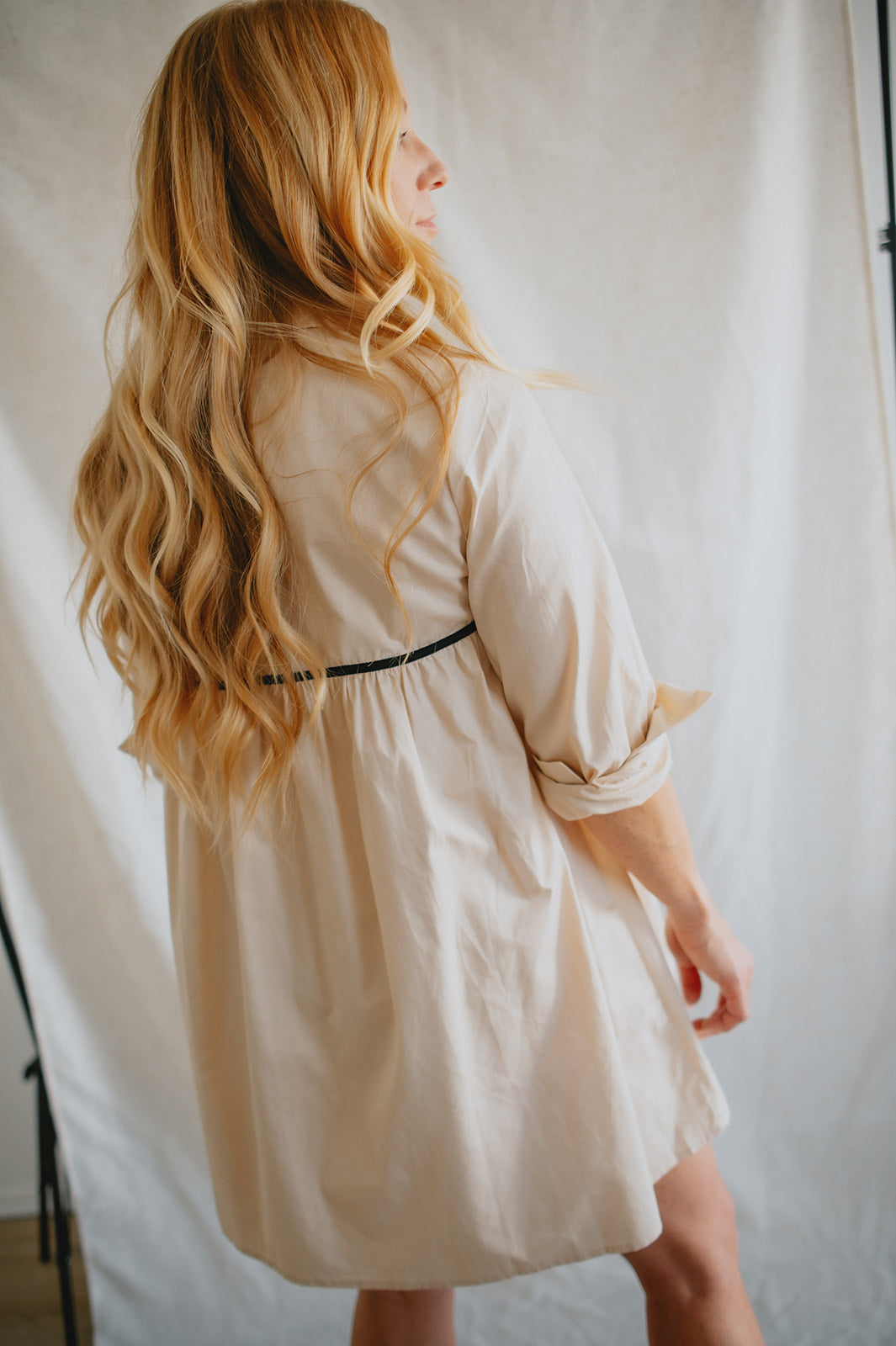 The Milah Contrast Bow Mini Shirtdress - Ivory
