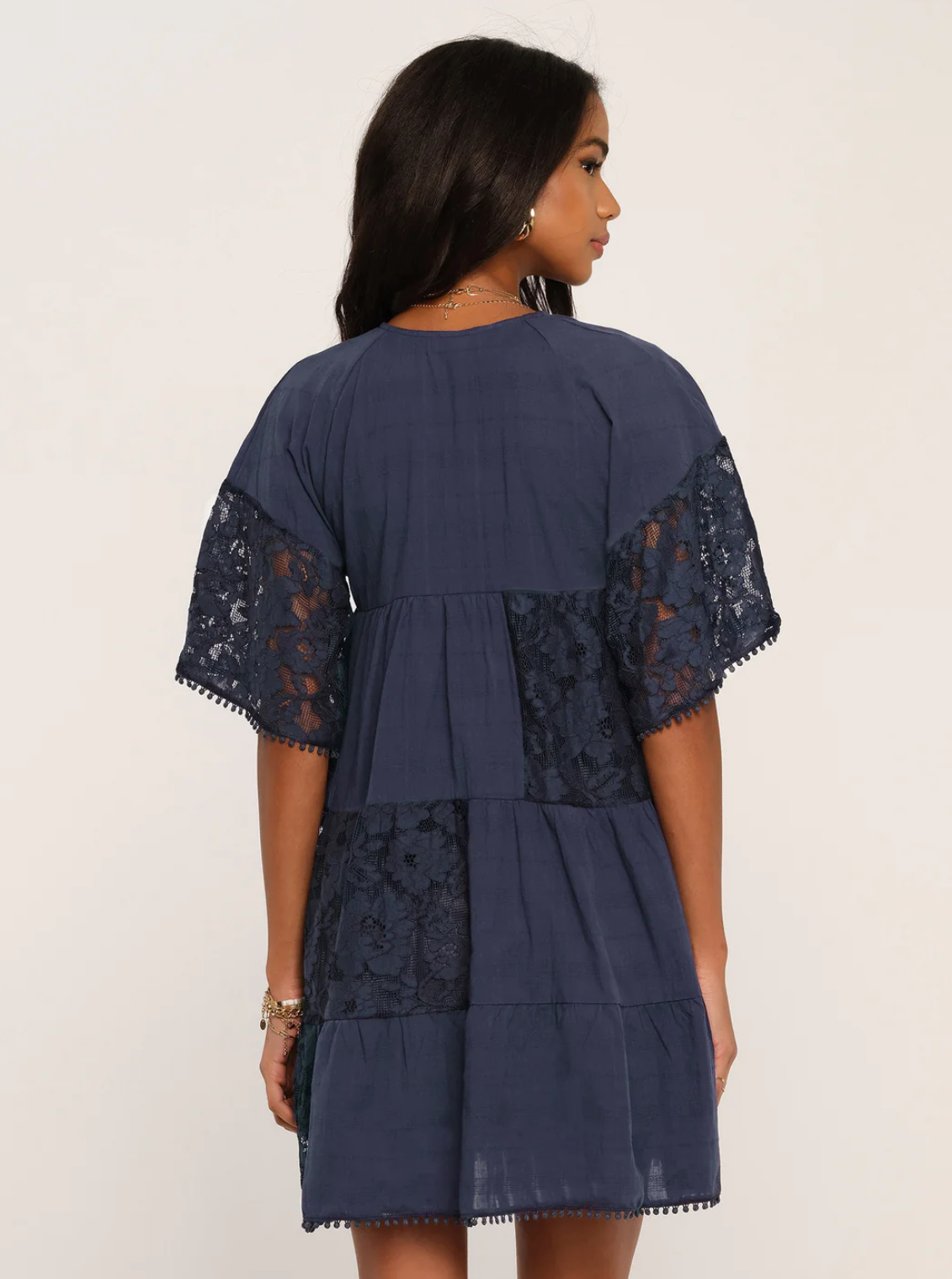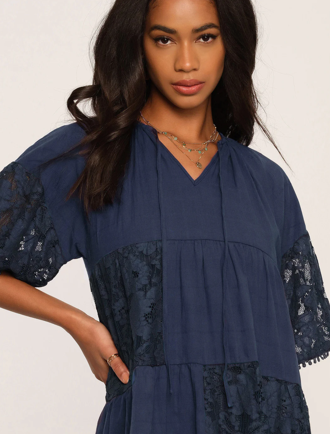 The Morocco Dress is effortless and airy. It's made of airy washed cotton with lace paneling. Pair it with sandals or slides for your next getaway.