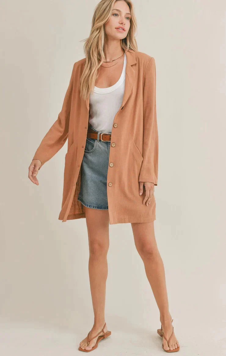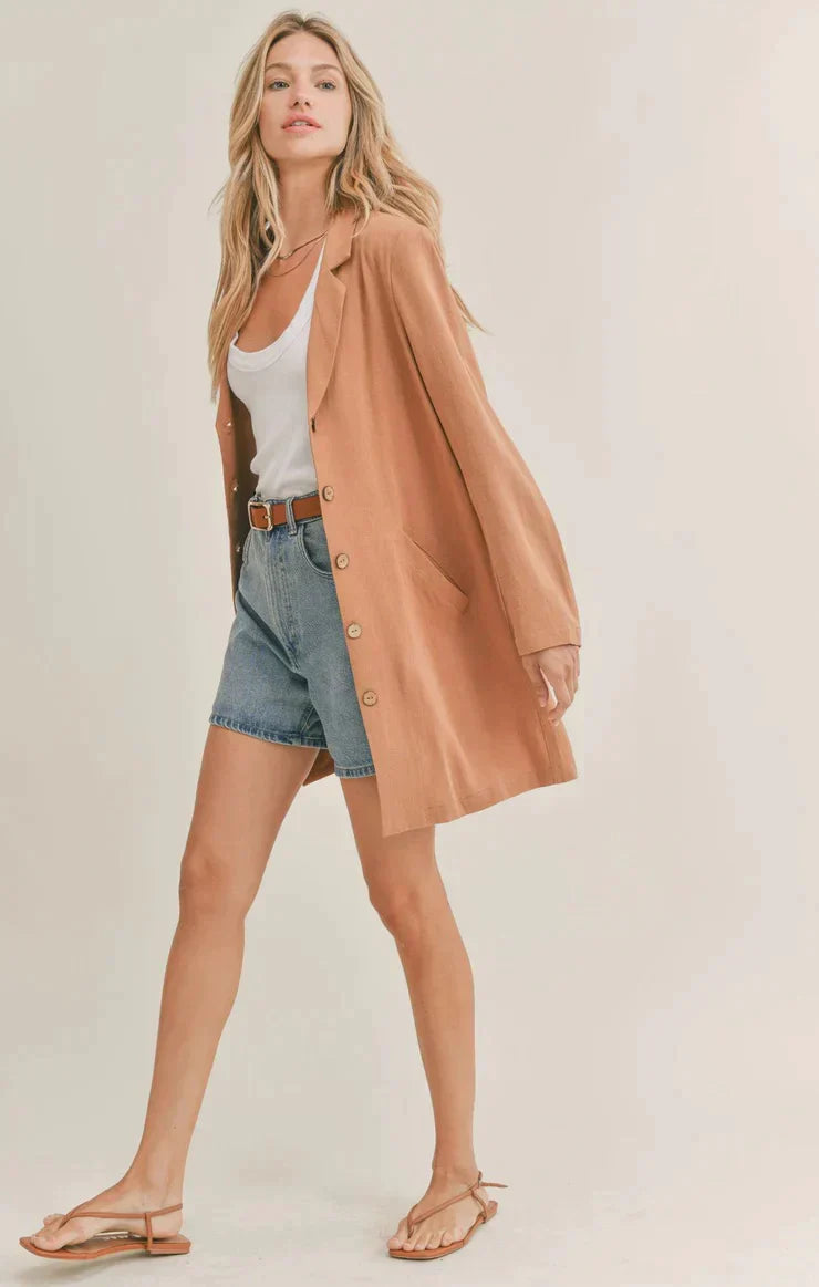 We're always looking for great layering pieces and this long blazer by Sadie and Sage is all the things! It's the perfect transitional piece that pairs so well with your fave denim (jeans or shorts!).