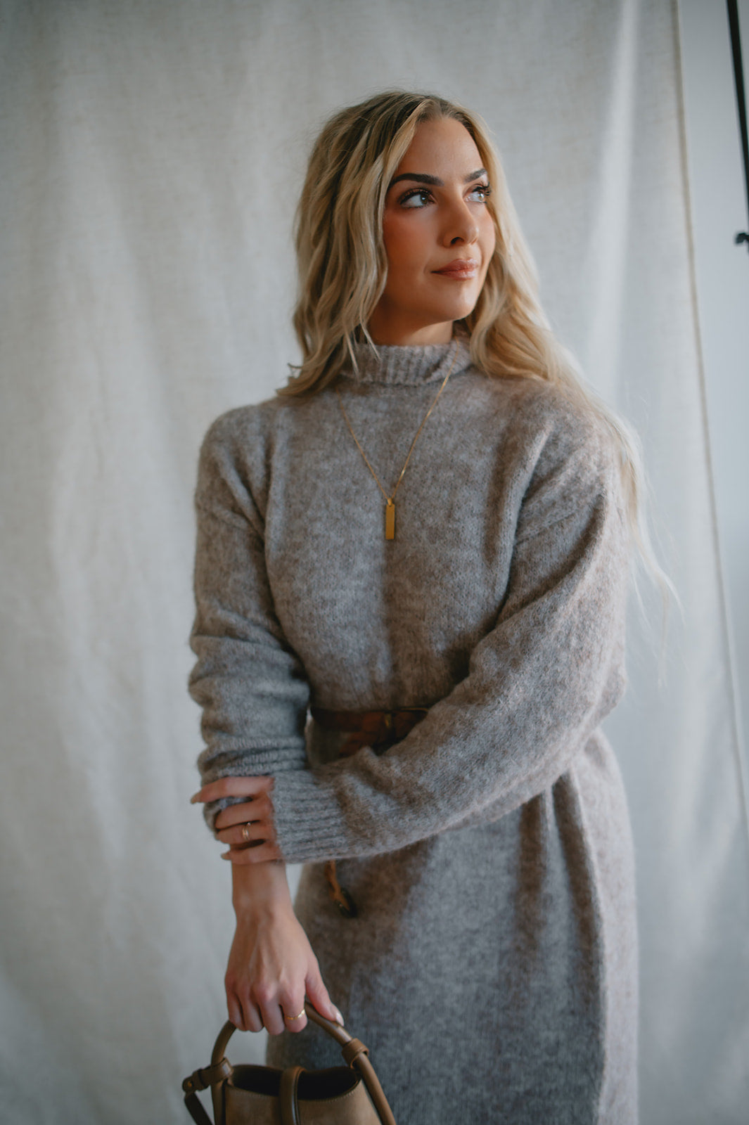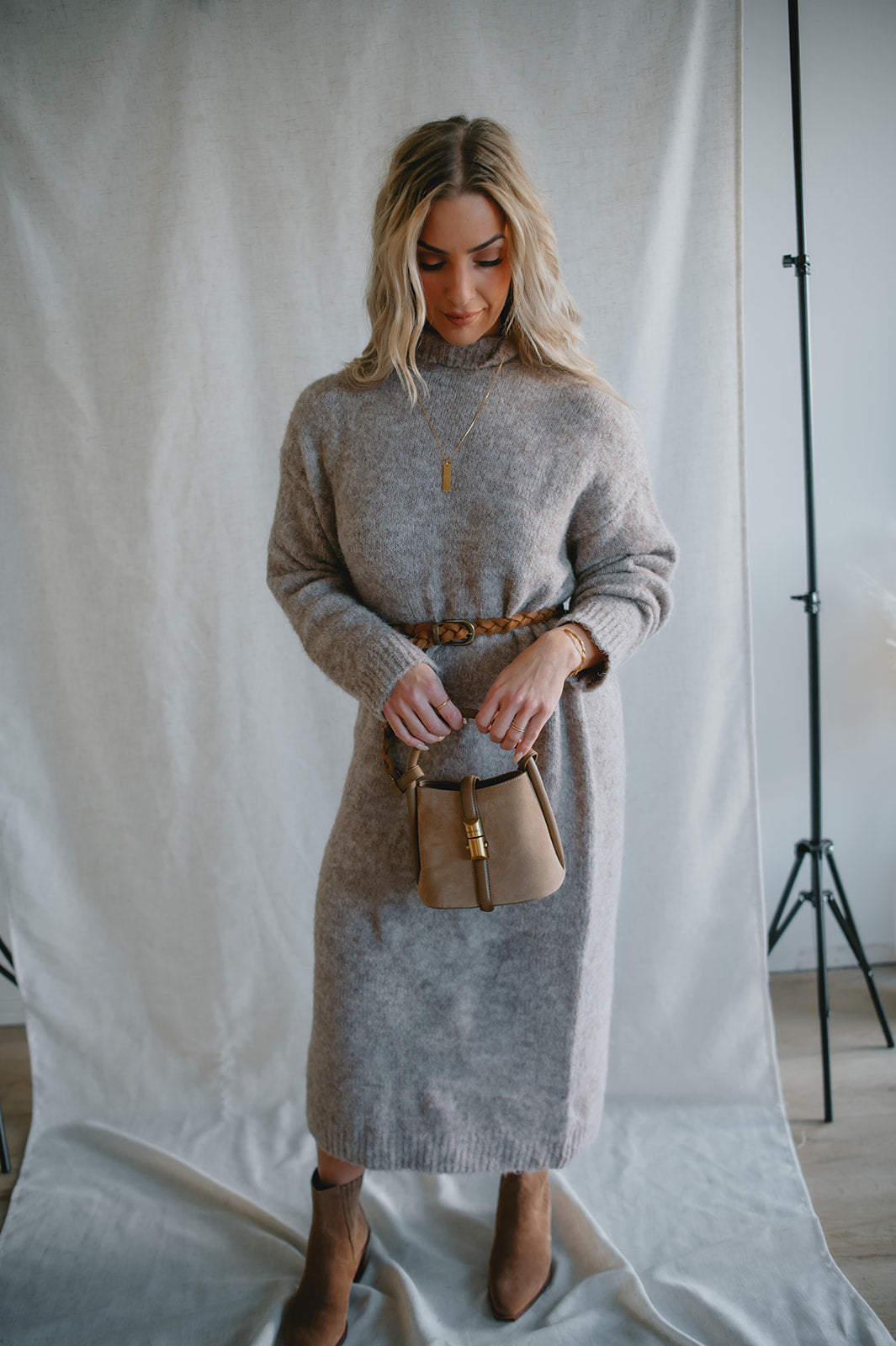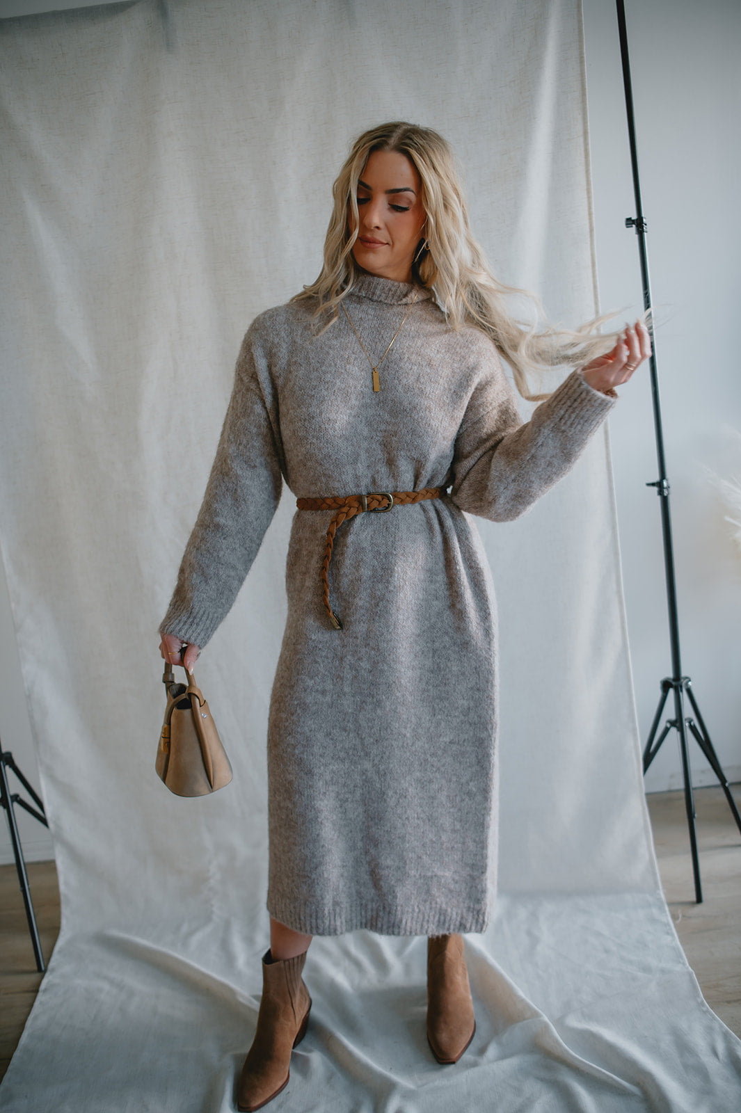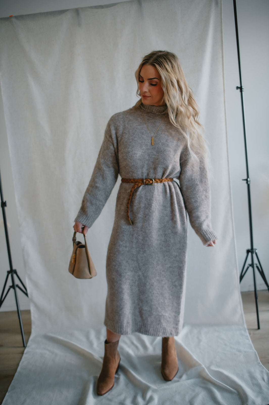 The Oversized Fuzzy Jumper Midi Dress - Oatmeal