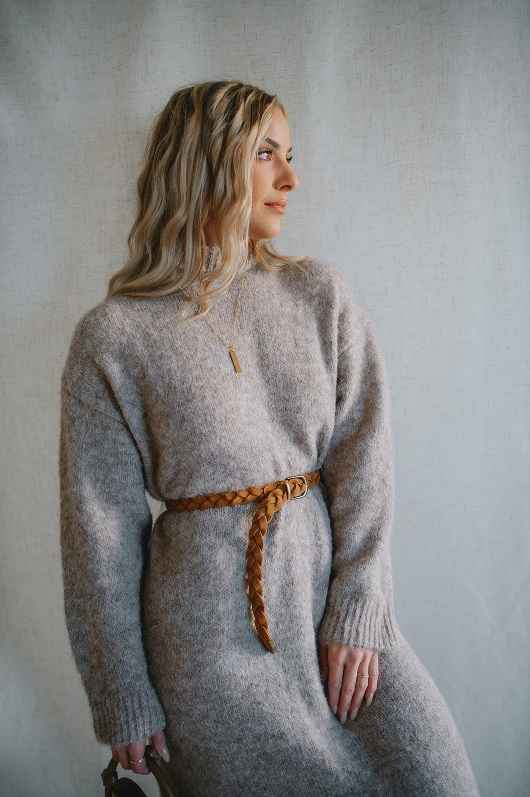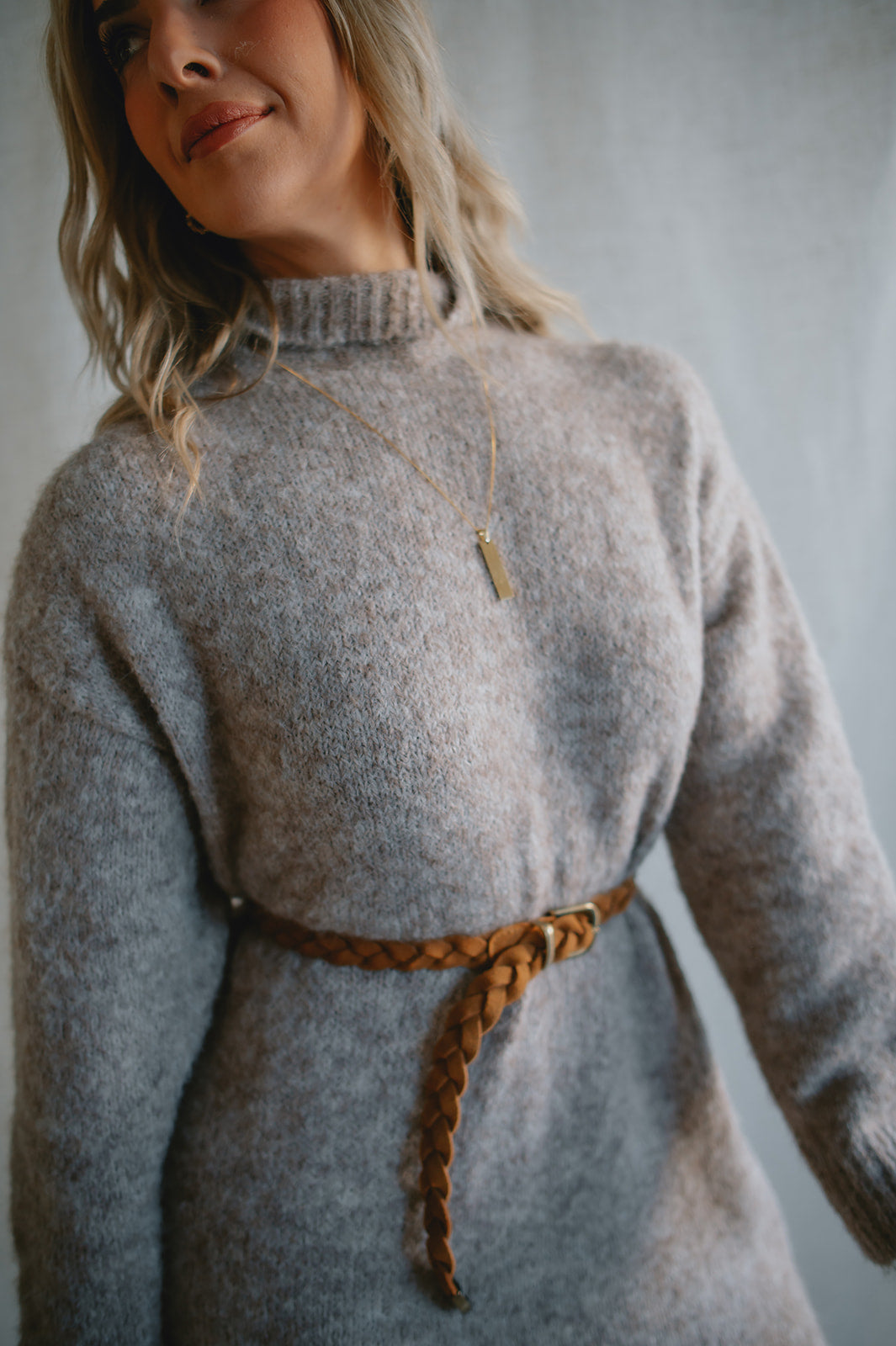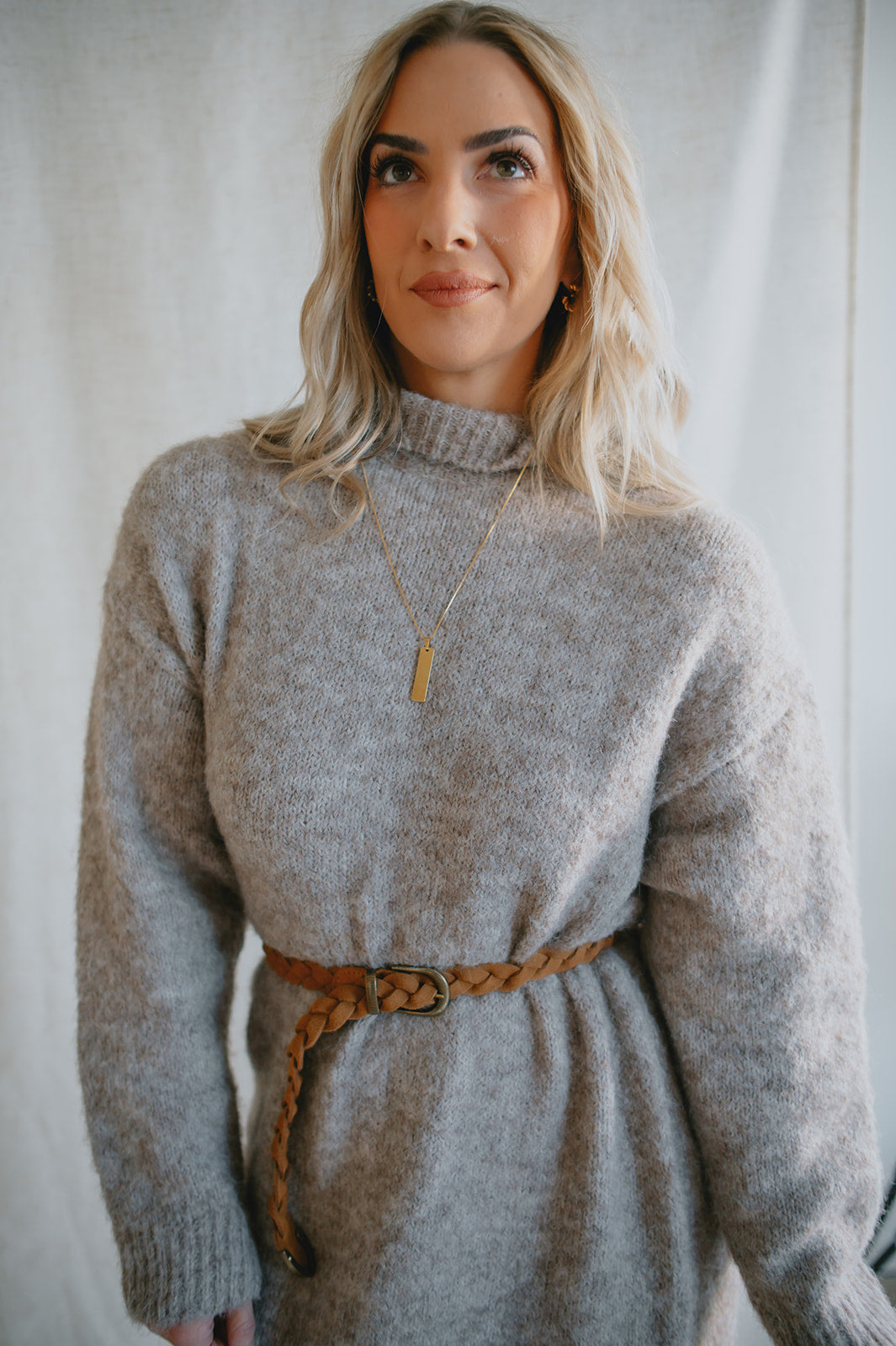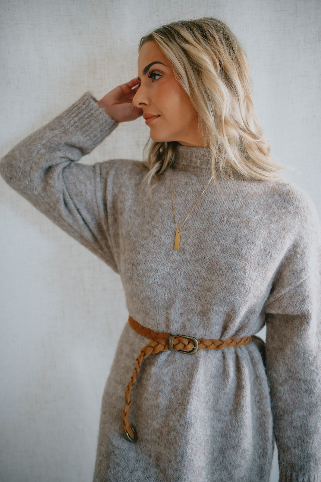 The Oversized Fuzzy Jumper Midi Dress - Oatmeal