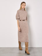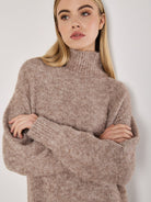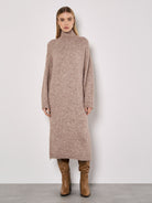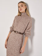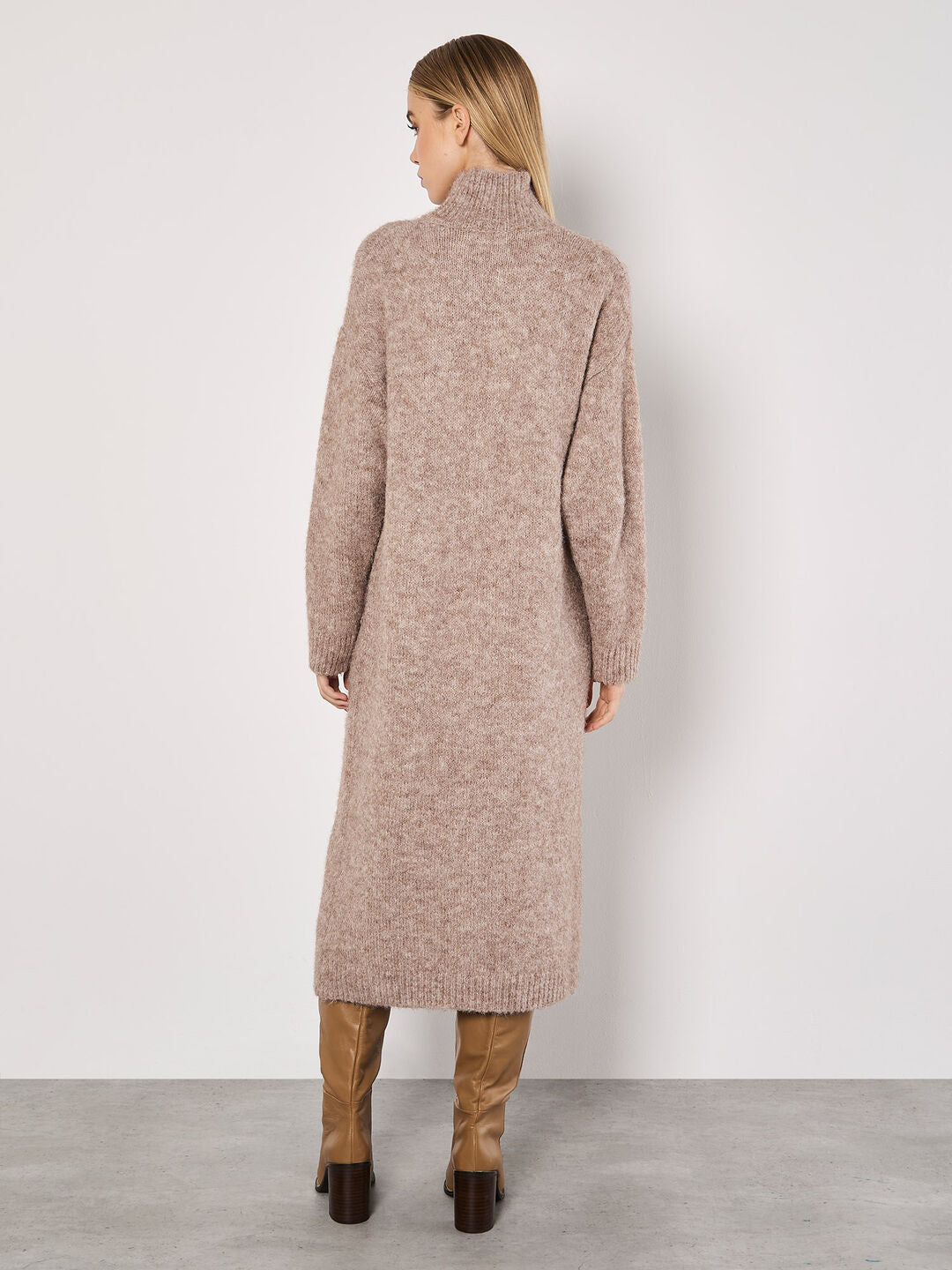 Designed for cold-weather dressing, this midi pairs a soft, mid-weight knit with a fluffy finish. It boasts a cozy roll neck, ribbed trims and an oversized fit that combines comfort and style. Team it with leather boots for effortless off-duty days.