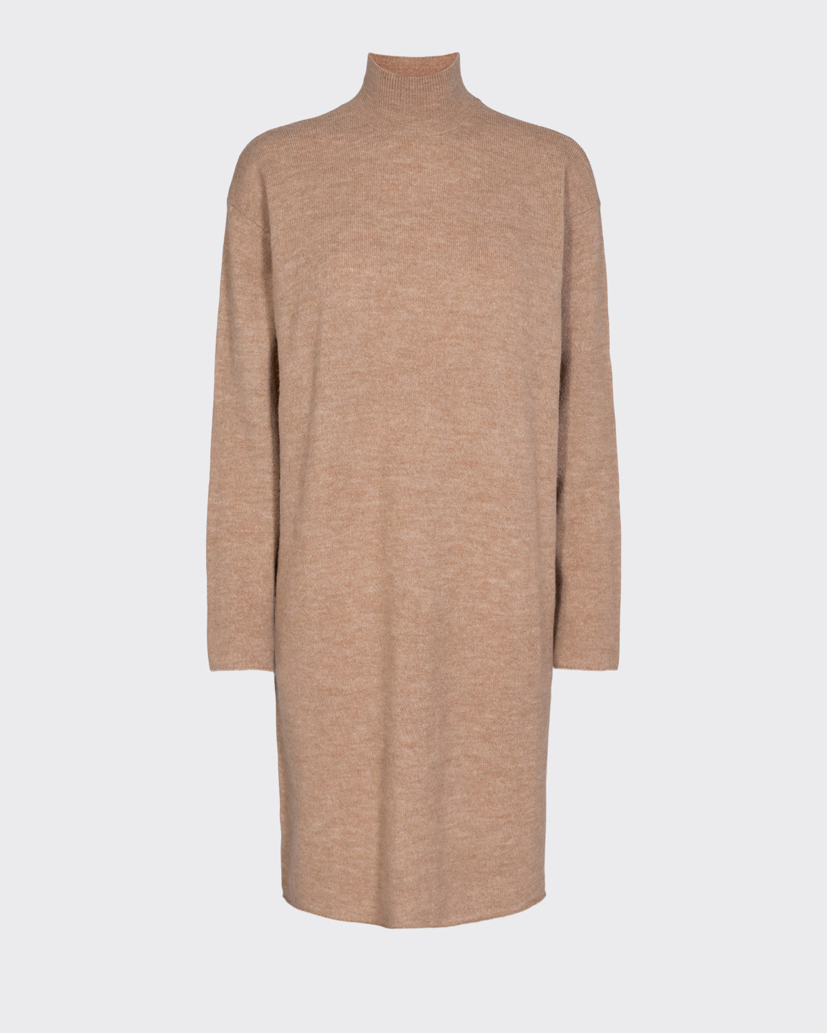 The Patriona Sweater Dress is a long knit with a melange look. It is crafted from a lightweight but warm quality with alpaca wool. The jumper has a regular, straight fit and features a high collar.