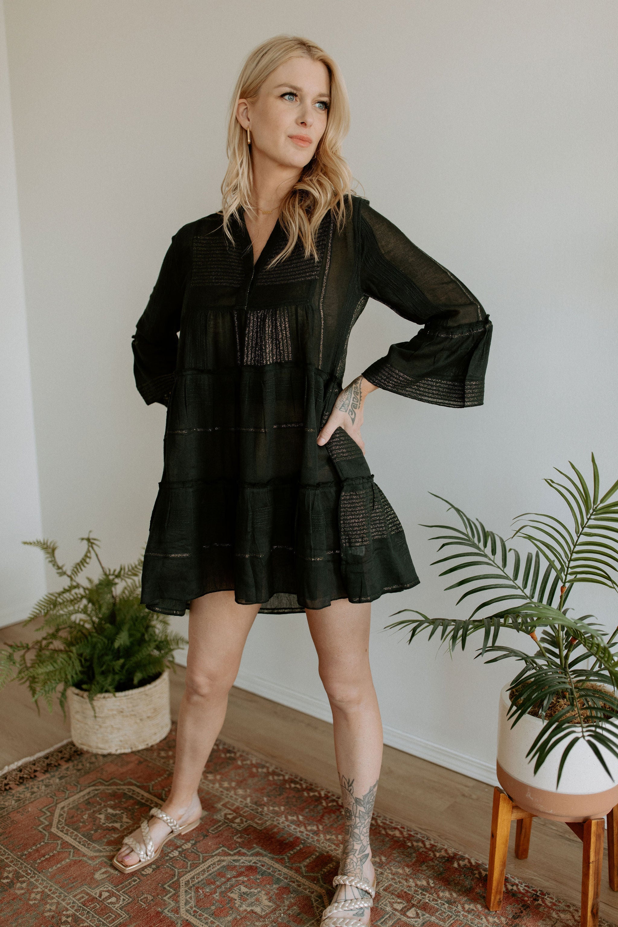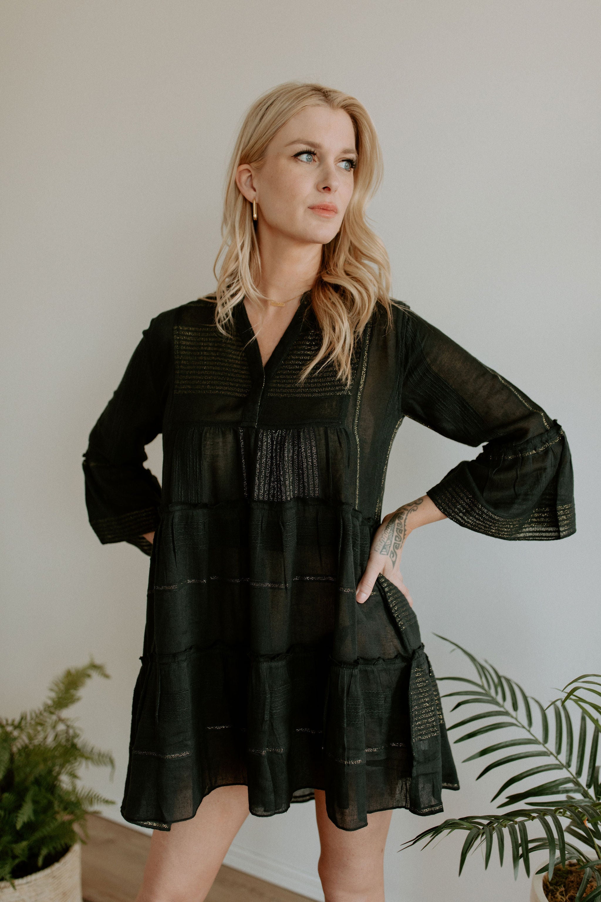 The Sauvie Dress by Elan - Black + Gold