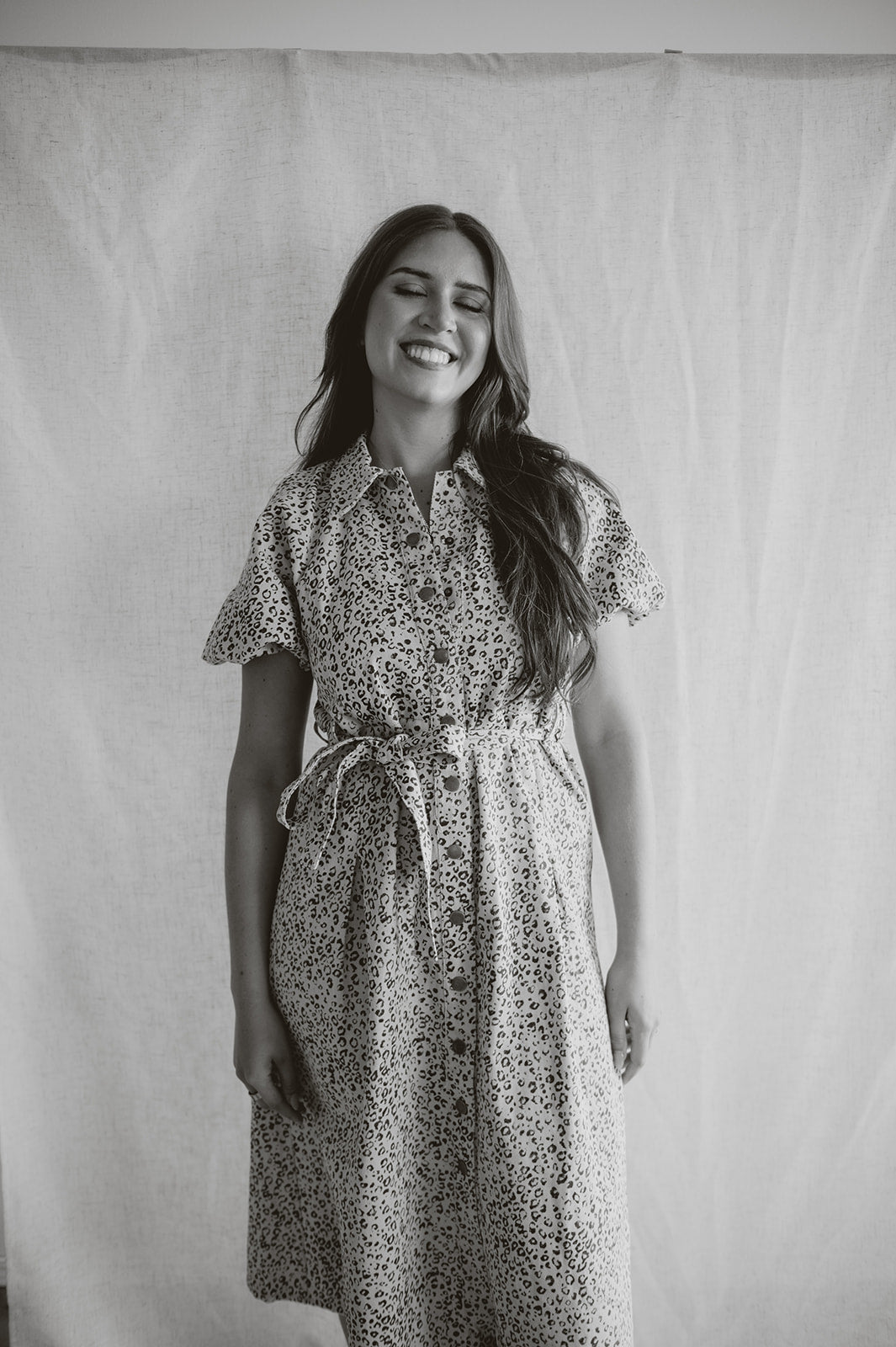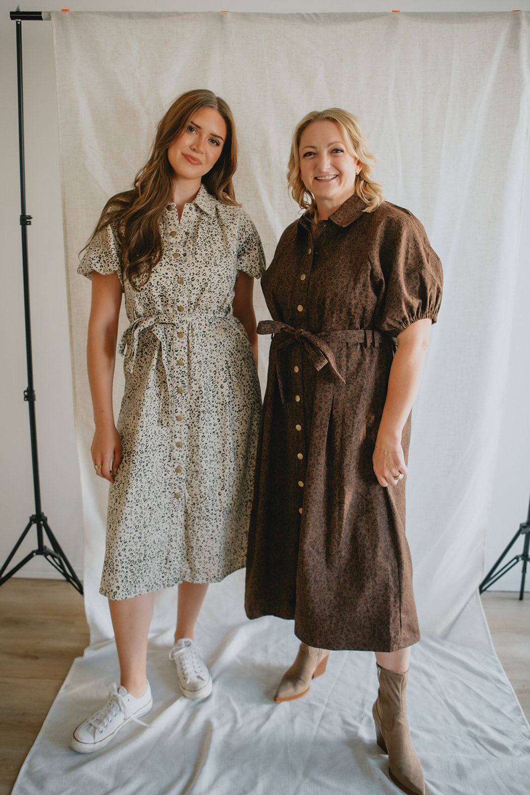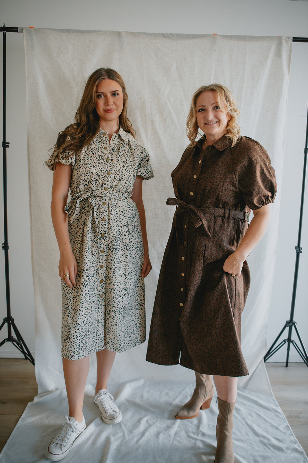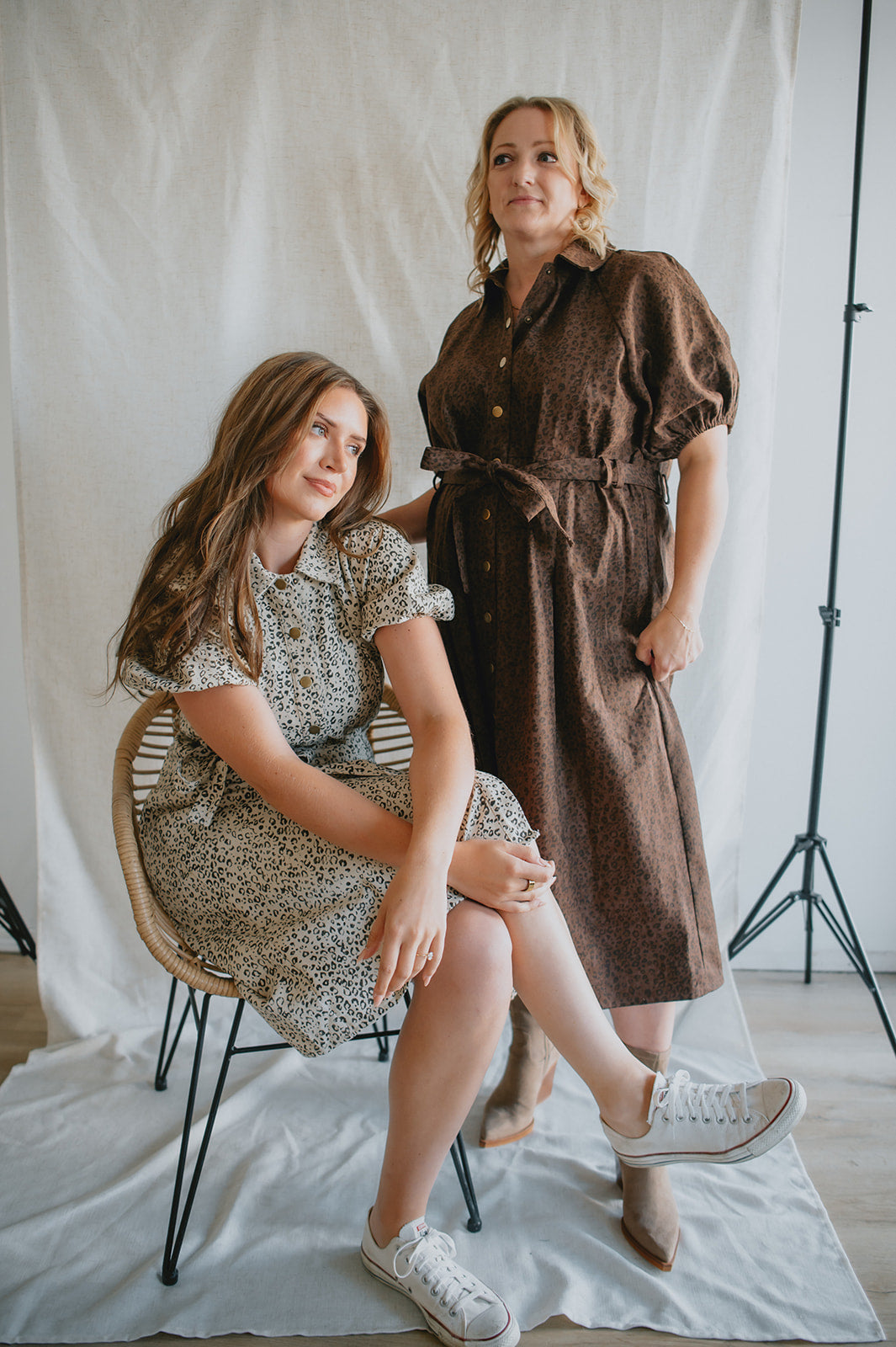 Make a bold statement with this effortlessly chic leopard print midi dress. Designed with a structured collared neckline and a full button-down front, it blends classic shirting details with standout style. A self-tie waist cinches the silhouette for a flattering, customizable fit, while elasticated sleeve cuffs add soft volume and comfort.