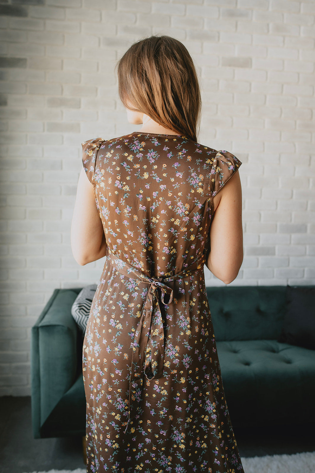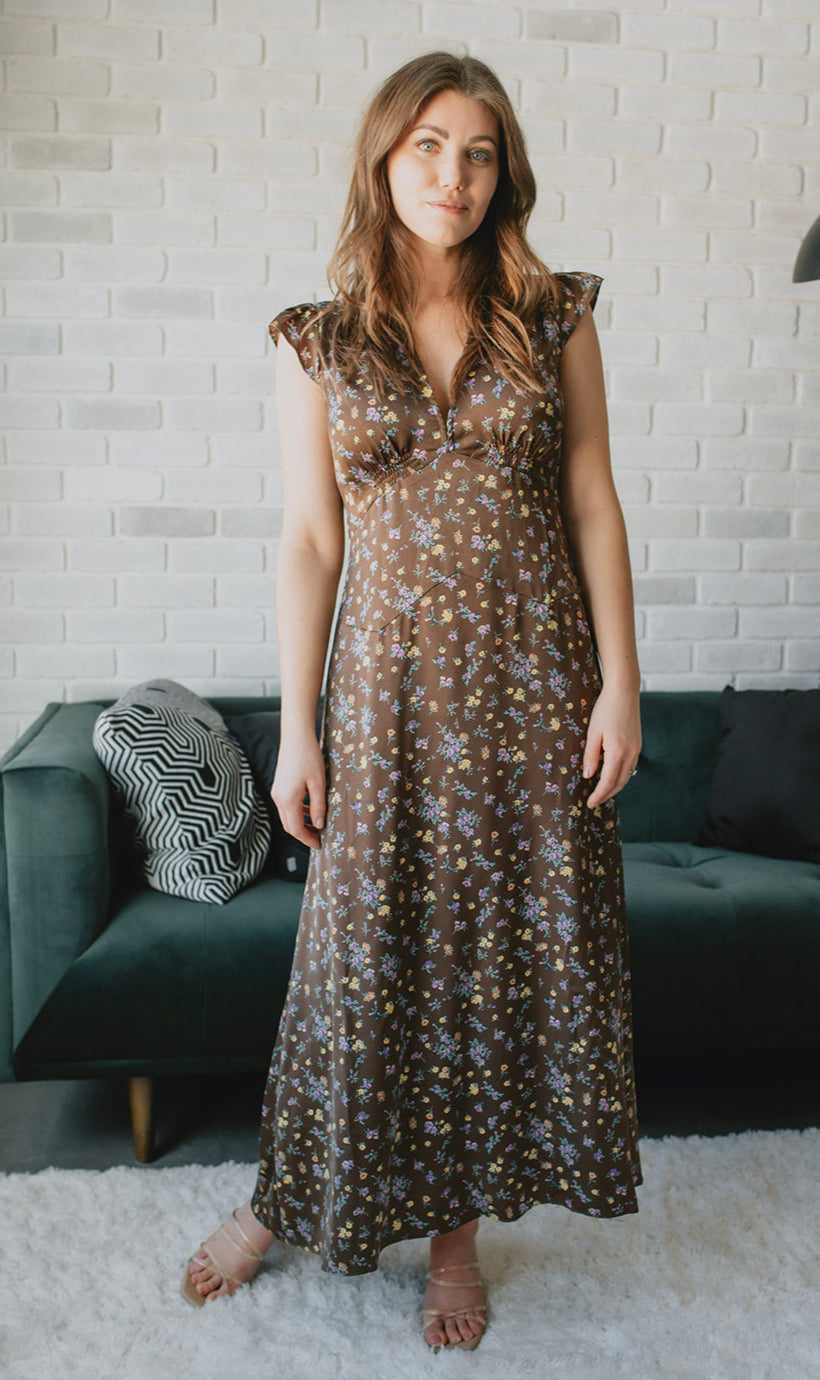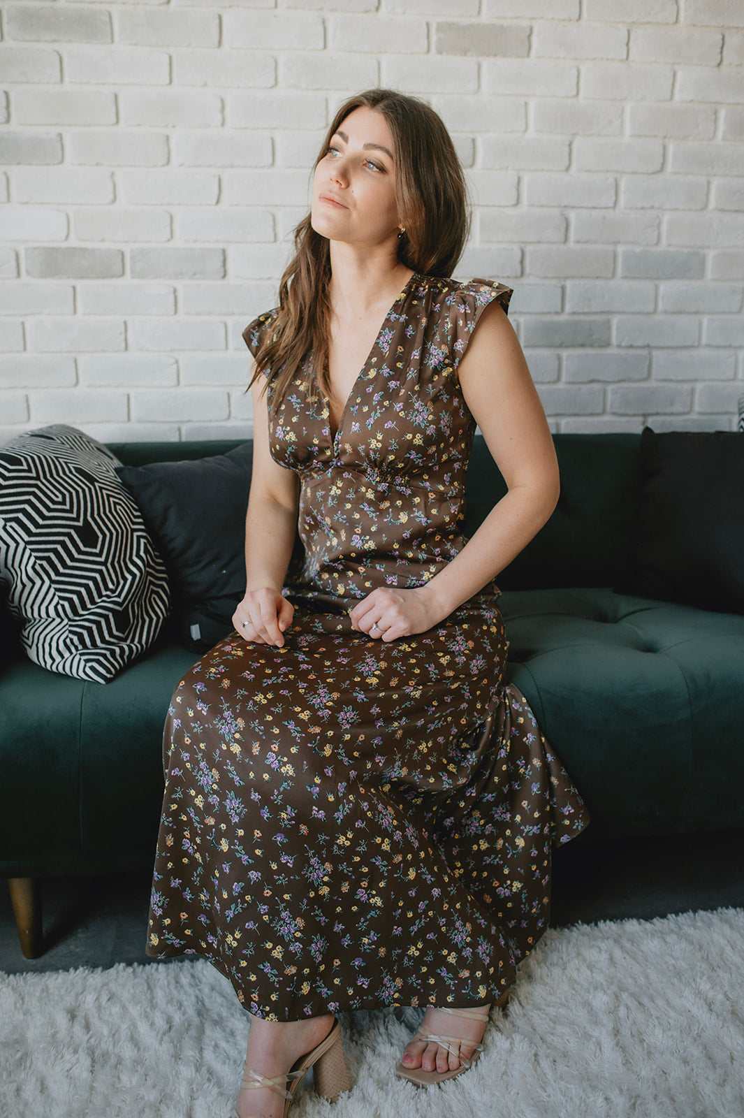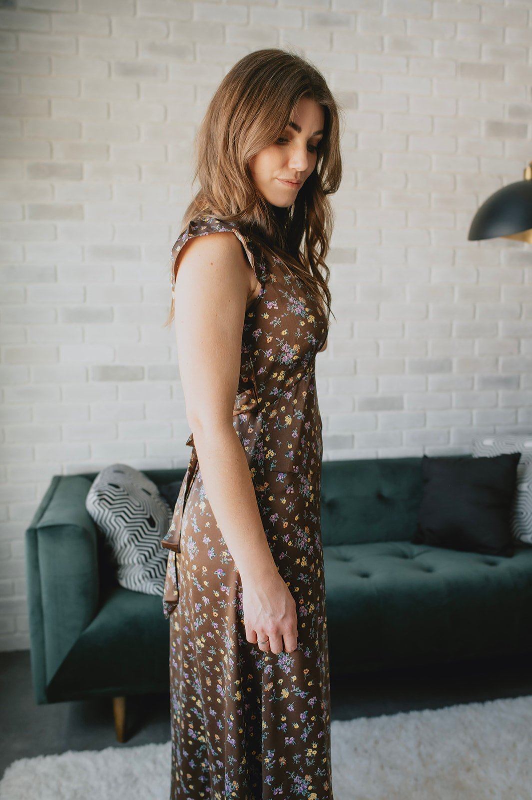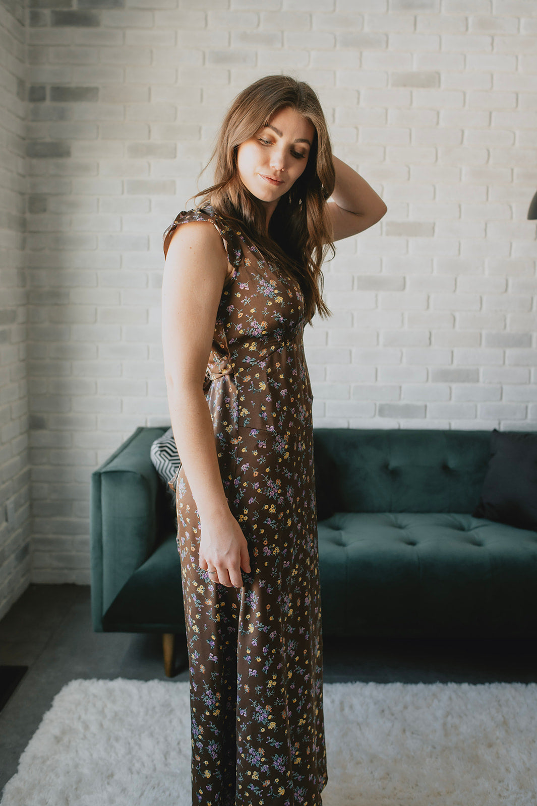 The Zanzibar Dress is cut from our flowery print satin and is subtly sexy. Perfect for any spring wedding or special occasion, pair it with sandals for casual affairs or heels to dress it up.