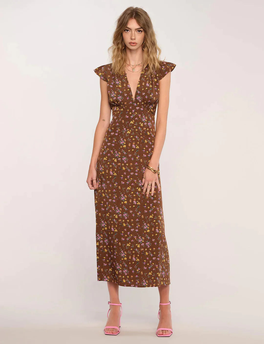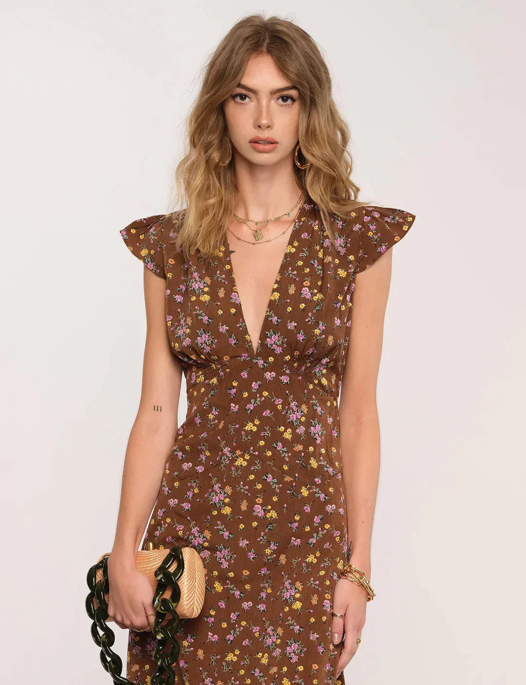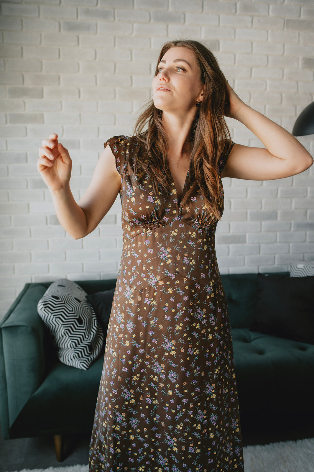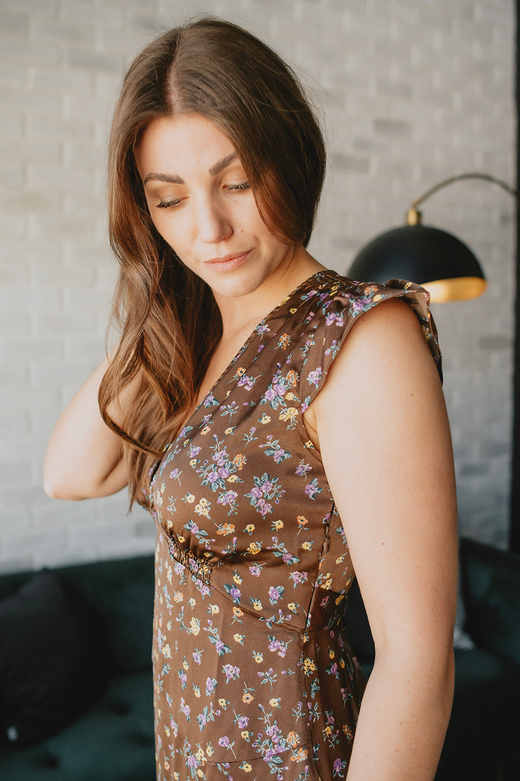 The Zanzibar Dress is cut from our flowery print satin and is subtly sexy. Perfect for any spring wedding or special occasion, pair it with sandals for casual affairs or heels to dress it up.