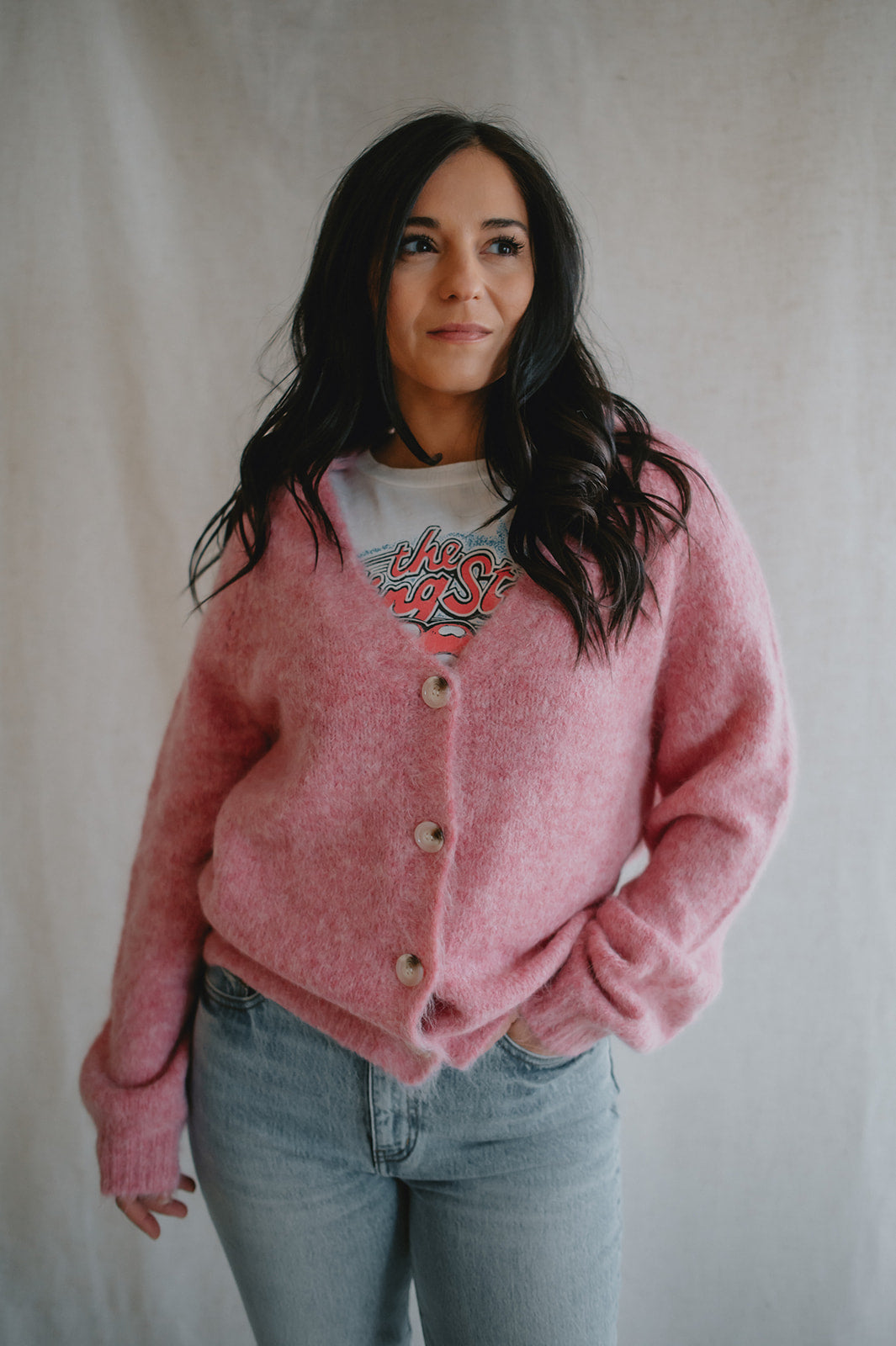 Whether worn buttoned up with a skirt or layered over a tee and jeans, it adds a hint of warmth and a lot of charm to any outfit. Think coffee dates, study sessions, and all things soft.