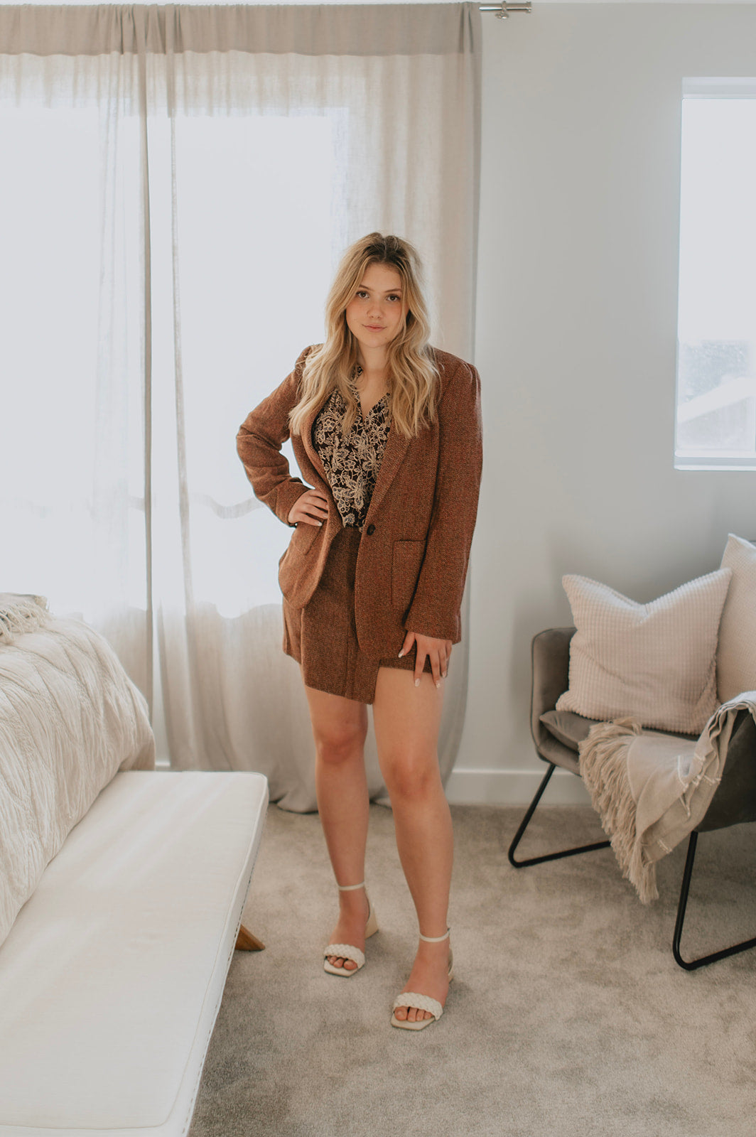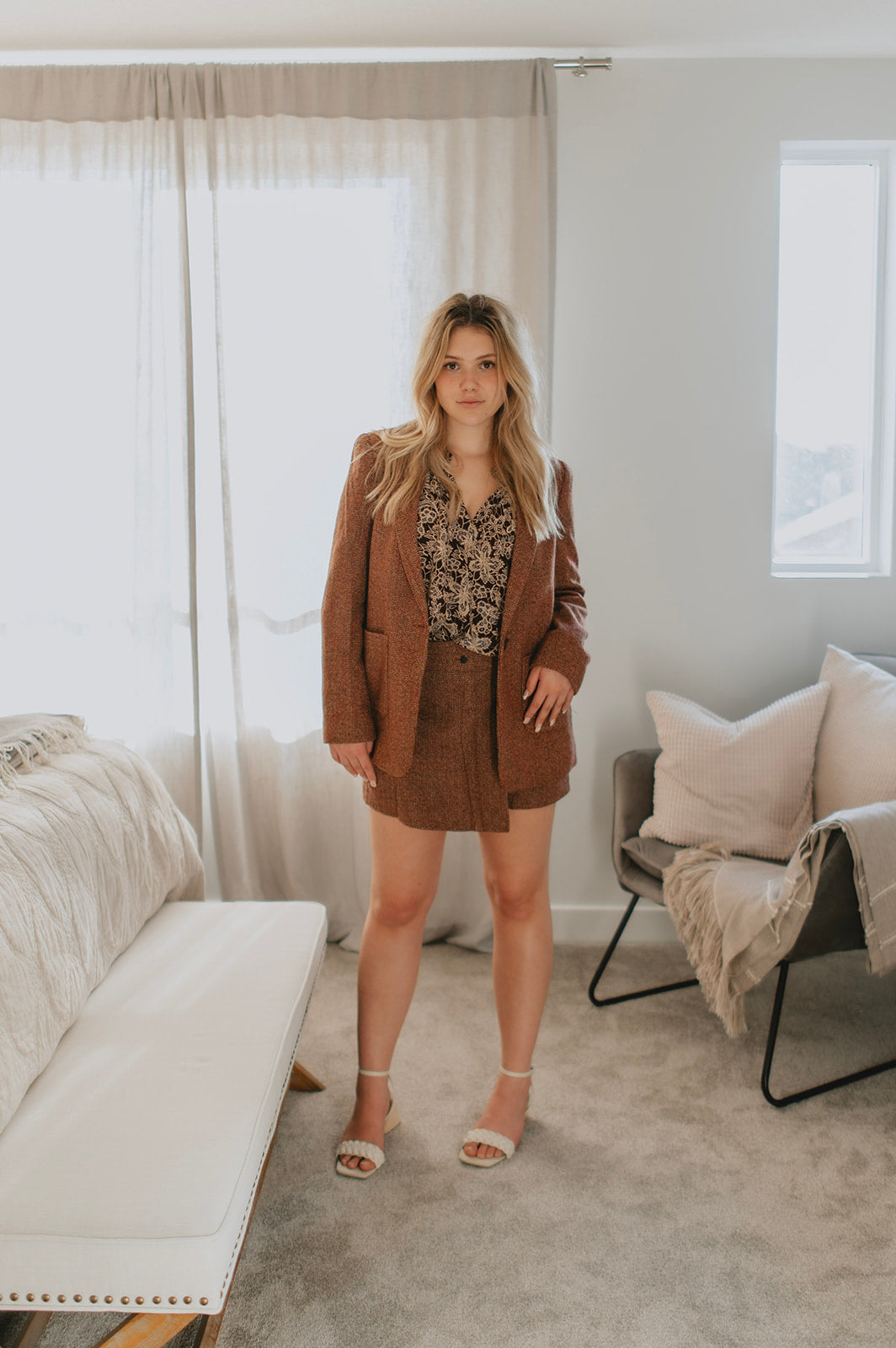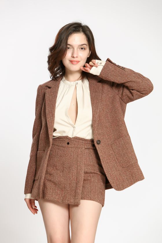 This woven wool jacket is fully lined and makes a statement. Pair it with some denim, or trousers, OR pair it with our matching Ava Tweed Shorts!
