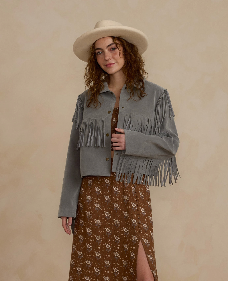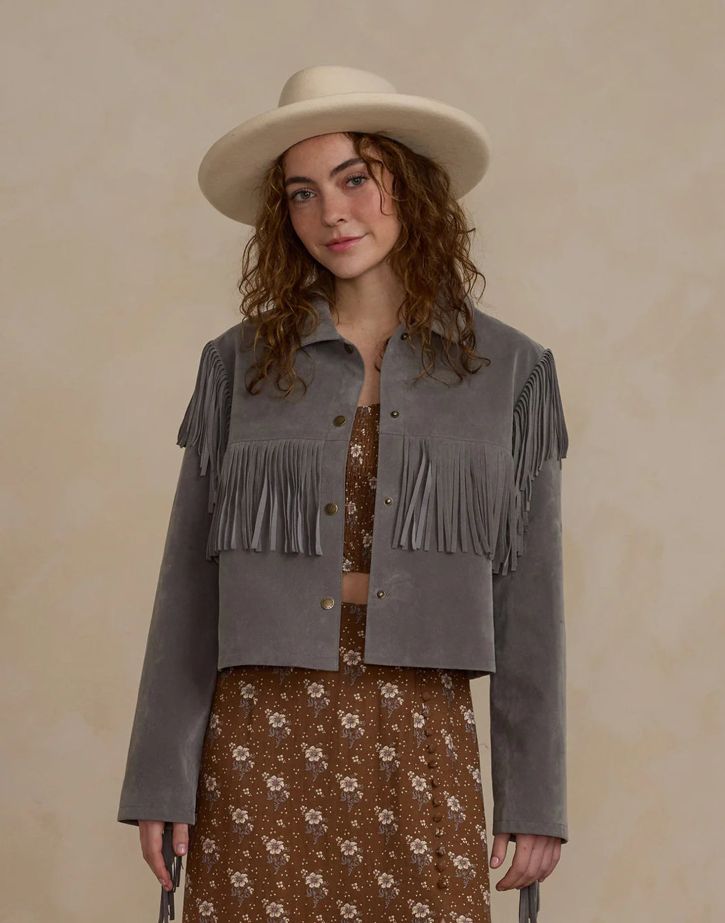 The Fringe Jacket by Rylee + Cru - Dusty Blue