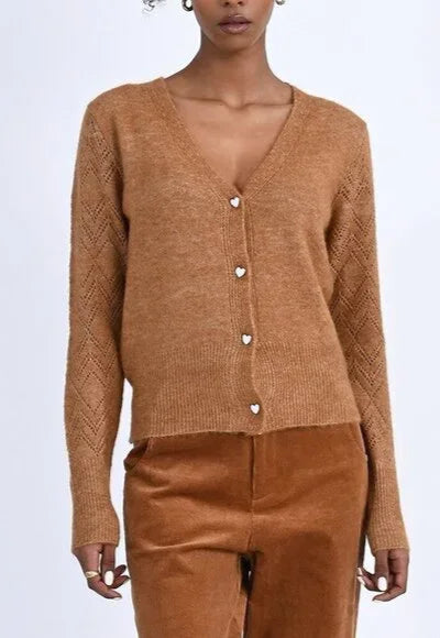 The Juliet Heart Button Cardigan - Camel