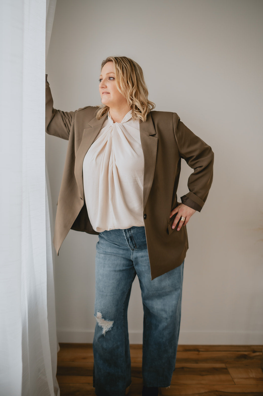The perfect boxy fit blazer. Wear it casual with a t shirt and denim, or dress it up for work with a blouse or the matching Kamma Trousers!